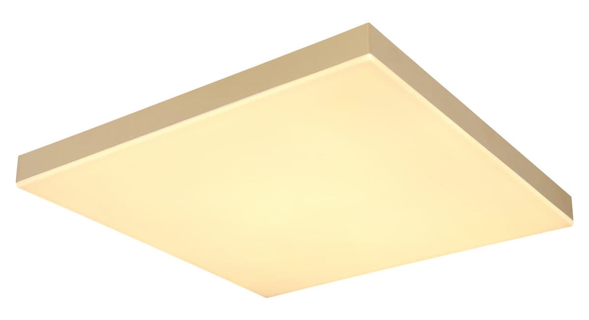 Ova plafonska lampa iz Doro serije je prekrasan dodatak vašem enterijeru. Sastoji se od kvadratnog metalnog okvira od mesinga (45 x 45 cm). Plafonska lampa ima LED sijalice koje su prekrivene opal akrilom. Oni pružaju 1600 lumena svjetlosti sa svjetlosnom bojom od 3000 Kelvina (toplo bijelo) do 6500 Kelvina (hladno bijelo). Pomoću priloženog daljinskog upravljača možete fiksirati svjetiljku u željenom rasponu boja i zatamniti je. Osim toga, ima noćno svjetlo i memorijsku funkciju. Uz druge modele iste serije, možete postaviti stilske akcente na svoja četiri zida i upotpuniti cjelokupnu sliku.