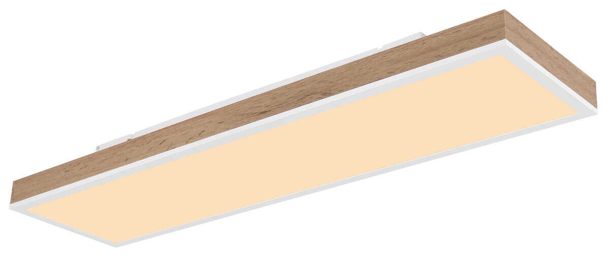 Plafonska lampa serije ROSI (80 x 20 cm) od mat belog lakiranog aluminijuma i MDF drveta sa efektom tamne boje sa opal plastikom je svestran i moderan izvor svetlosti za svaku prostoriju. Sa snažnim LED izvorom svjetlosti od 24W i podešavanjem zatamnjivanja preko zidnog prekidača, intenzitet svjetla se može podesiti između 100-2500 lumena i temperatura boje između 2700-6500K. Lampa ima brojne funkcije kao što su fiksiranje boja, memorijska funkcija, noćno svjetlo, tajmer i daljinski upravljač uključujući baterije. Elegantan dizajn i rasvjetna tijela koja se lako postavljaju čine ga savršenim izborom za moderan i elegantan dom.