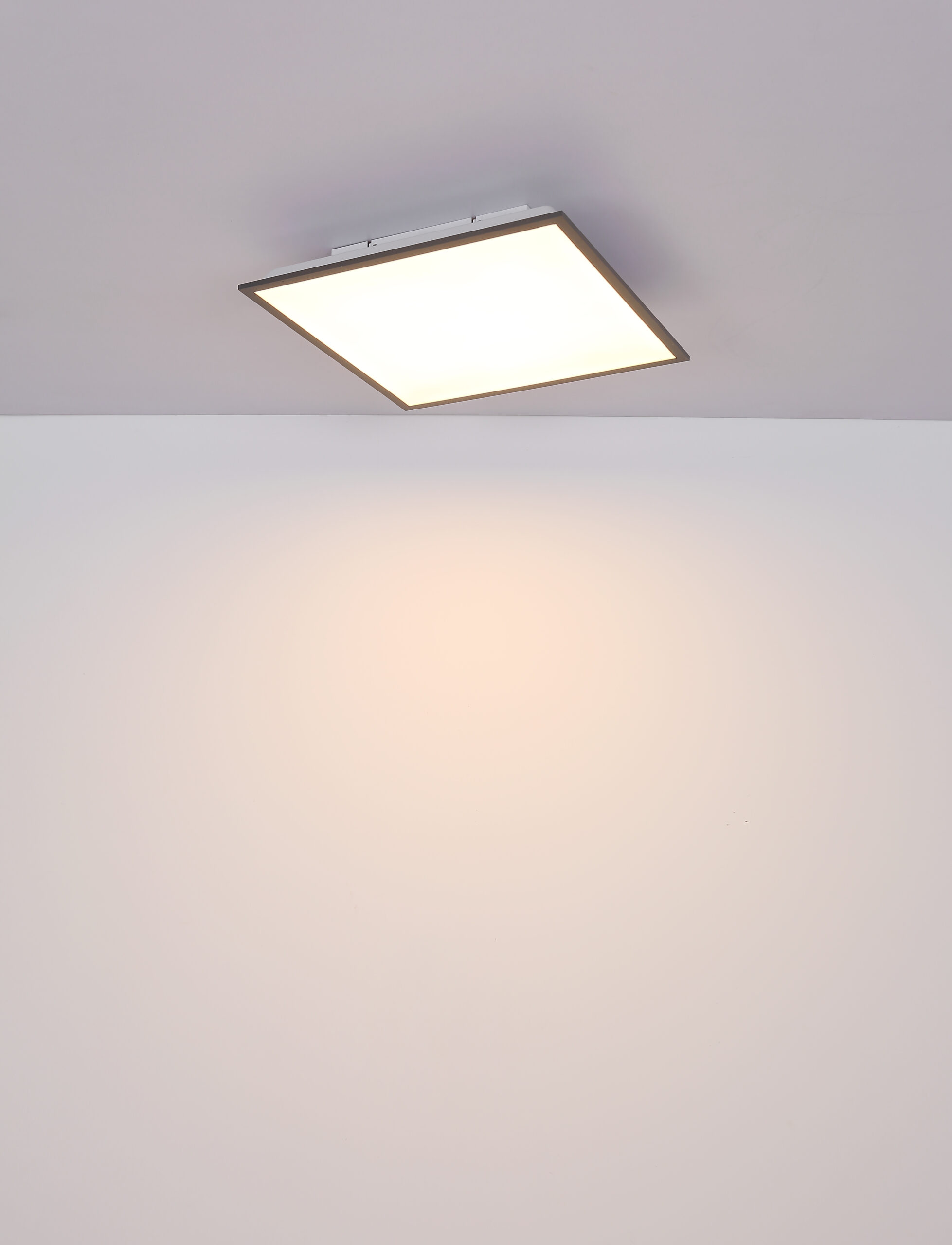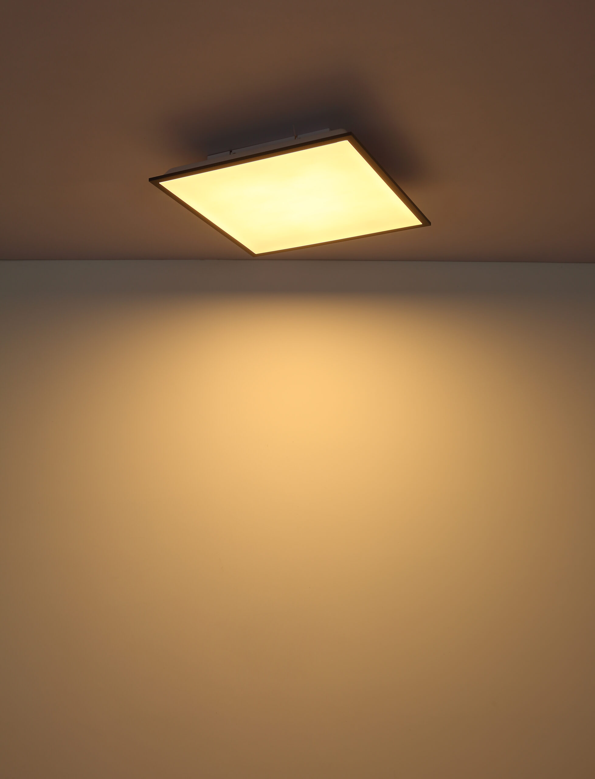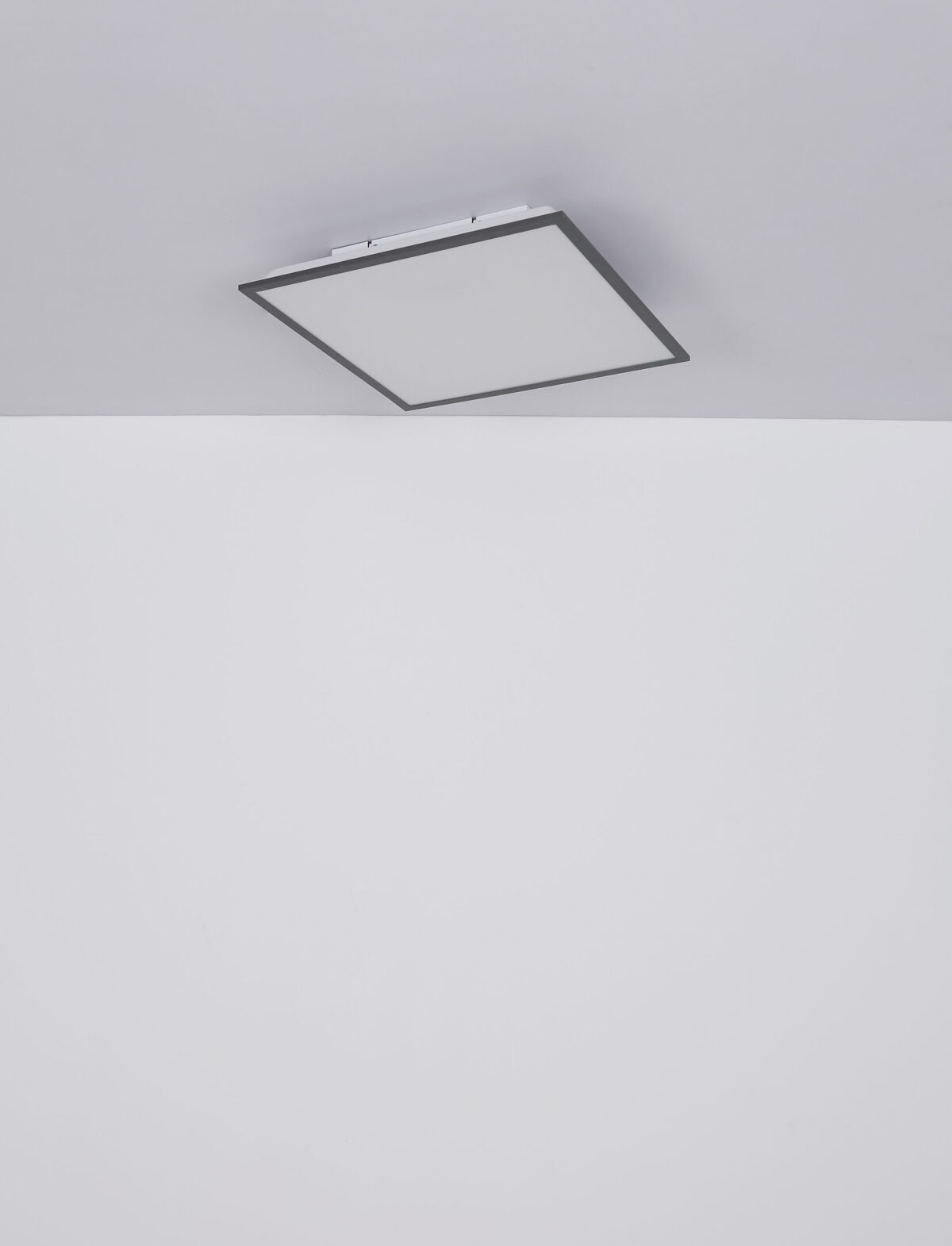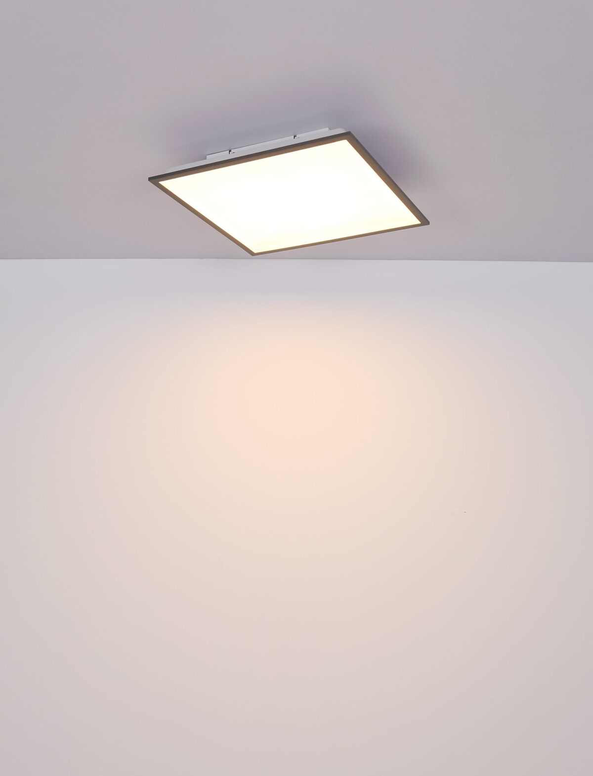 Ova kvadratna ultra ravna LED plafonska lampa Doro (450x450x75mm) savršeno se uklapa u svaku prostoriju sa visokim zahtevima za osvetljenjem. Svjetlo je raspoređeno vrlo ravnomjerno i sija toplo bijelom bojom. Dizajn je elegantan i neutralan. Zbog upotrebe laganih materijala kao što su plastika i aluminij, također je vrlo lagan uprkos svojoj veličini.