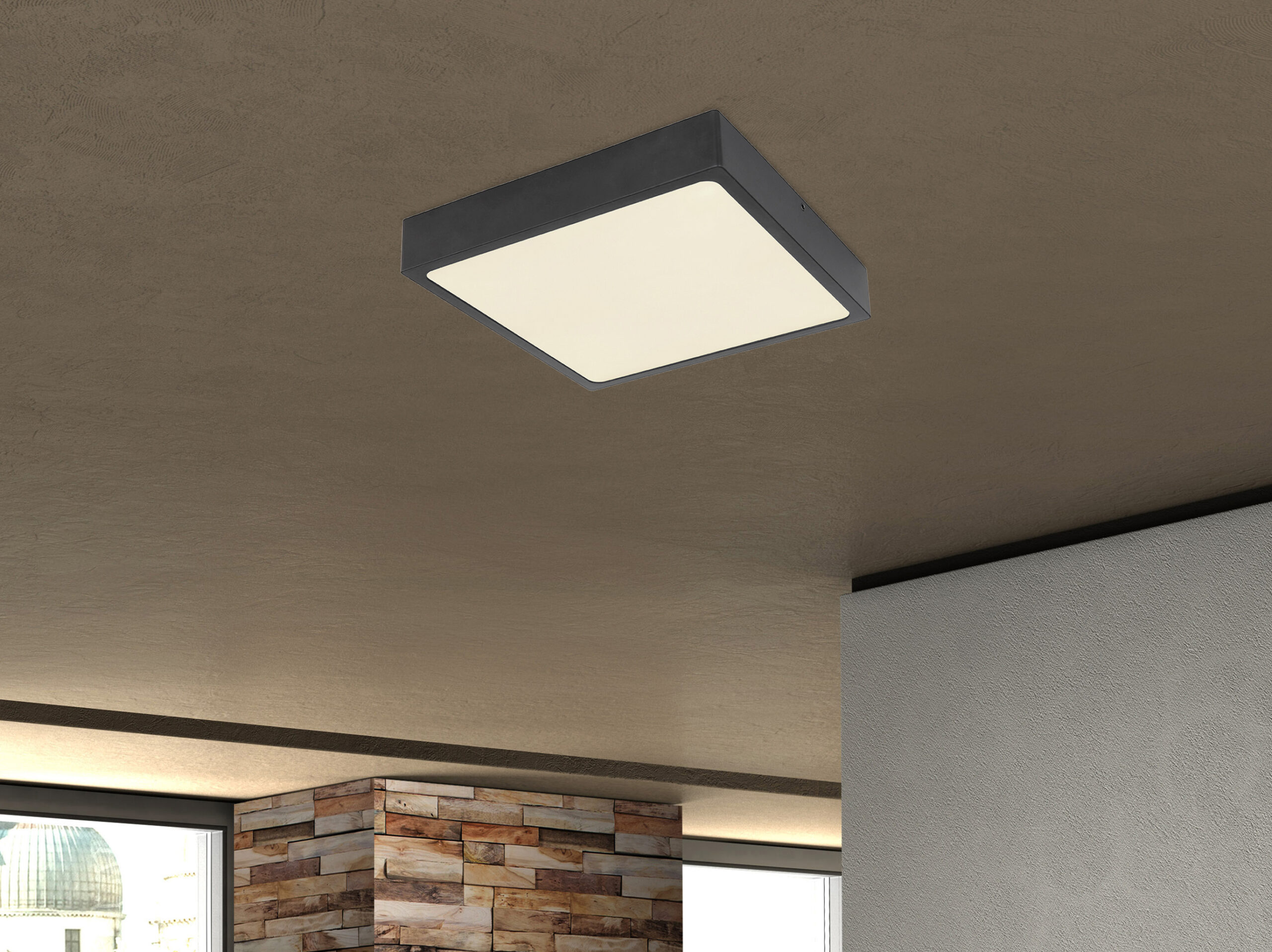 Echo je kvadratna (220x220mm) plafonska lampa u mat crnoj boji izrađena od satenskog akrila. Lucena se može prigušiti i pruža meko toplo bijelo svjetlo. Jednostavan, ali elegantan dizajn savršeno se prilagođava vašem stanu.