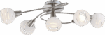Ova prekrasna lampa impresionira diskretnim, elegantnim dizajnom. Staklo je satensko i isprepleteno linijama prozirnog stakla. Toplo bijelo svjetlo osigurava ugodnu atmosferu u sobi. 5 LED sijalica, koje ćete naravno dobiti u kompletu, takođe štede energiju. Vratite dašak svježeg zraka u svoj dom pomoću ove svjetiljke.