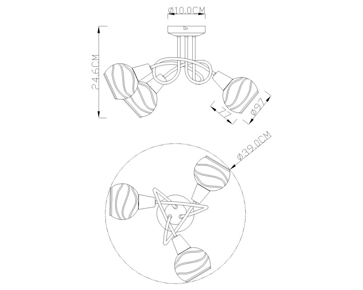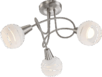Lampa na poklopcu (Ø39cm) ove serije modela ističe se svojim neutralnim i bezvremenskim dizajnom. Tri isprepletena kraka završavaju se na tri sferične satenske čaše sa suptilnim jasnim uzorkom. Dostupne E14 utičnice vam omogućavaju da sami odredite izvor svjetlosti, a time i intenzitet svjetla i boju svjetla. Zbog uštede energije i dugovečnosti preporučujemo LED lampe.