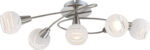Lampa na poklopcu ove serije modela ističe se svojim neutralnim i bezvremenskim dizajnom. Dva lijepo zakrivljena kraka završavaju se na četiri sferične satenske čaše s diskretnim jasnim uzorkom. Peto staklo, koje je trajno postavljeno u sredini, upotpunjuje sliku. Pet dostupnih E14 utičnica vam omogućavaju da sami odredite izvor svjetlosti, a time i intenzitet svjetla i boju svjetla (maks. 40W). Zbog uštede energije i dugovečnosti preporučujemo LED lampe.