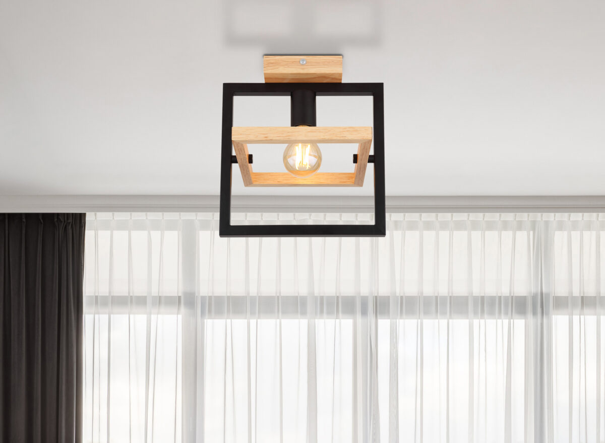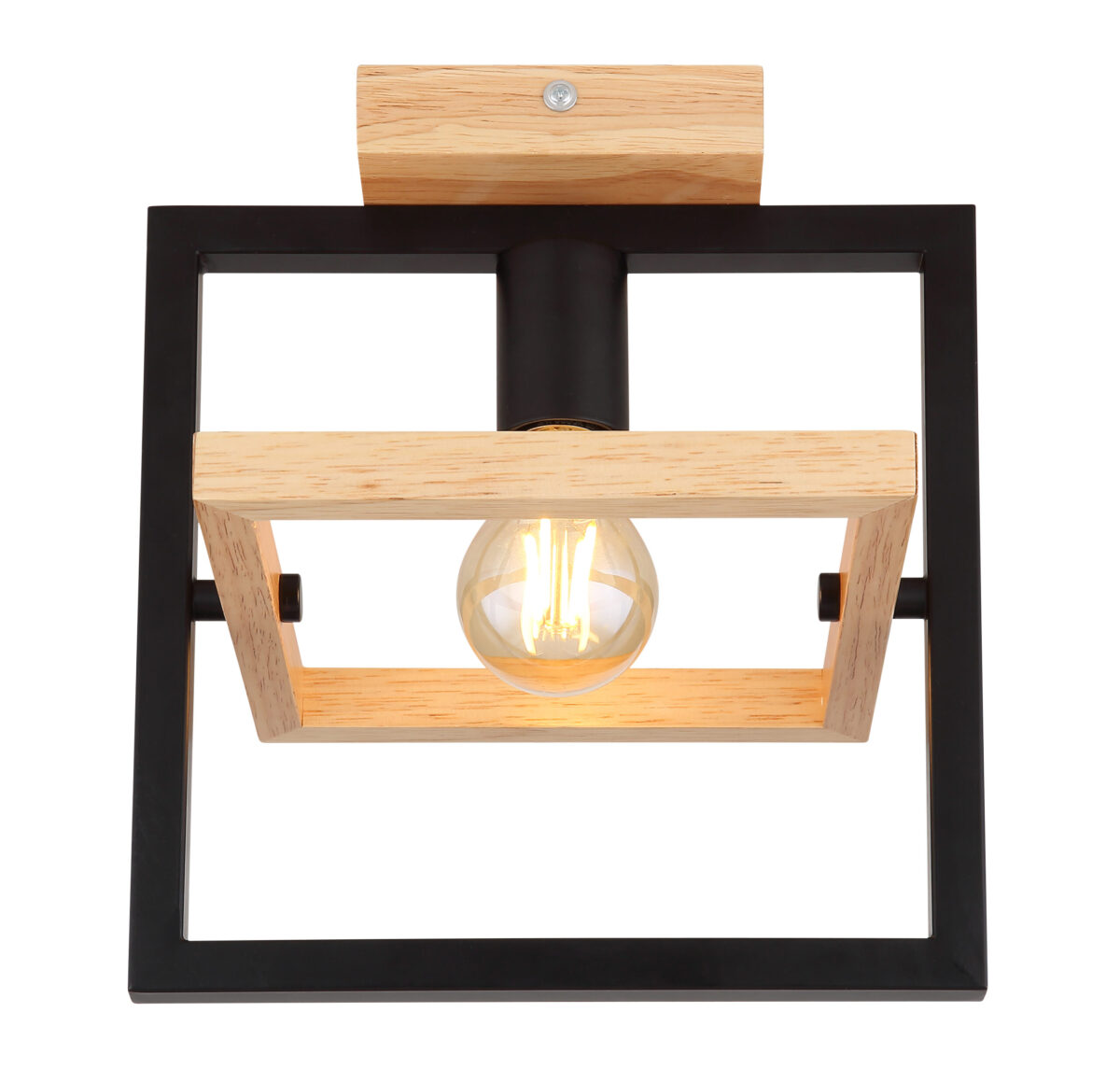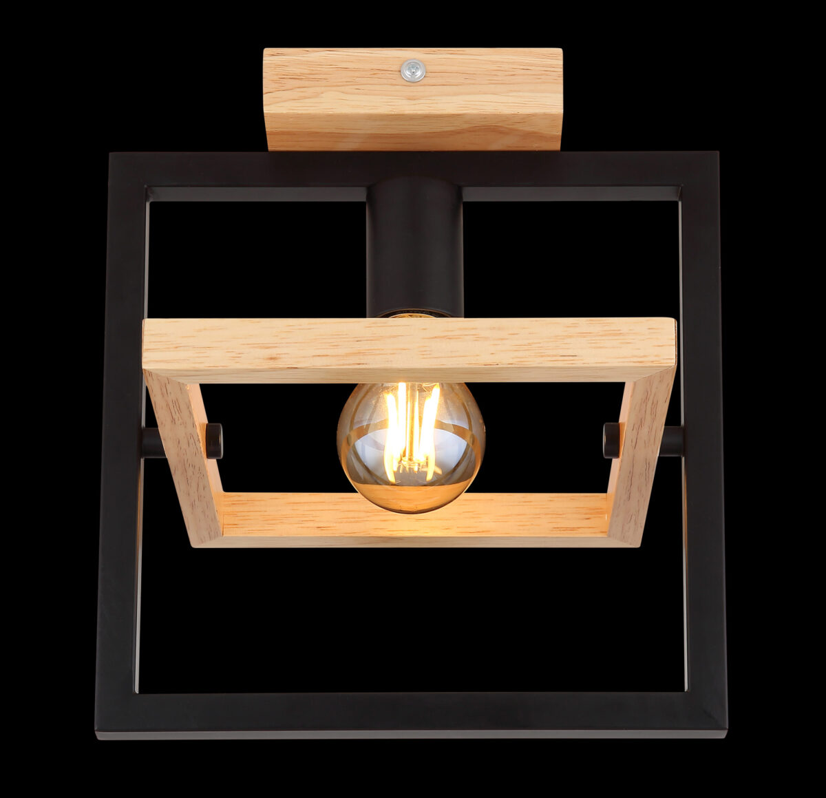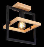 Ova izuzetno moderna plafonska lampa iz serije Erica inspiriše svojim sjajnim dizajnom. Sastoji se od crnog mat pravougaonog metalnog okvira dužine 25cm na kome se nalazi E27 utičnica i zaokružen je drugim pokretnim pravougaonikom od drveta širine 20cm. E27 utičnica vam omogućava da slobodno odaberete do maksimalne snage od 40 vati.