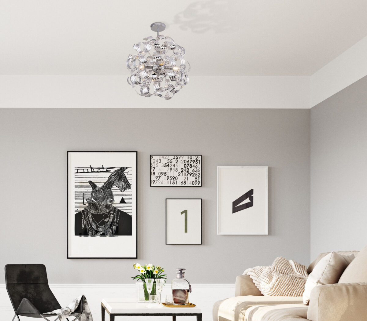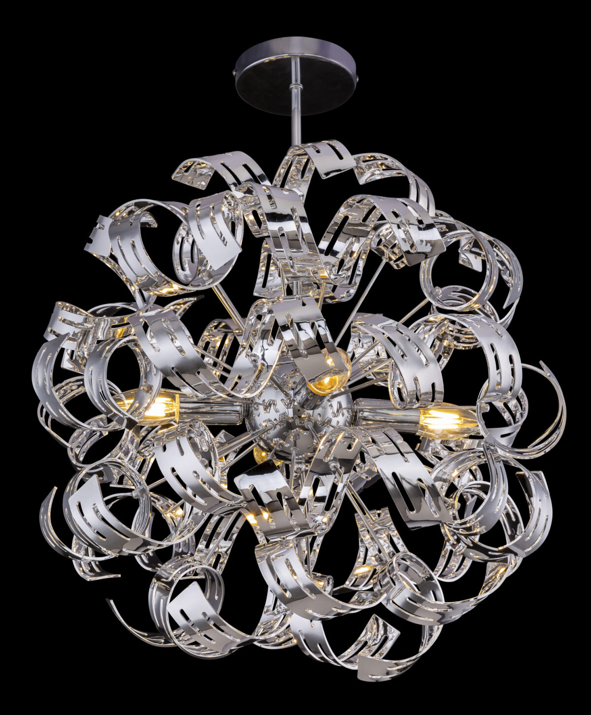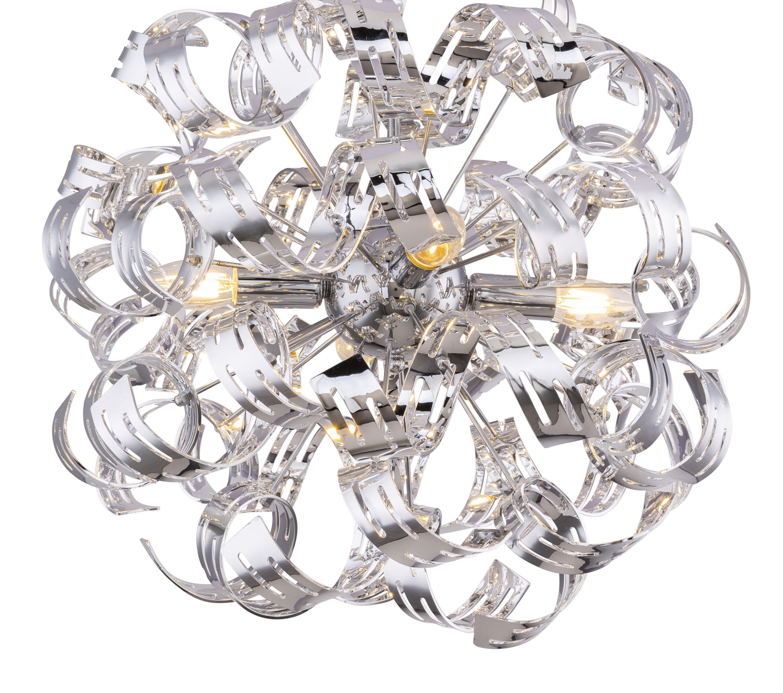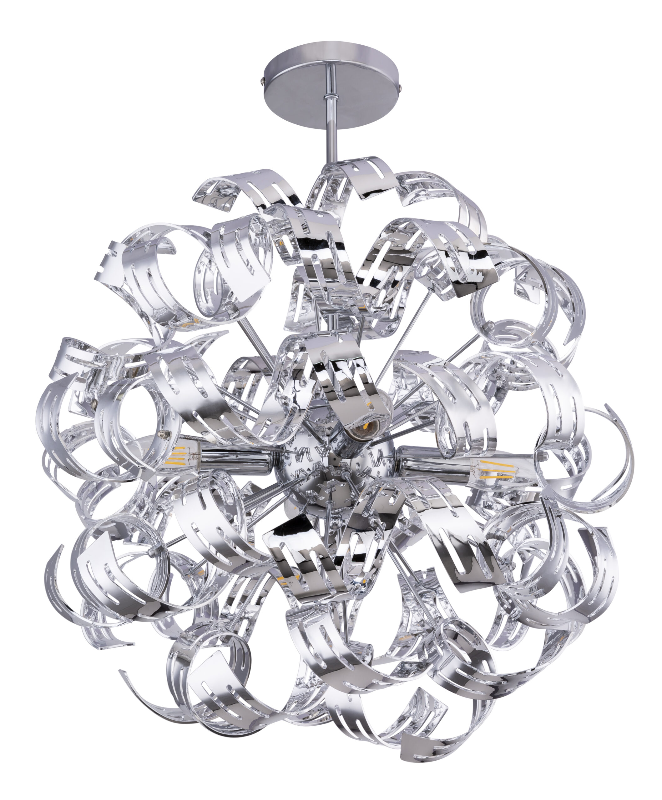 Ova plafonska lampa (Ø 50 cm) nudi čudo romantike kroz svoje ruke sa zakrivljenim hromiranim trakama. Svojim razigranim okruglim dizajnom, ova unutrašnja lampa privlači svačiju pažnju. Sa visinom od 56 cm, ova plafonska lampa se može univerzalno koristiti u zatvorenom prostoru. Slobodnim odabirom izvora svjetlosti (4 x E14/max. 40W) možete sami odrediti intenzitet svjetla i boju svjetla. Zbog dugotrajnosti preporučujemo LED sijalice. Sa ostalim modelima ove serije možete dodatno uljepšati sliku svog staništa.