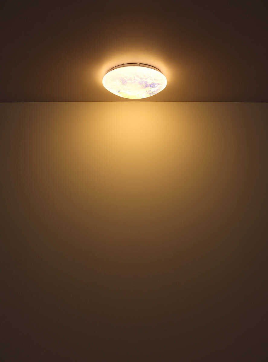 Plafonska lampa “GIA” uvjerava svojim okruglim dizajnom i fascinantnim akrilnim sjenilom sa mapom svijeta i motivima oblaka. Ovaj kreativan dizajn čini lampu posebnim vrhuncem u svakoj prostoriji. Bijelo metalno tijelo savršeno nadopunjuje plavo-bijelu akrilnu nijansu i daje lampi elegantan izgled. Sa svetlosnim tokom od 1500 lumena, “GIA” nudi svetlo i ujednačeno osvetljenje. Temperatura boje od 3000 K daje toplo bijelo svjetlo koje stvara ugodnu atmosferu. Integrirana LED tehnologija osigurava visoku energetsku efikasnost i dug radni vijek. Plafonska lampa “GIA” idealna je za dnevne sobe, kancelarije ili dečije sobe i postavlja funkcionalne i dekorativne akcente.