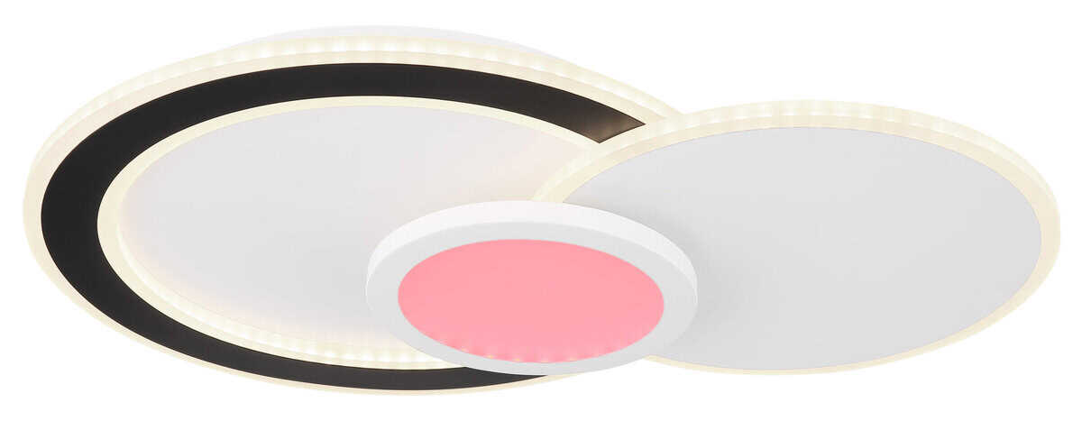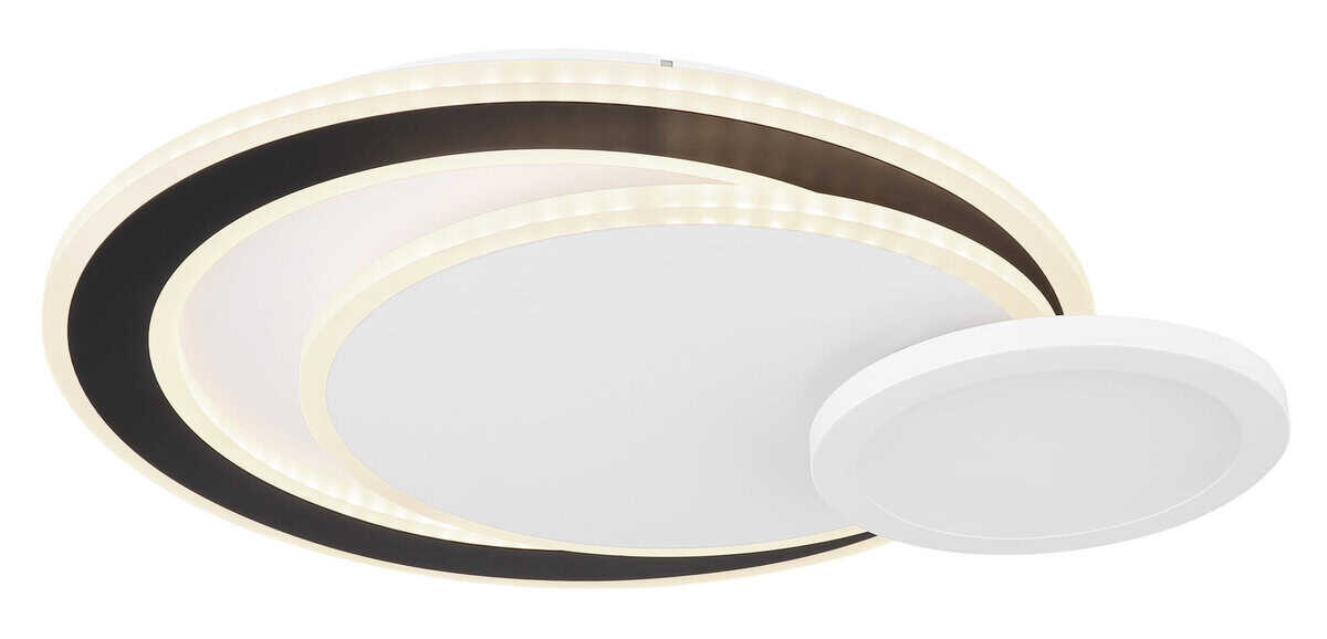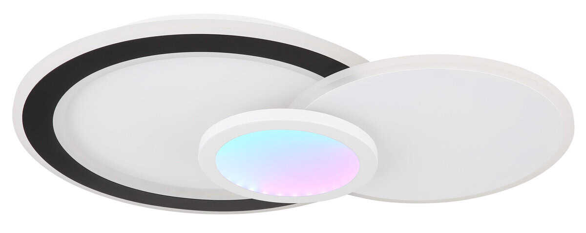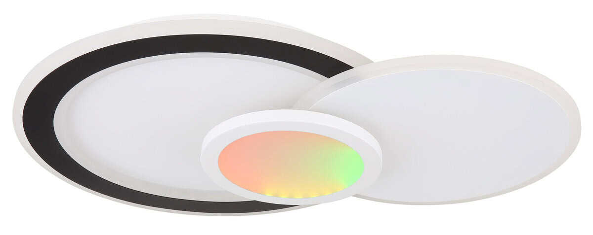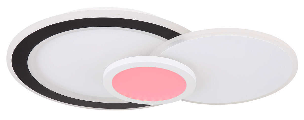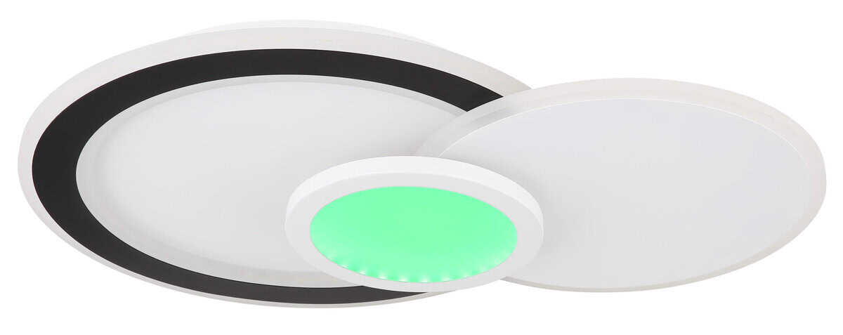 Plafonska lampa GISELL serije izrađena je od mat bijelog i mat crnog metala kao i opal akrila. Može se zatamniti i može se kontrolisati na nekoliko nivoa preko zidnog prekidača. Boje se mogu fiksirati i birati putem RGB izmjenjivača boja, koji se također može fiksirati. Dostupna je memorijska funkcija. Lampa se može rotirati i okretati i dolazi s daljinskim upravljačem za koji su uključene baterije (2x AAA). Dimenzije su DxŠxV: 575x400x85mm. Lampa ima LED od 40W i 230V kao i izvor svjetline od 450-4500lm i izlaz od 230-2300lm. Temperatura boje je podesiva od 3000-6500K. Pored toga, integrisan je RGB LED sa 5W i 230V.