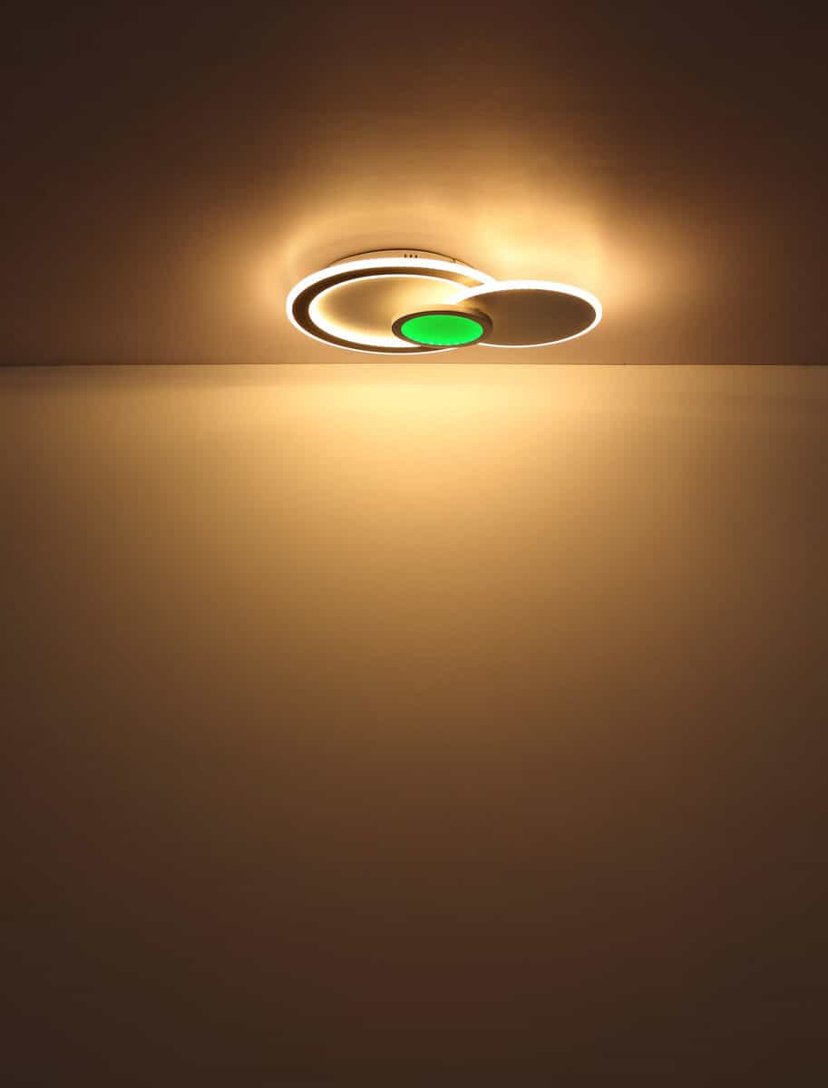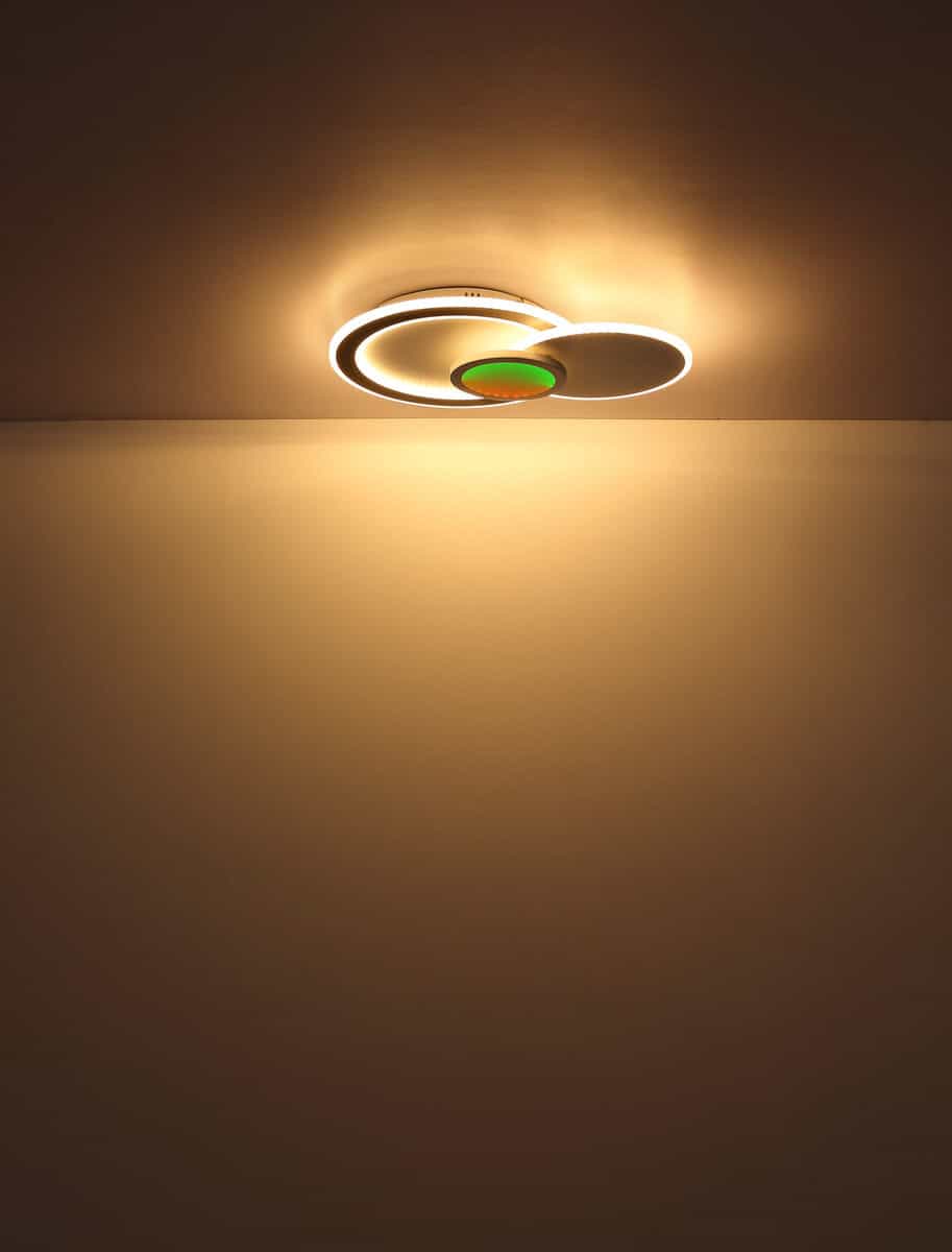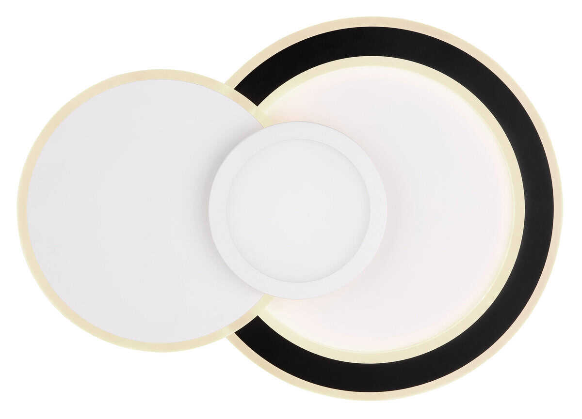 Plafonska lampa GISELL serije izrađena je od mat bijelog i mat crnog metala kao i opal akrila. Može se zatamniti i može se kontrolisati na nekoliko nivoa preko zidnog prekidača. Boje se mogu fiksirati i birati putem RGB izmjenjivača boja, koji se također može fiksirati. Dostupna je memorijska funkcija. Lampa se može rotirati i okretati i dolazi s daljinskim upravljačem za koji su uključene baterije (2x AAA). Dimenzije su DxŠxV: 575x400x85mm. Lampa ima LED od 40W i 230V kao i izvor svjetline od 450-4500lm i izlaz od 230-2300lm. Temperatura boje je podesiva od 3000-6500K. Pored toga, integrisan je RGB LED sa 5W i 230V.