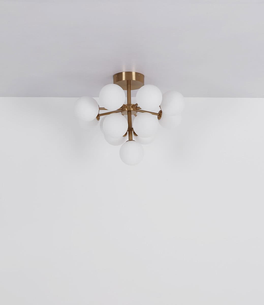 Elegantna okrugla plafonska lampa CEILING LAMP METAL ZLATNE BOJE svojim glamuroznim dizajnom i staklenim kuglicama u boji opala stvara luksuznu atmosferu u svakoj prostoriji. Tijelo izrađeno od mat metala zlatne boje i staklene sfere u boji opala daju ovoj plafonskoj lampi otmjen i moderan izgled. Sa prečnikom od 560 mm i ukupno 13 integrisanih G9 LED sijalica, ova plafonska lampa nudi snagu od 5W, što pruža prijatno i jako osvetljenje. PLAFONA SVJETILJKA METAL ZLATNE BOJE nije samo privlačna za oči, već je i efikasan izvor svjetlosti za vaš dnevni boravak ili blagovaonicu. Napravite dašak glamura u svom domu uz ovu plafonsku lampu i budite zadivljeni njenim elegantnim dizajnom.