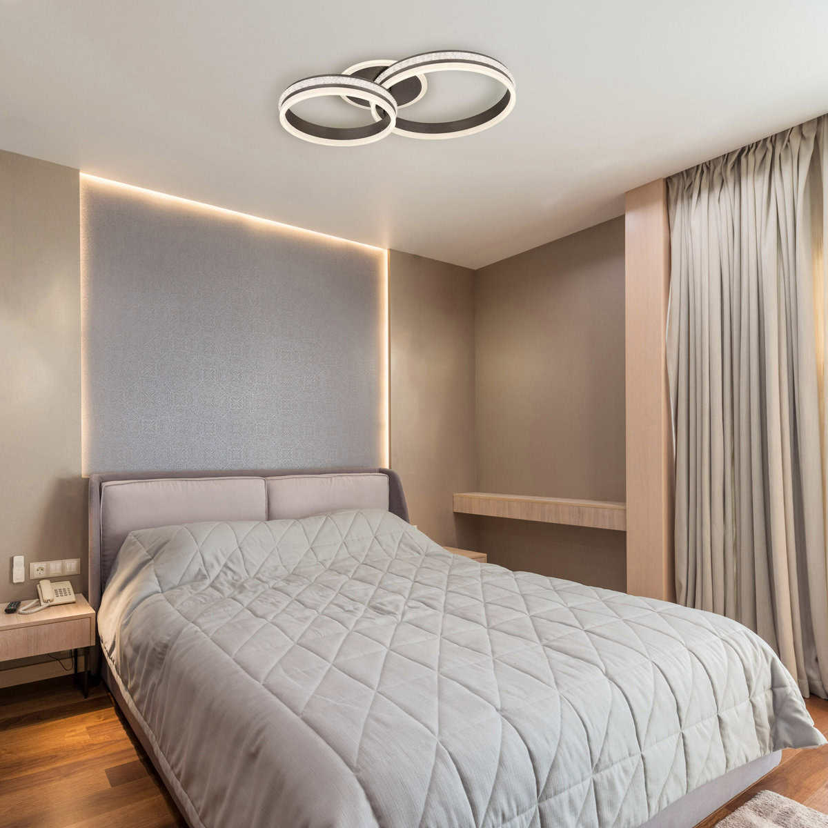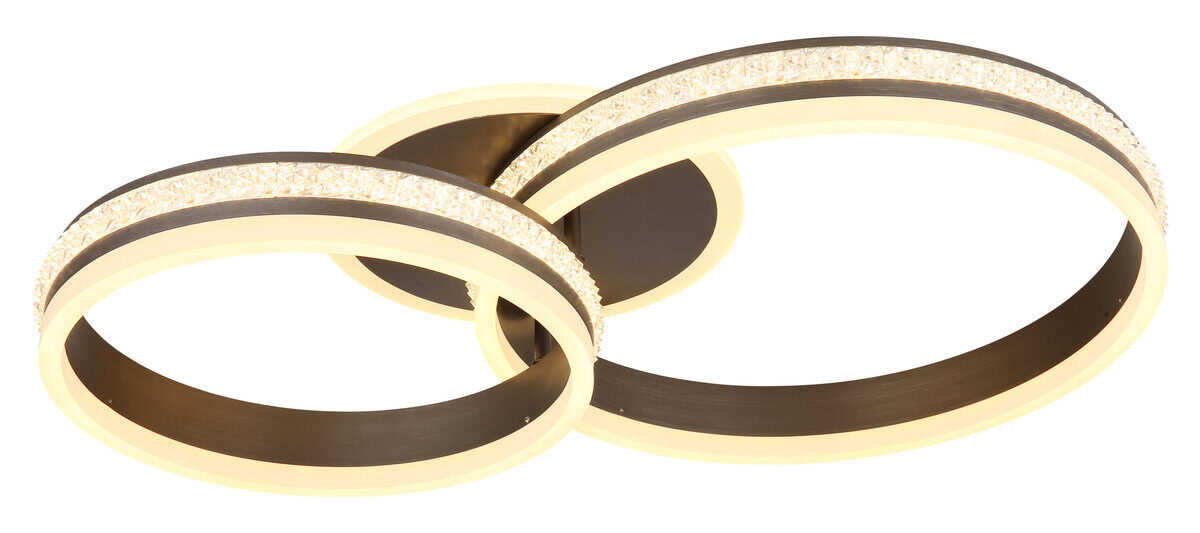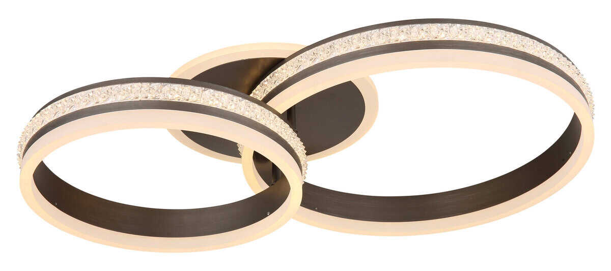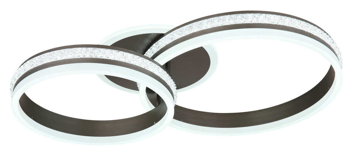 Uronite u fascinantan svet GROUNI plafonske lampe! Njihov brušeni metal i aluminijum će dodati dašak moderne elegancije vašem prostoru. Prozirni plastični kristali i opalno akrilno staklo stvaraju impresivnu igru svjetla. Uz funkciju zatamnjivanja, koja se može kontrolisati na nekoliko nivoa preko vašeg zidnog prekidača, imate potpunu kontrolu nad intenzitetom svjetlosti. Boje se mogu fiksirati po vašoj želji, a funkcija ugrađene memorije vam omogućava da zadržite željena podešavanja. Osim toga, plafonska lampa GROUNI nudi noćno svjetlo i dolazi s daljinskim upravljačem. Baterija (2x AAA) je već uključena. Sa dimenzijama 640x400x150mm (dužina x širina x visina) i prečnikom prstena od 30 cm i 40 cm svaki, GROUNI plafonska lampa postaje impresivna privlačnost u svakoj prostoriji. Svetiljka se isporučuje sa energetski efikasnom LED sijalicom koja nudi snagu od 50W, 230V napon, 648-5325lm svjetlosni tok (izvor) i 442-2600lm svjetlosnu efikasnost (izlaz), kao i podesivu temperaturu boje od 2700-6000K (CCT) .