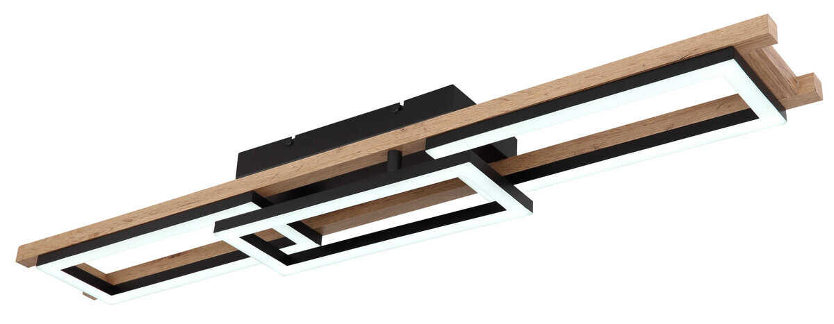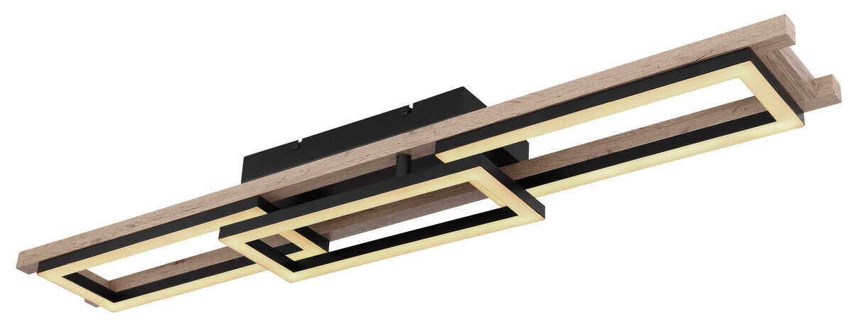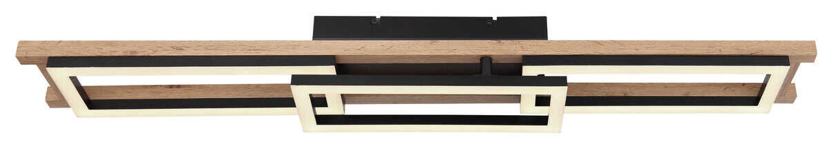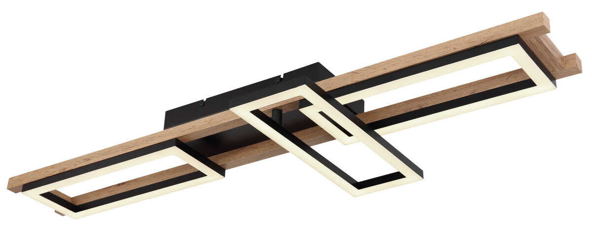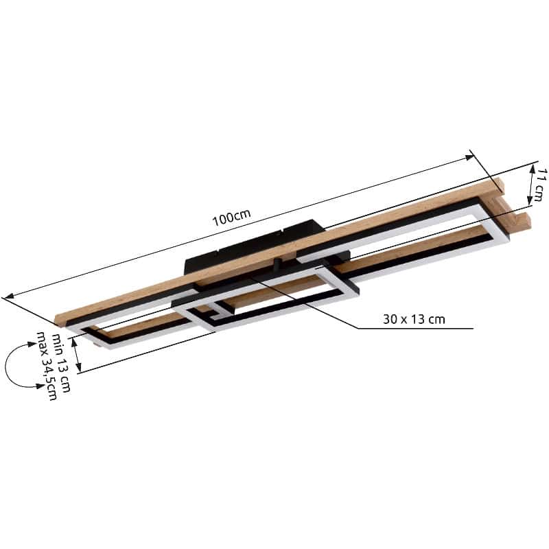 Ova moderna plafonska lampa serije ILLA inspiriše sjajnim dizajnom i postaje centar vaše sobe. Na crnom mat metalnom pričvršćivaču za strop nalazi se 1 m duga skela u izgledu drveta sa tri pričvršćena pravokutna LED panela. Snažne LED ploče od 30 vati i 1800 lumena mogu se zatamniti i fiksirati u svijetlim bojama između 2700 Kelvina toplog i 6500 Kelvina hladno bijelog. Pomoću priloženog daljinskog upravljača možete upravljati dodatnim funkcijama kao što su noćno svjetlo i memorijska funkcija.