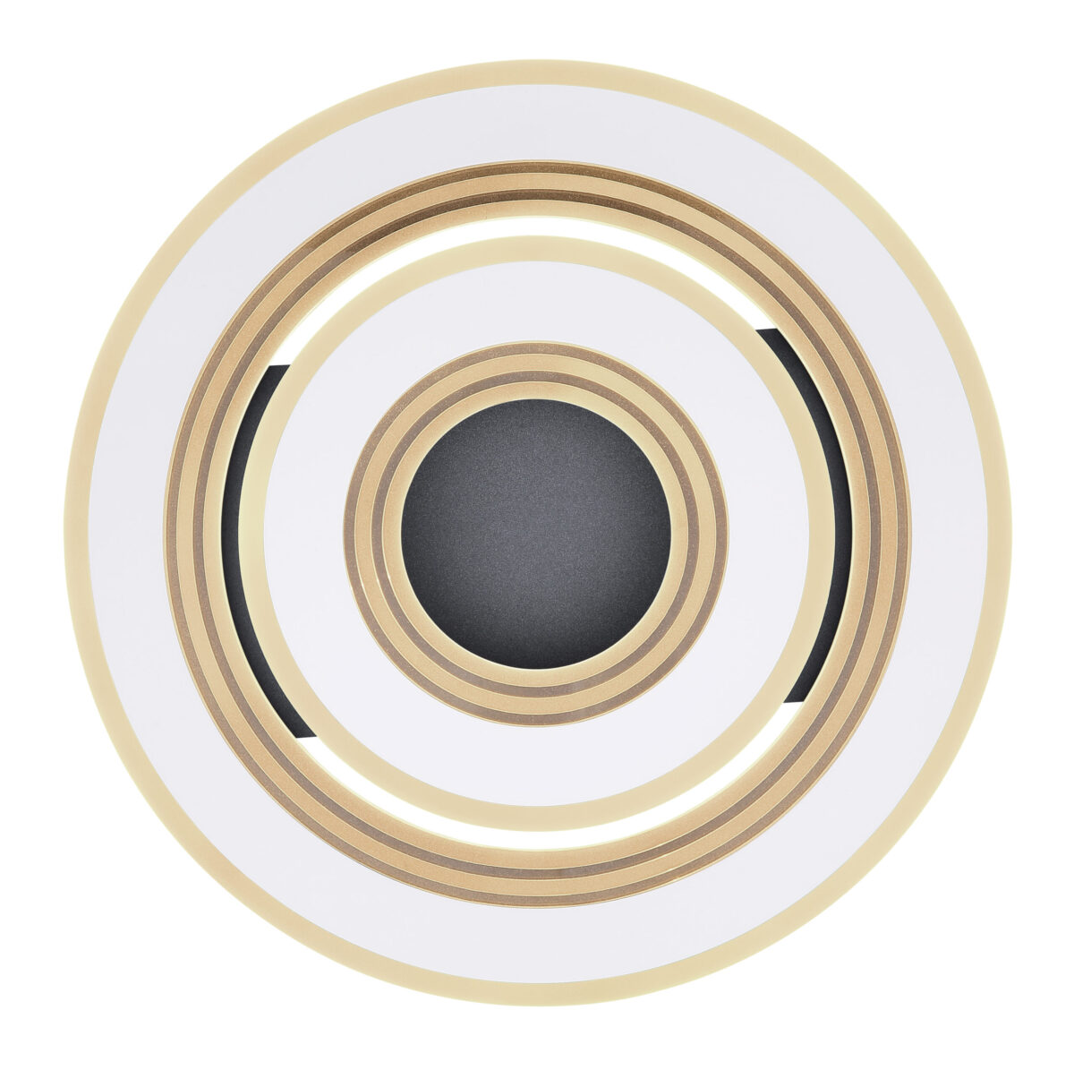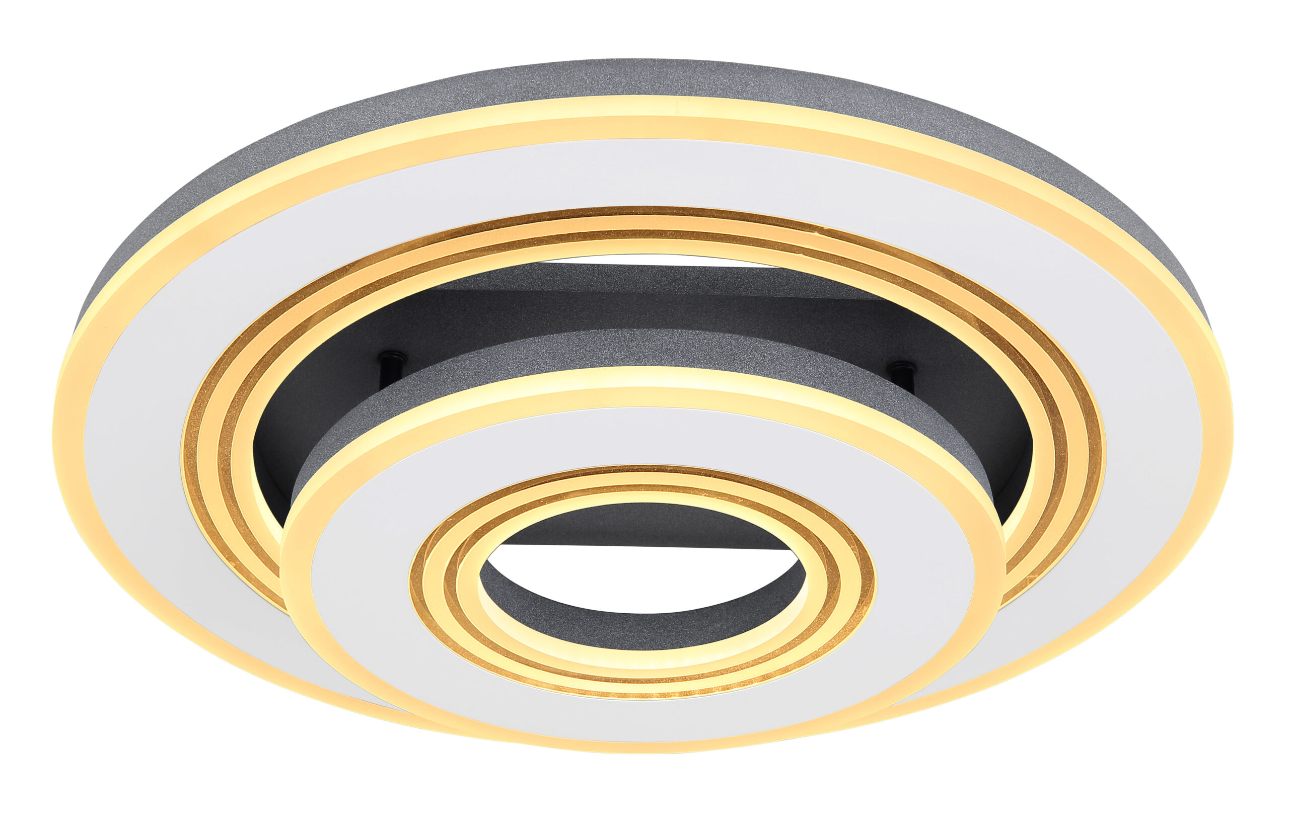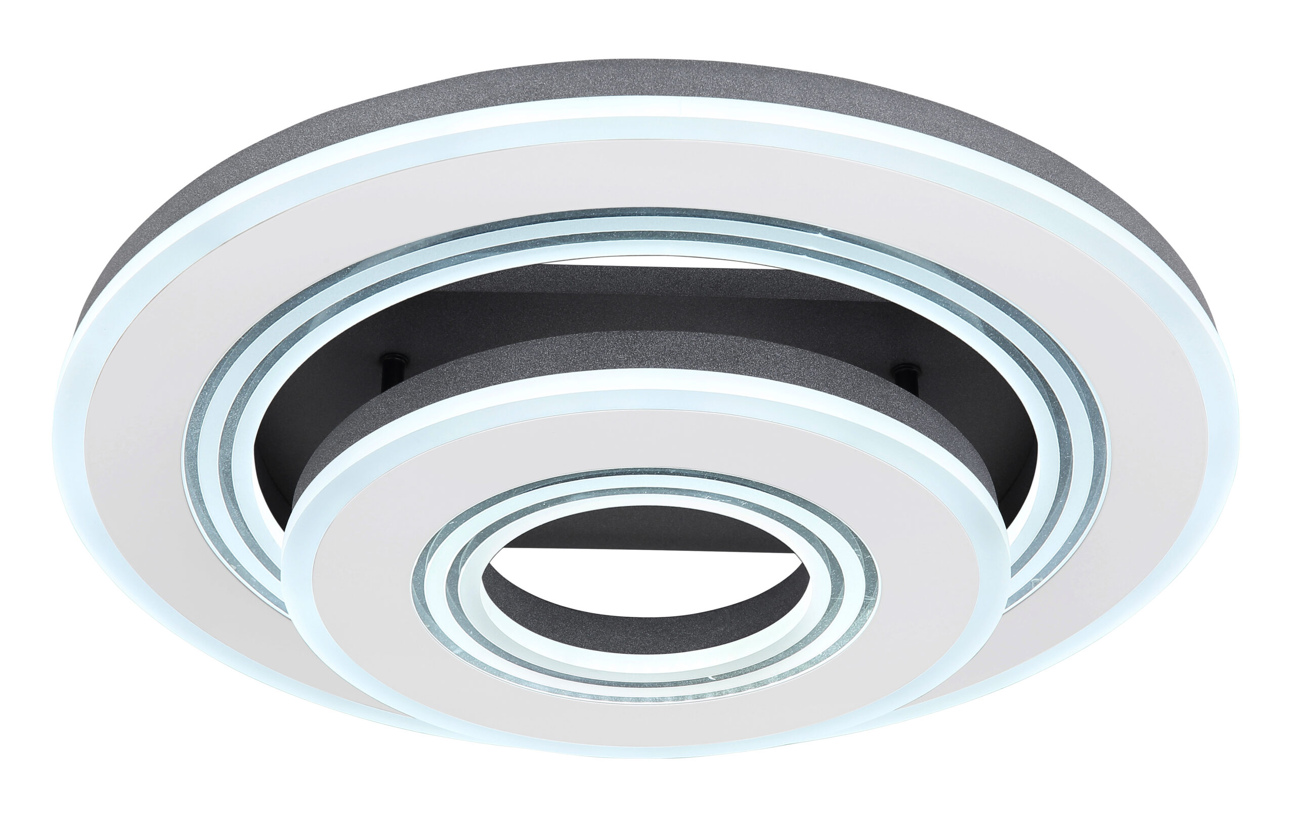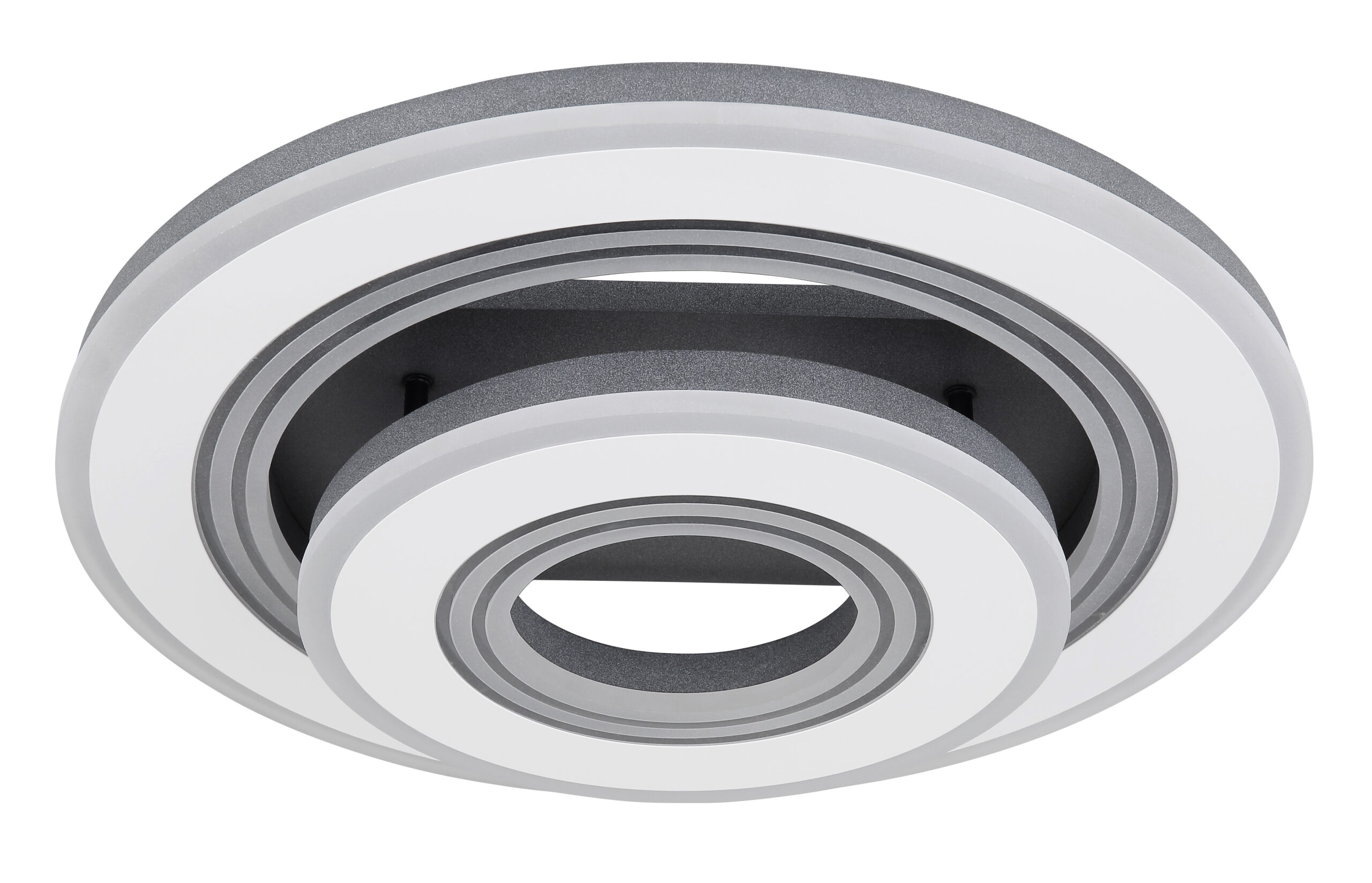 Ova okrugla plafonska lampa iz serije Jack (ø 50 cm) impresionira svojim elegantnim dizajnom crno-belih metalnih prstenova. Sastoji se od nekoliko prstenova koji su opremljeni opalnim akrilom. Uključene LED sijalice pružaju 2080 lumena jakog svjetla, pri čemu možete podesiti boju svjetla u nekoliko faza između tople i hladne bijele (2700 do 6000 Kelvina) pomoću priloženog daljinskog upravljača. Na ovaj način možete prigušiti stropno svjetlo i imati funkciju noćnog svjetla. Sa drugim modelima iste serije možete upotpuniti cjelokupnu sliku u svoja četiri zida i pružiti moderan ambijent.