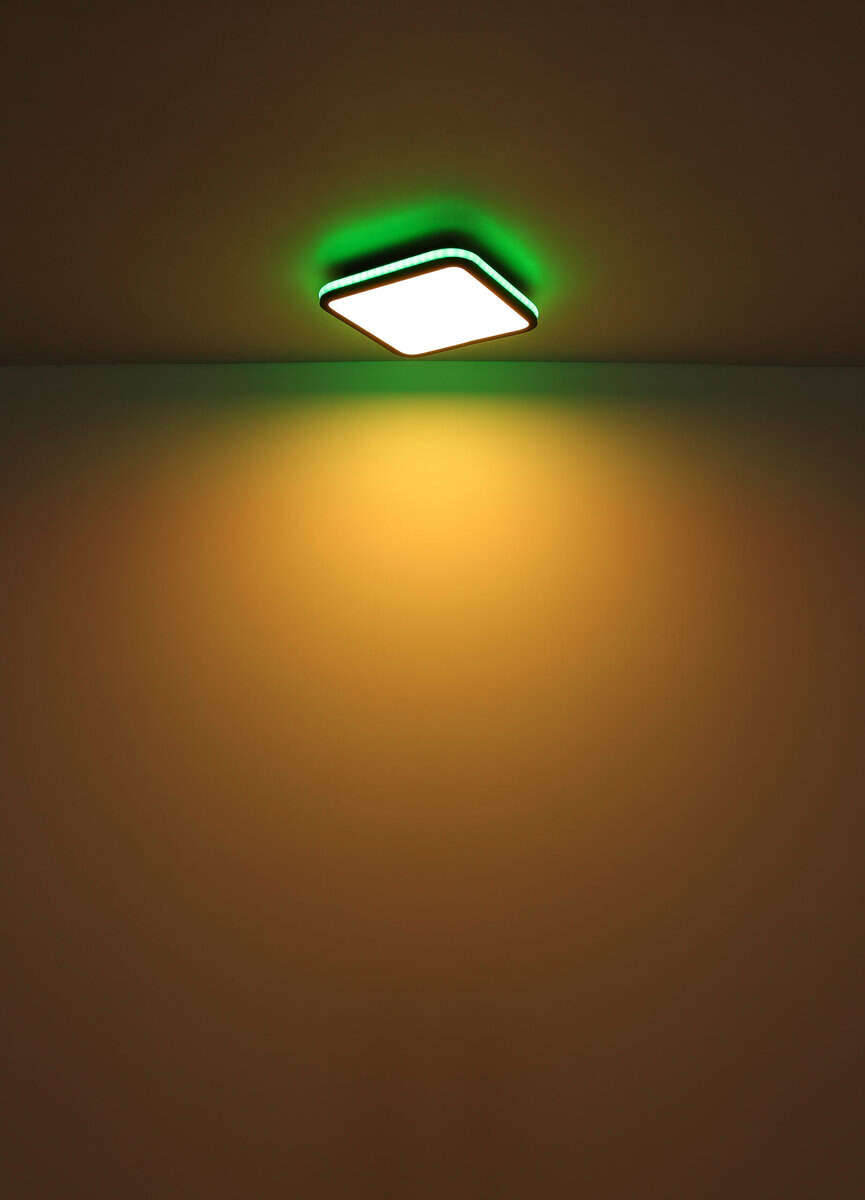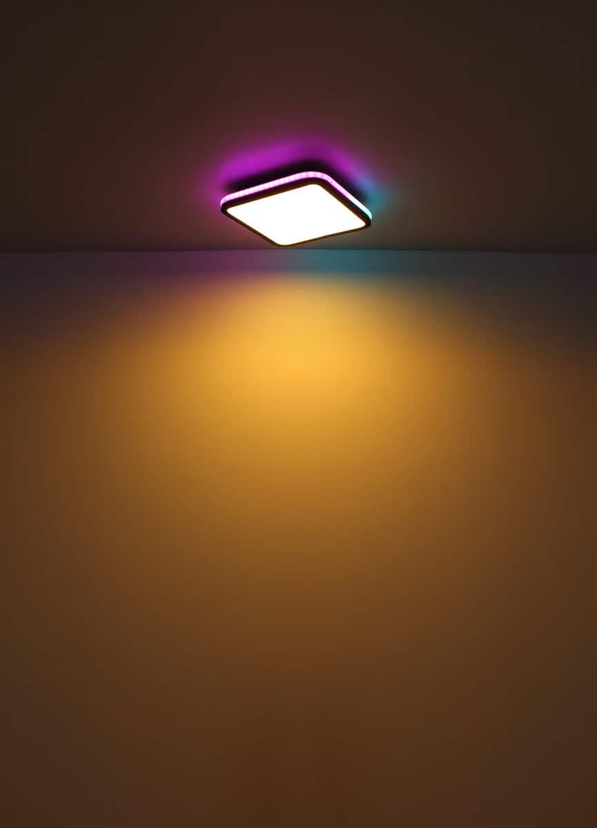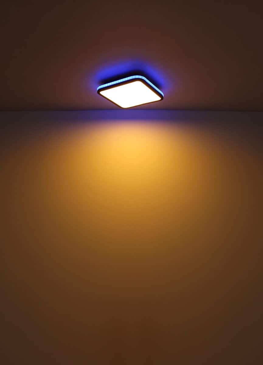 Prekrasna stropna lampa serije JAXXI inspirira dizajnom i odličnim funkcijama. Kvadratna plafonska lampa (35,5 cm) može se zatamniti i fiksirati između svetlih boja od 2700 Kelvina toplo bele, do 6500 Kelvina hladno bele. Pomoću priloženog daljinskog upravljača možete koristiti RGB i memorijsku funkciju. Vrhunac ove lampe je prekrasan efekat duge.