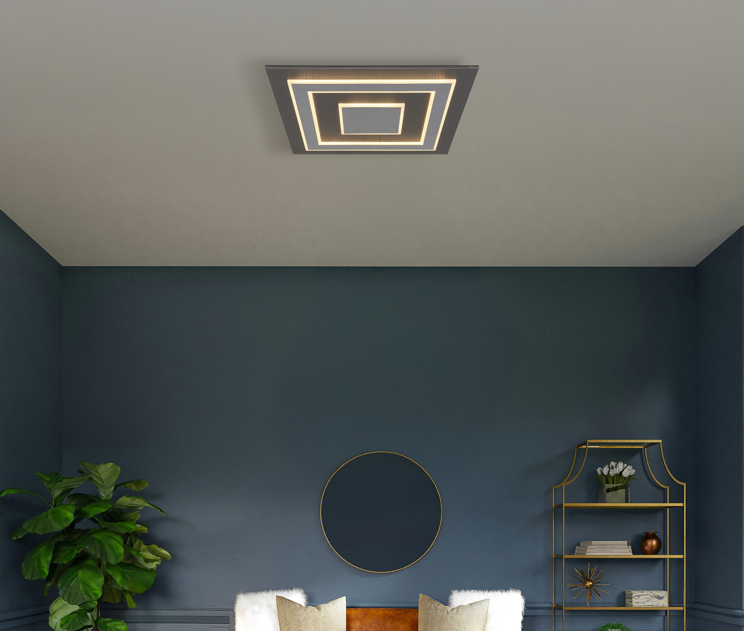 Plafonska lampa JAYDEN kvadratnog dizajna impresionira svojim antracit brušenim plastičnim tijelom i sivim brušenim MDF sjenilom. Sa impresivnom svjetlosnom snagom od 1200 lumena i svjetlosnom temperaturom od 3000 K, pruža odlično osvjetljenje. Akrilno-opalna završna obrada osigurava ravnomjernu distribuciju svjetlosti, a integrirana memorijska funkcija omogućava vam da sačuvate željeno svjetlosno raspoloženje.