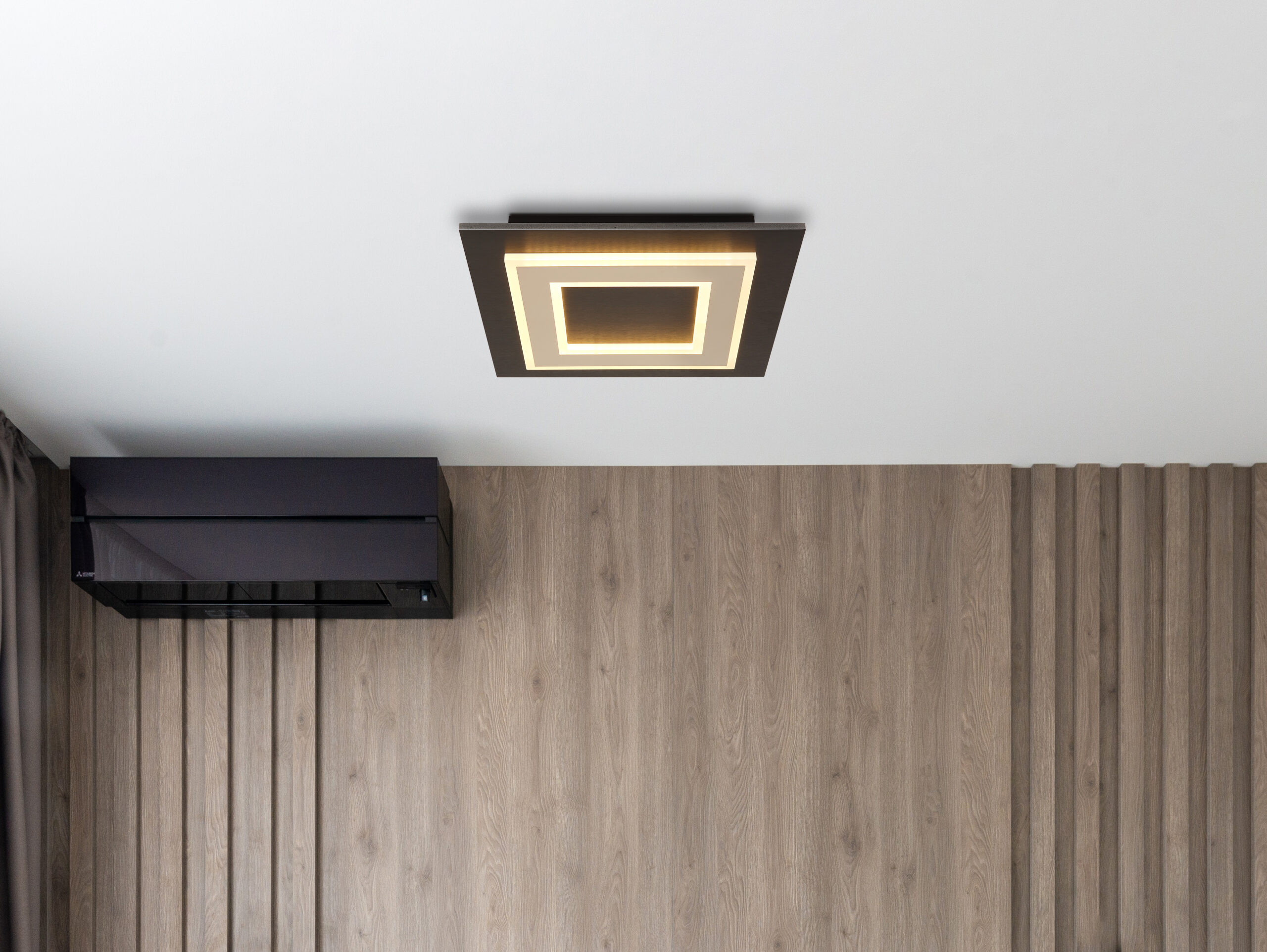 JAYDEN kvadratna plafonska lampa je savršen izbor za moderan i moderan život. Mat crno metalno kućište daje lampi elegantan i bezvremenski izgled. Sjenilo je izrađeno od tamno smeđeg, brušenog MDF-a (vlaknasta ploča srednje gustine) i boje šampanjca, također brušenog metala, u kombinaciji sa opal akrilom. Ova kombinacija materijala stvara toplu i privlačnu atmosferu. Sa svjetlosnom snagom od 680 lumena i temperaturom boje od 3000 K, plafonsko svjetlo JAYDEN pruža ugodno i ujednačeno osvjetljenje, idealno za dnevni boravak, spavaću sobu ili hodnik. Njegov kvadratni oblik skladno se uklapa u različite stilove opremanja i postavlja stilske akcente. Bilo da je glavni izvor svjetlosti ili dekorativni element, plafonska lampa JAYDEN uvjerava svojim visokokvalitetnim dizajnom i funkcionalnom rasvjetom.