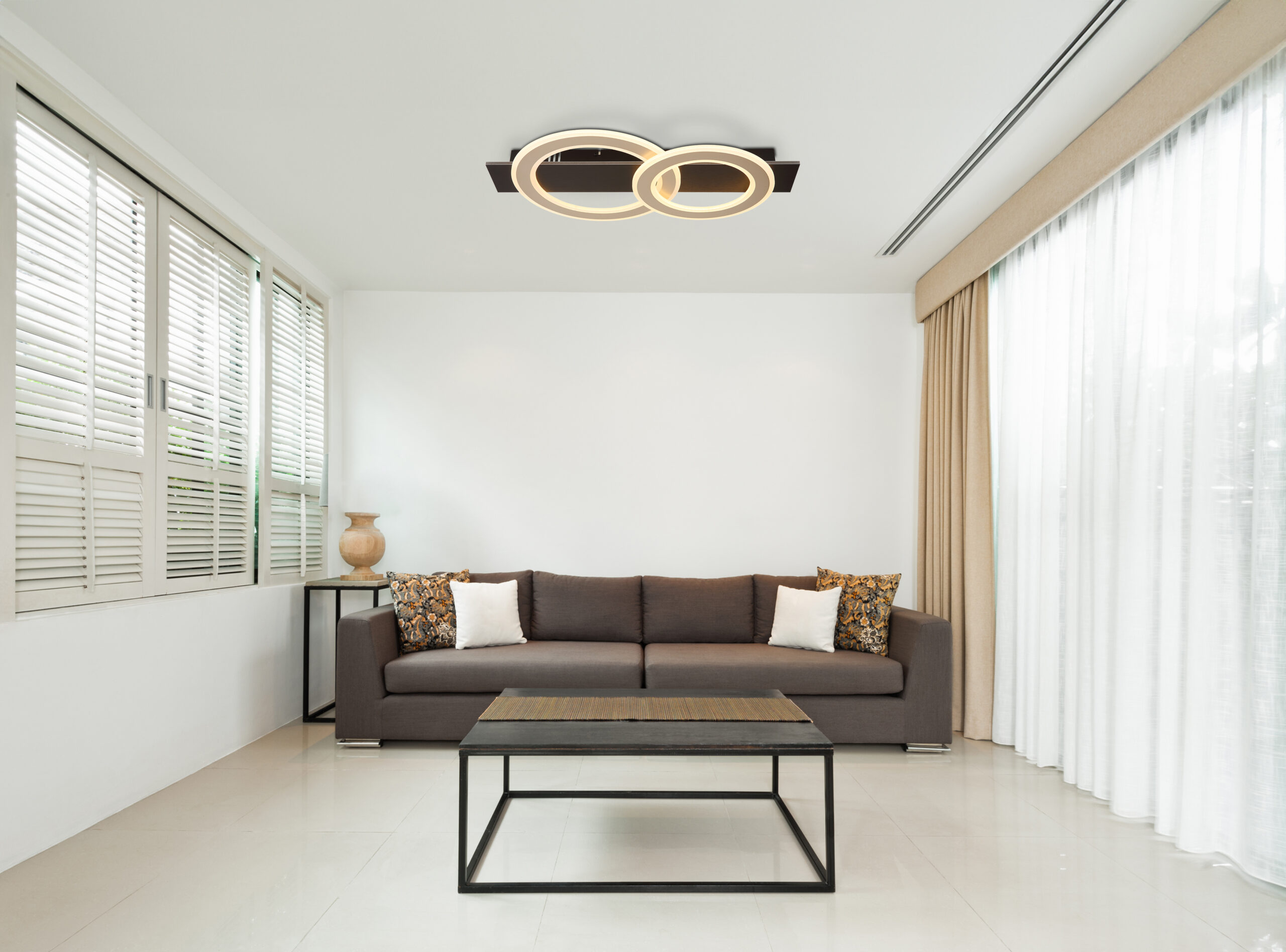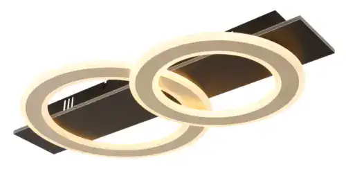 Otkrijte pravougaonu plafonsku lampu JAYDEN sa dva pričvršćena prstena – stilski izbor za moderne životne prostore! Mat crno metalno tijelo savršeno se usklađuje sa tamno smeđim brušenim MDF-om i nijansom od brušenog metala boje šampanjca. Sjenilo je napravljeno od opal akrila, koji osigurava ravnomjernu distribuciju svjetlosti i stvara toplu atmosferu s temperaturom boje od 3000 K. Stropna lampa JAYDEN impresionira jačinom lumena od 2000, idealna za prostorije kojima je potrebno svijetlo i ravnomjerno osvjetljenje, kao npr. dnevnim sobama, trpezarijama ili hodnicima. Pravokutni dizajn sa pričvršćenim prstenovima daje lampi moderan i atraktivan izgled. Visokokvalitetni materijali garantuju izdržljivost i stil. Ova plafonska lampa savršeno kombinuje estetiku i funkcionalnost i postavlja stilski naglasak u svakoj prostoriji. Uživajte u efikasnoj rasvjeti i modernom dizajnu plafonske svjetiljke JAYDEN koja će na elegantan način uljepšati vaš dom.