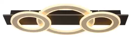 Doživite pravougaonu plafonsku lampu JAYDEN sa tri pričvršćena prstena – moderan i moderan izbor za vaš dom! Mat crno metalno kućište je u elegantnom kontrastu sa tamno smeđim brušenim MDF-om i nijansom od brušenog metala boje šampanjca. Sjenilo je napravljeno od opal akrila, koji osigurava ujednačenu distribuciju svjetlosti i stvara toplu atmosferu s temperaturom boje od 3000 K. Sa impresivnom jačinom lumena od 2300, JAYDEN plafonsko svjetlo je idealno za prostorije kojima je potrebno jako i ujednačeno osvjetljenje, kao npr. kao dnevne sobe, trpezarije ili hodnici. Pravokutni dizajn s tri pričvršćena prstena daje lampi moderan i atraktivan izgled. Visokokvalitetni materijali garantuju izdržljivost i stil. Stropna svjetiljka JAYDEN savršeno spaja estetiku i funkcionalnost i postavlja stilski naglasak u svakoj prostoriji. Uživajte u efikasnoj rasvjeti i modernom dizajnu koji će uljepšati vaš dom na elegantan način.