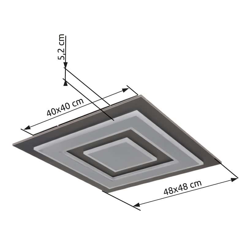 JAYDEN je impresivna plafonska lampa koja se ističe svojim modernim i bezvremenskim oblikom. Kvadratno kućište izrađeno od plastike u antracit brušenoj završnoj obradi izgleda robusno i moderno, dok kvadratna nijansa izrađena od metala u sivoj brušenoj završnoj obradi i akrilnog opala daje svijetlu i toplu svijetlu boju. Sa snagom od 840 lumena, JAYDEN je idealan za direktno osvjetljenje prostorija, kao što su dnevne sobe, kancelarije ili reprezentativne sobe. Svjetiljka ima odličnu distribuciju svjetlosti, što stvara prijateljsku i ugodnu atmosferu. JAYDEN je odličan primjer modernog i elegantnog dizajna rasvjete koja ne samo da izgleda privlačno, već nudi i širok raspon funkcija.