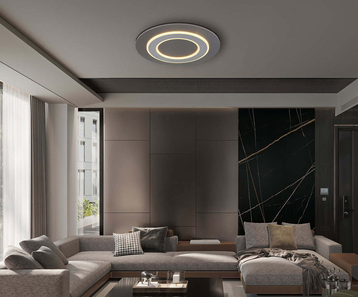 Stropna lampa JAYDEN sa svojim antracit brušenim metalnim tijelom i sivim brušenim MDF sjenilom kombinira moderan dizajn sa moćnim osvjetljenjem. Ova okrugla svjetiljka nudi svjetlosni izlaz od 840 lumena na 3000 K. Akrilni opalni sjenilo osigurava ravnomjernu distribuciju svjetlosti, dok brušena završna obrada daje elegantan dodir rasvjetnom tijelu. Savršeno za svaku prostoriju u kojoj je potrebno elegantno i efikasno osvjetljenje.