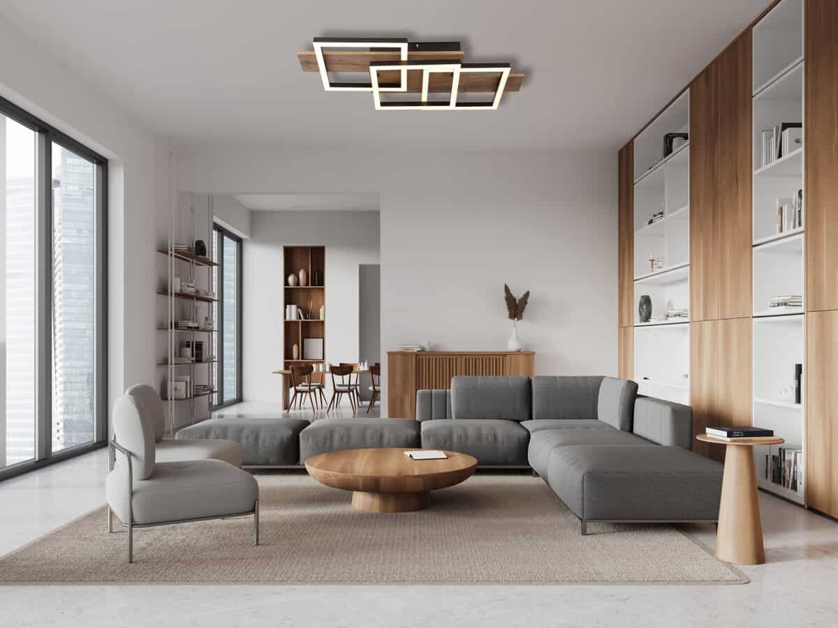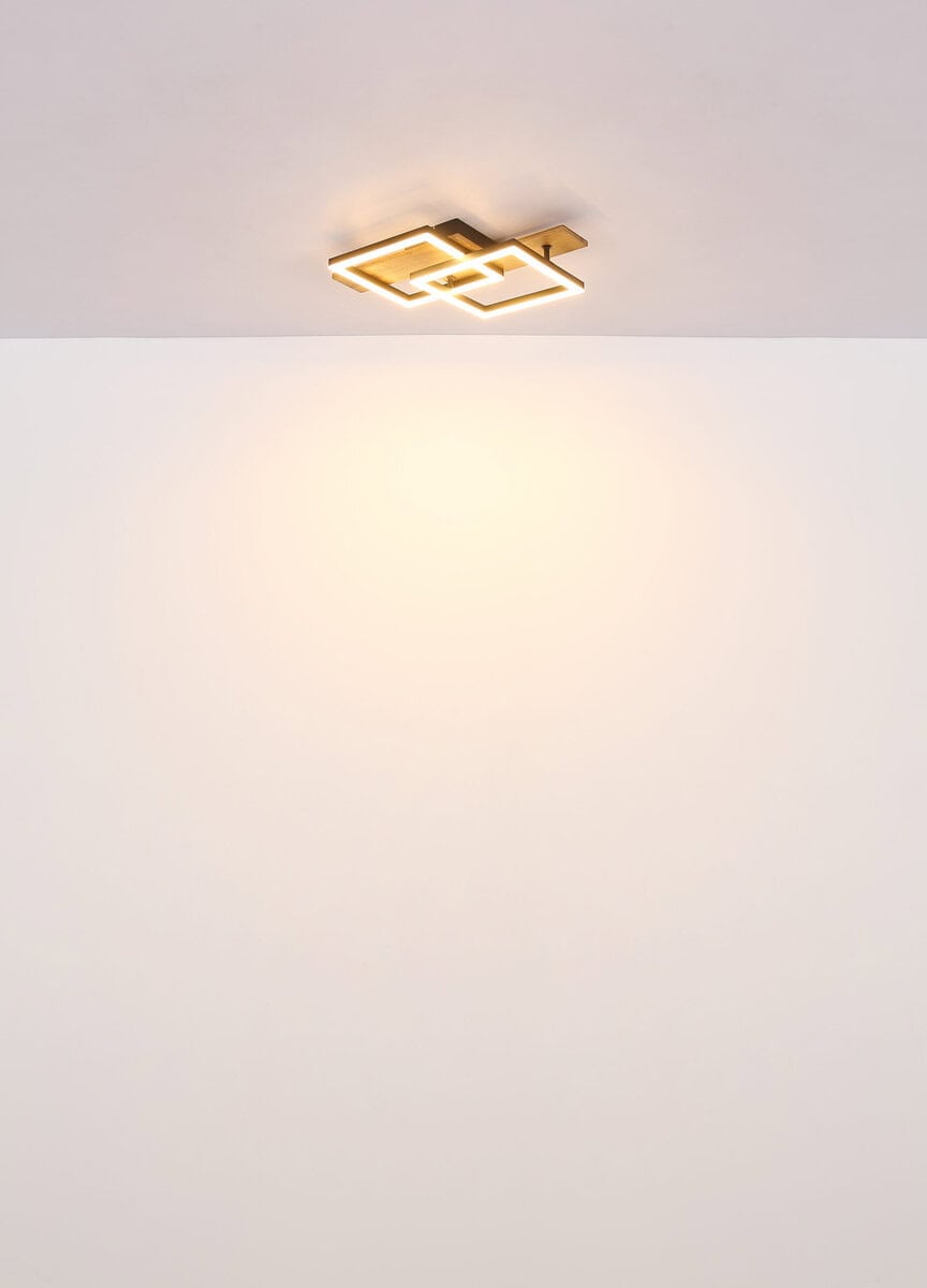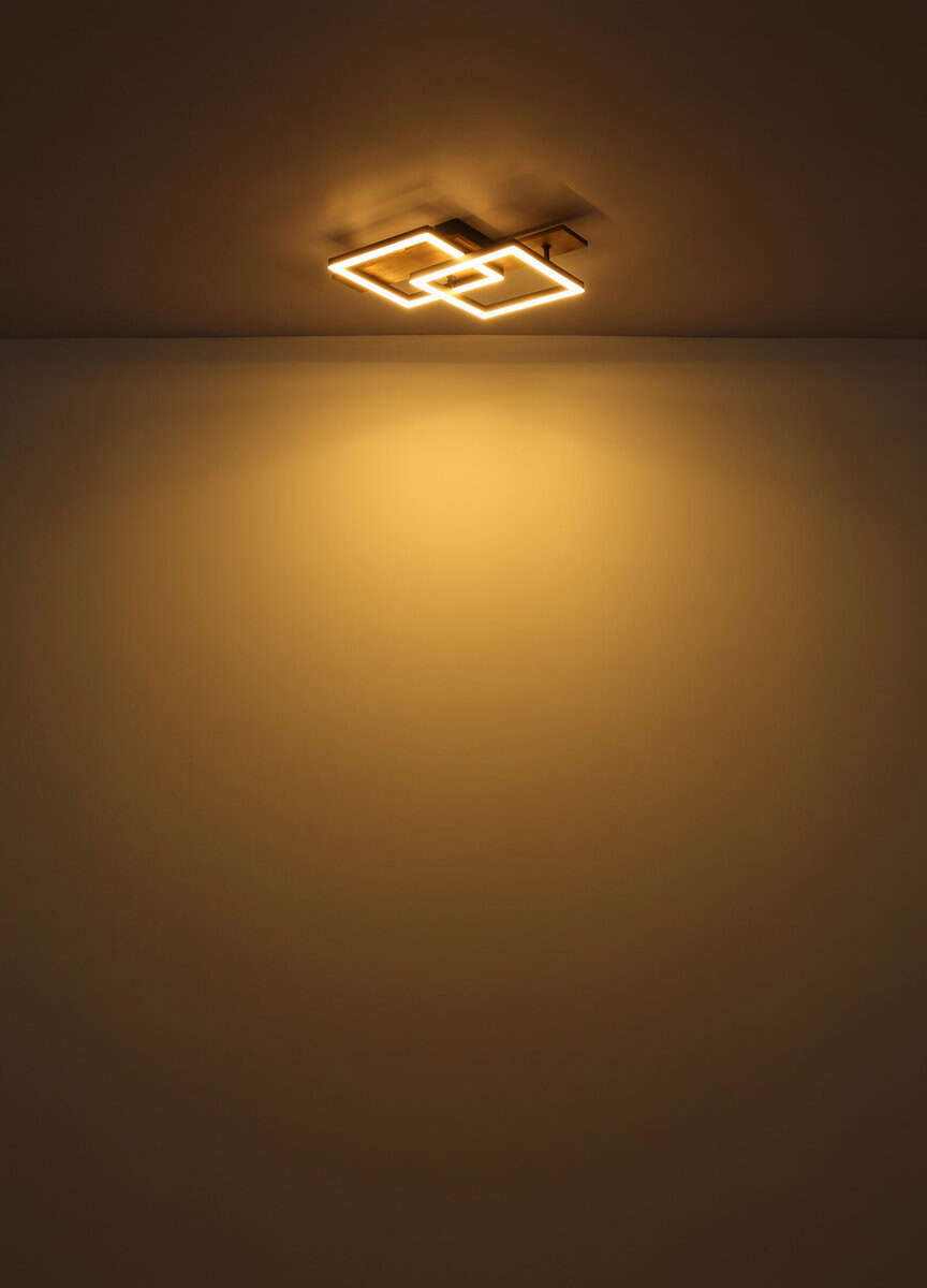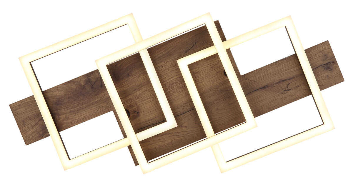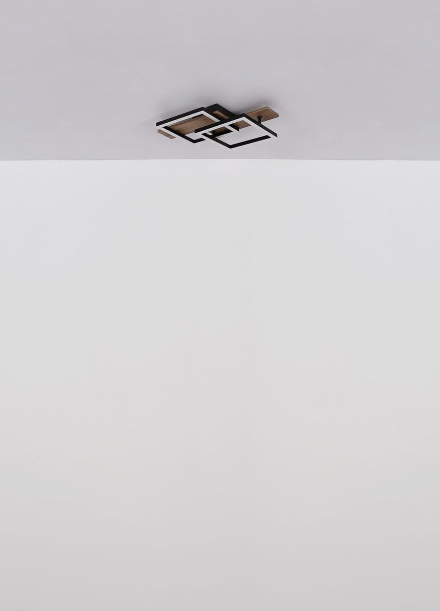 Plafonska lampa JEFFRY je prava privlačna za oko sa svojim pričvršćenim i pomaknutim kvadratima. Pravougaona kućišta od mat crnog lakiranog metala i efekta MDF drveta unosi moderan štih u vaš dom. Sa dužinom od 580 mm i širinom od 330 mm, idealan je za veće prostorije. Sjenilo izrađeno od plastike u mat crnoj i opalnoj boji osigurava ravnomjernu distribuciju svjetlosti. Sa impresivnom svjetlosnom snagom od 1300 lumena na 3000 K, JEFFRY stvara atmosferu dobrodošlice, savršenu za blagovaonice ili dnevni boravak.