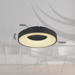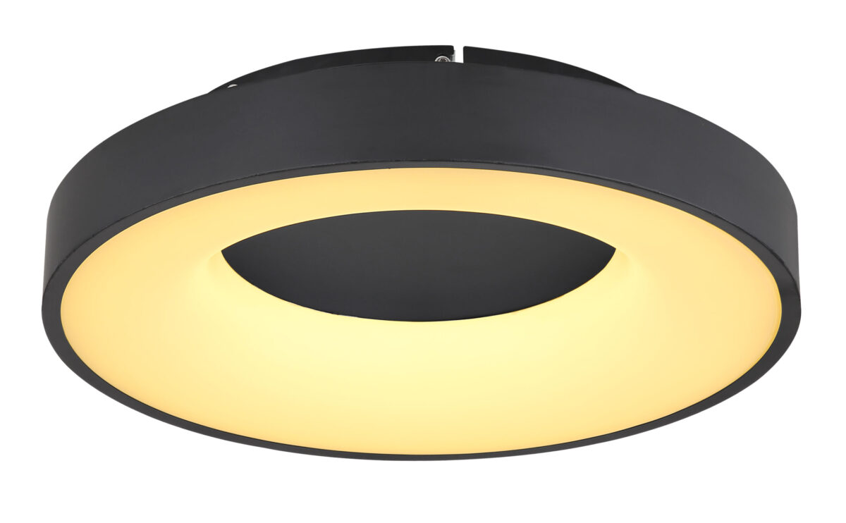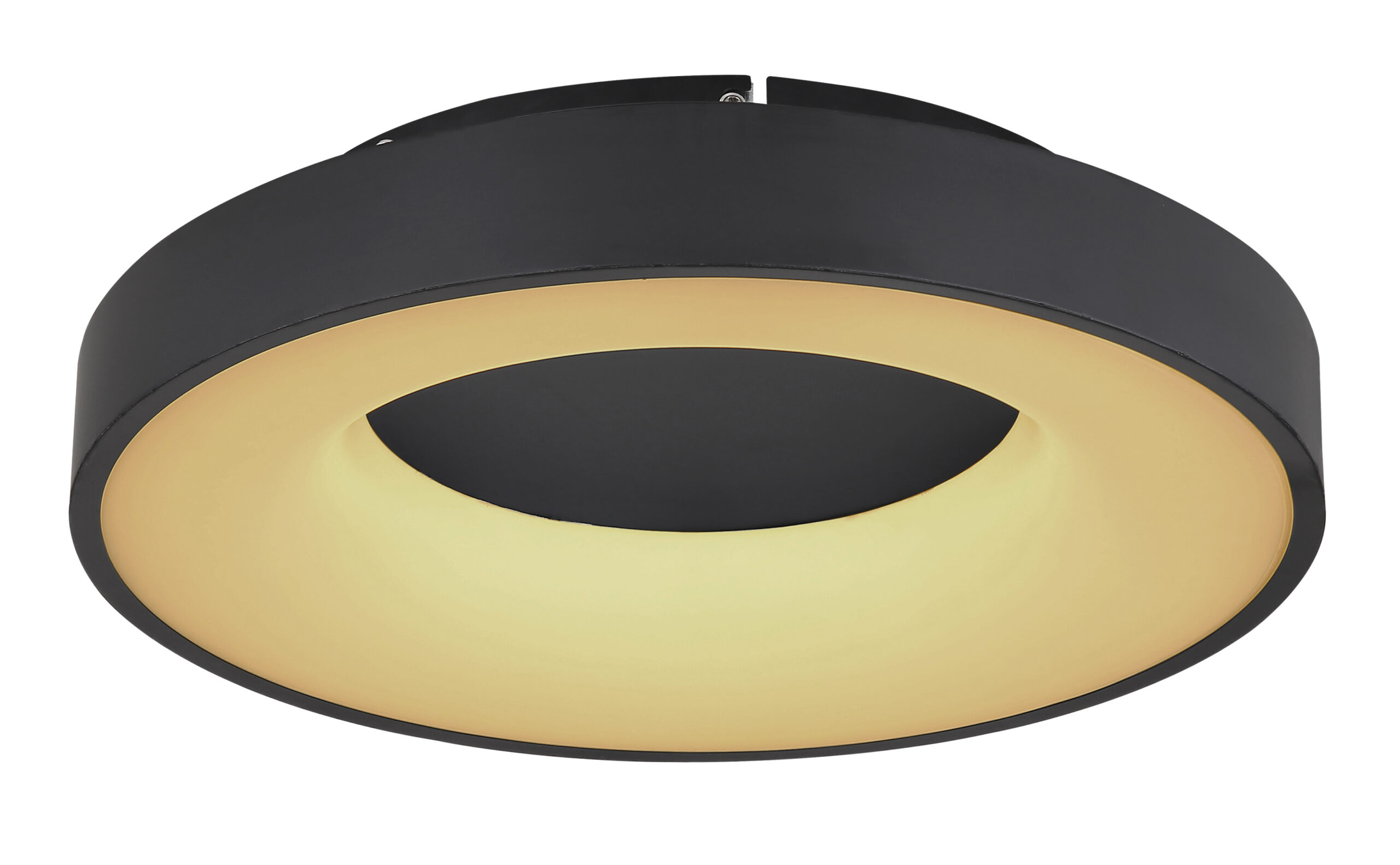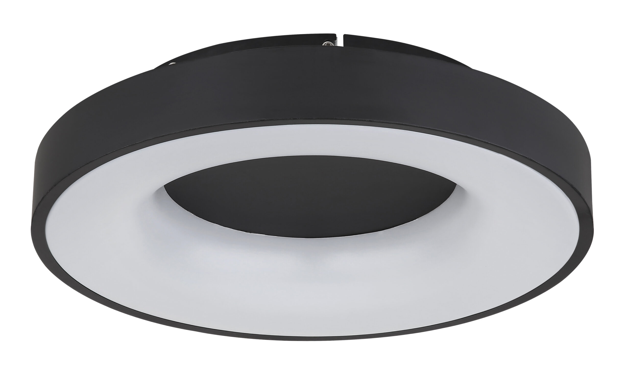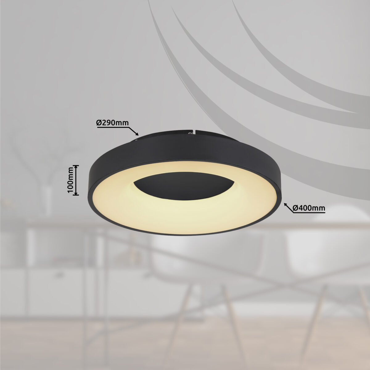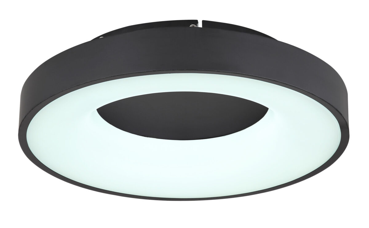Ova okrugla stropna lampa iz Jolli serije (ø 40 cm) je prekrasan dodatak vašem interijeru. Sastoji se od crne metalne ploče, oko koje je pričvršćen crni metalni prsten. Površina između njih je opalna plastika koja pokriva uključene LED sijalice koje daju 1800 lumena jakog svjetla. Pomoću priloženog daljinskog upravljača ne samo da možete prigušiti stropno svjetlo, već i individualno podesiti boju svjetla u nekoliko nivoa između 2700 Kelvina (toplo bijelo) i 6000 Kelvina (hladno bijelo), a također imate funkciju noćnog svjetla. Sa drugim modelima iste serije možete upotpuniti cjelokupnu sliku u svoja četiri zida i pružiti moderan ambijent.