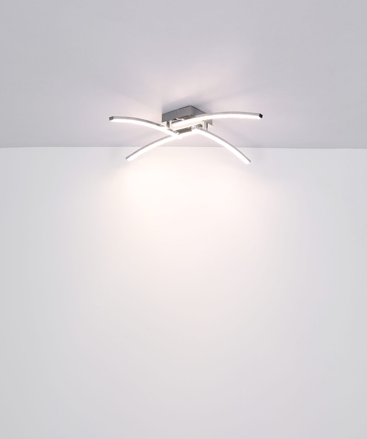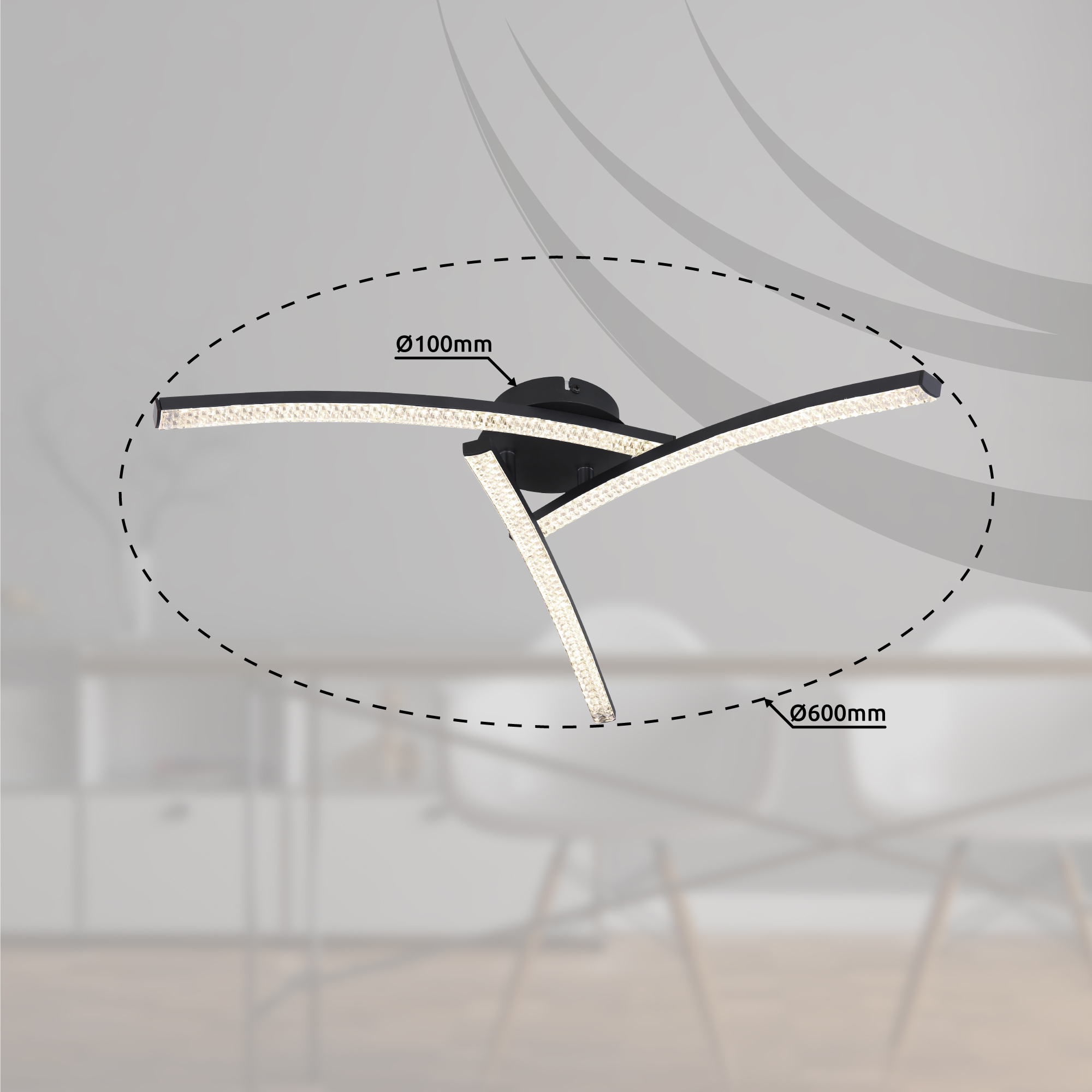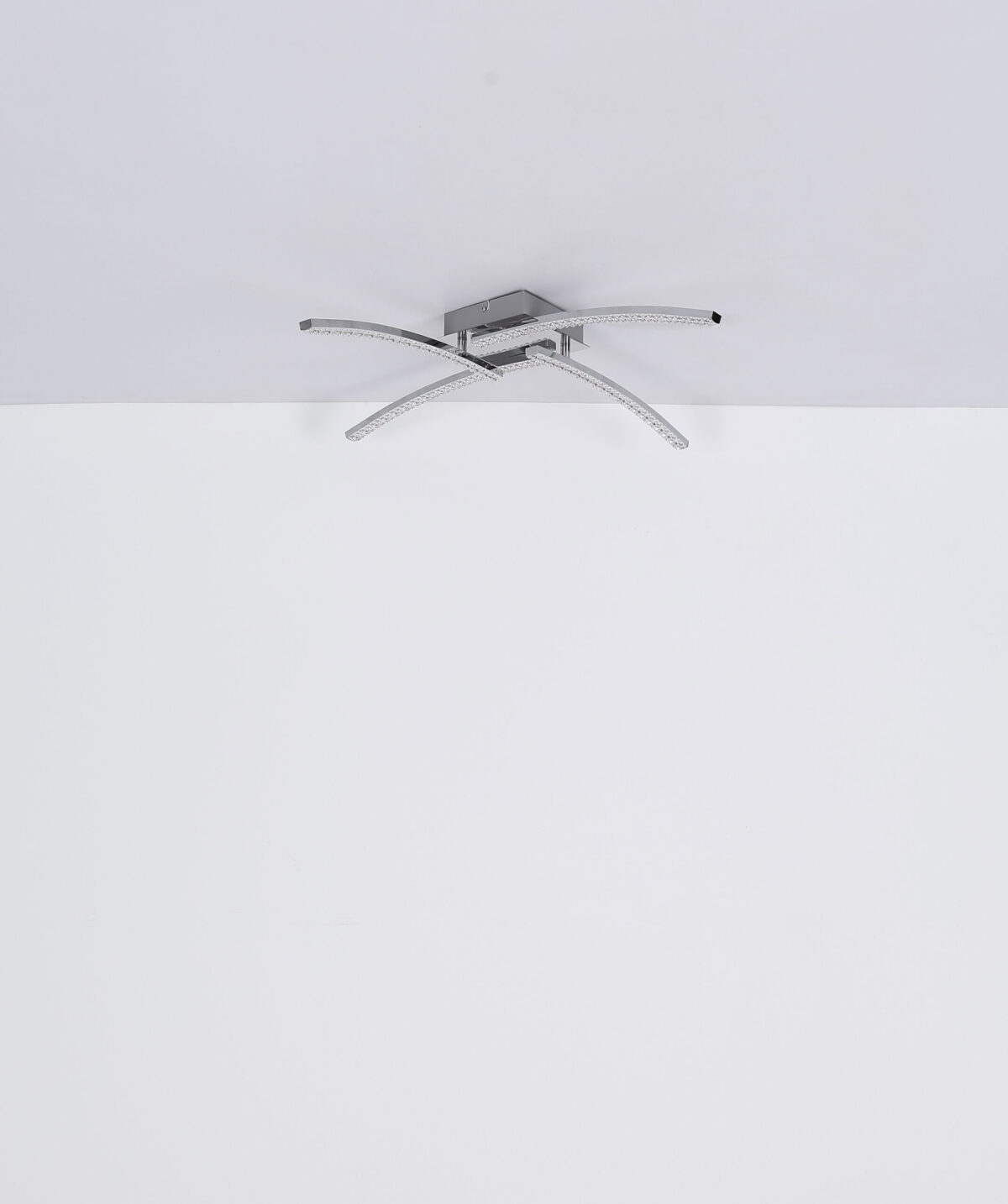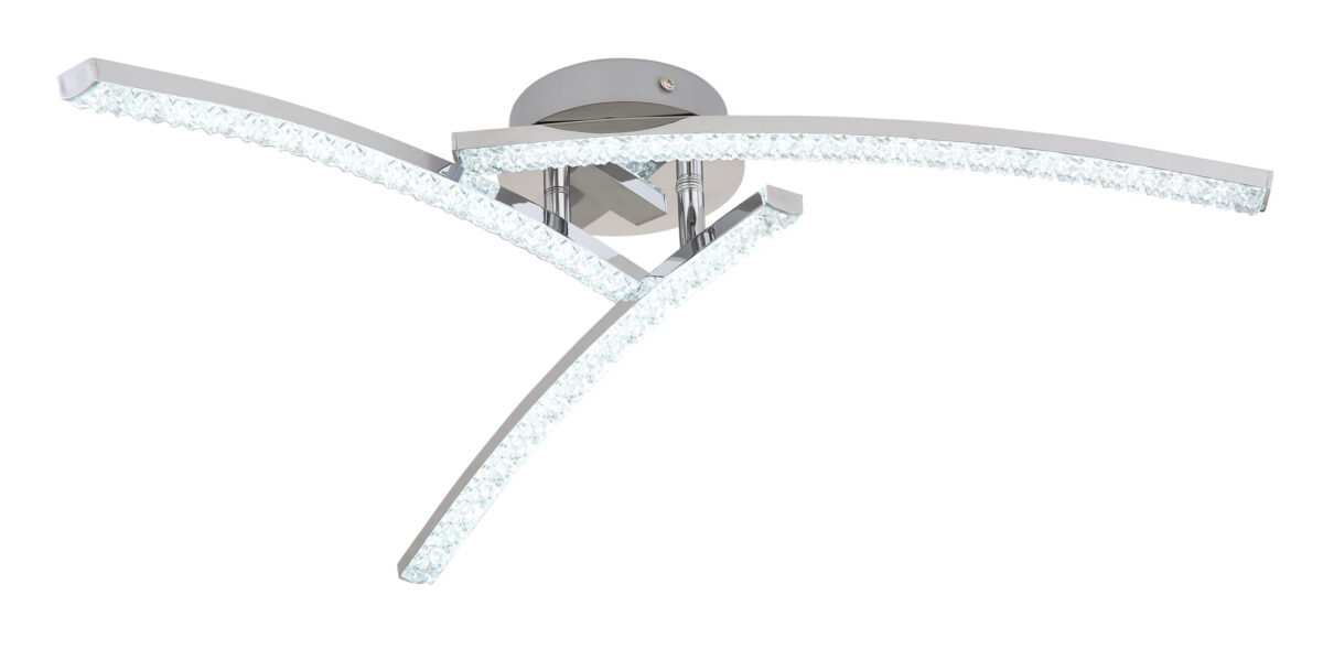 Ova moderna plafonska lampa iz serije Jules (ø 60 cm) uvjerava svojim jednostavnim dizajnom od metala hromirane boje. Sastoji se od tri metalne šipke, koje su pričvršćene preklapajući se na okruglu ploču i opremljene akrilom. Osim toga, metalne šipke imaju prekrasne akrilne kristale. Ispod akrila su uključene LED sijalice koje daju 1100 lumena jakog svetla. Osim toga, boja svjetla može se individualno podesiti u nekoliko nivoa (2700, 4000 i 6000 Kelvina) između tople bijele i hladno bijele. Uz dodatne modele iste serije, možete postaviti stilske akcente u svoj interijer i upotpuniti cjelokupnu sliku.