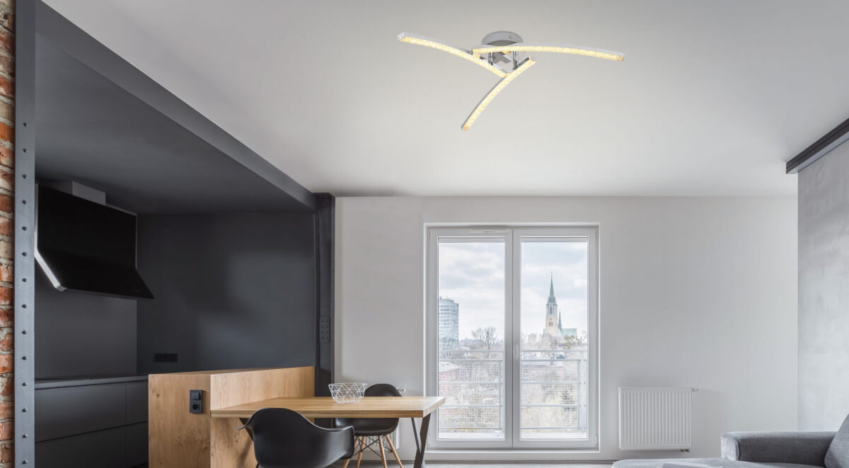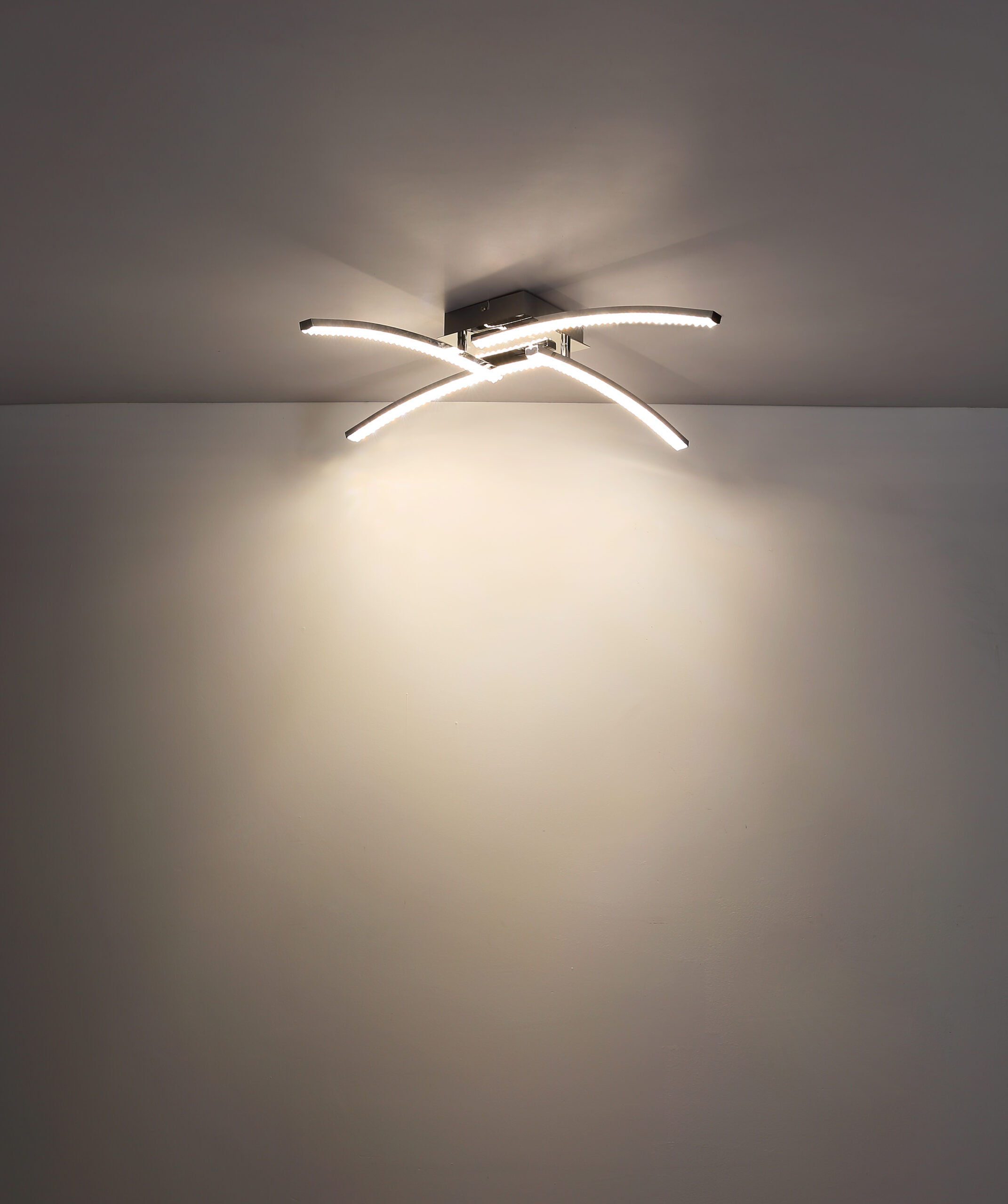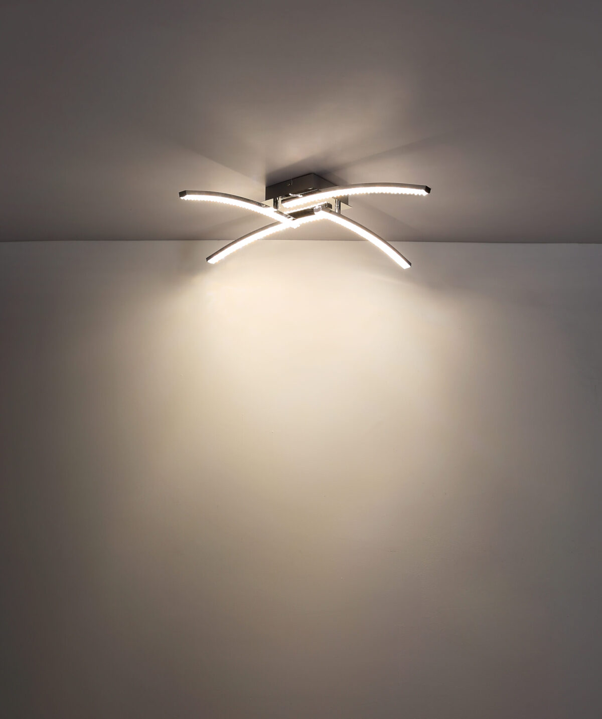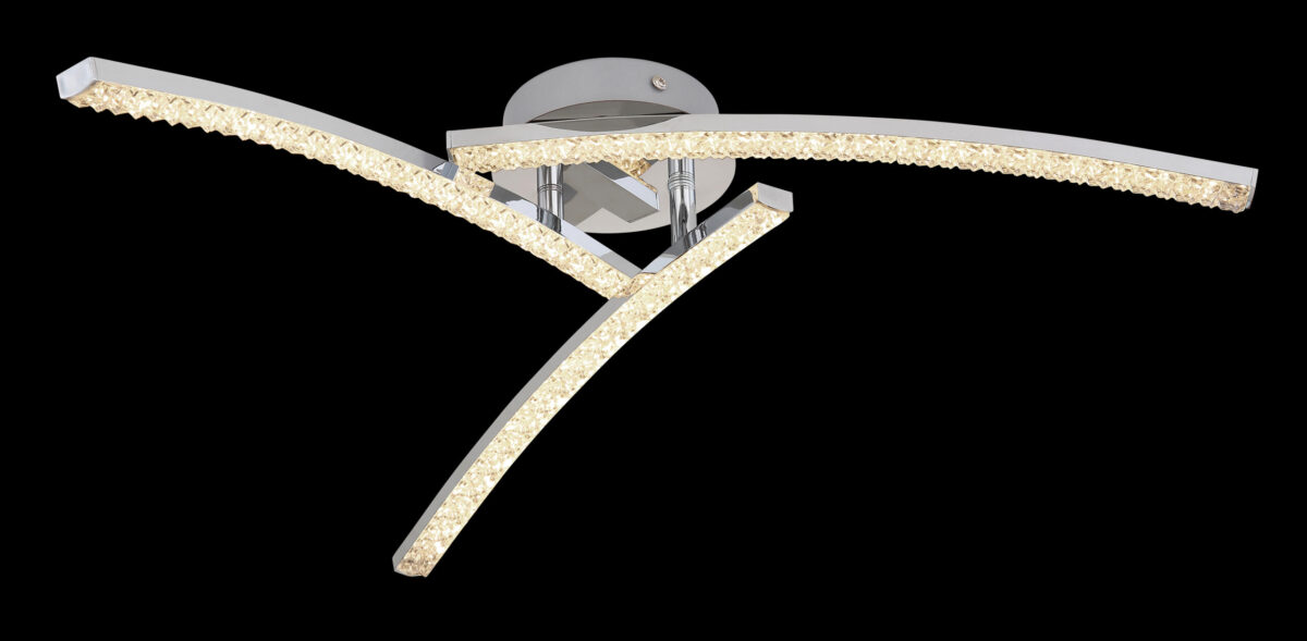 Ova moderna plafonska lampa iz serije Jules (ø 60 cm) uvjerava svojim jednostavnim dizajnom od metala hromirane boje. Sastoji se od tri metalne šipke, koje su pričvršćene preklapajući se na okruglu ploču i opremljene akrilom. Osim toga, metalne šipke imaju prekrasne akrilne kristale. Ispod akrila su uključene LED sijalice koje daju 1100 lumena jakog svetla. Osim toga, boja svjetla može se individualno podesiti u nekoliko nivoa (2700, 4000 i 6000 Kelvina) između tople bijele i hladno bijele. Uz dodatne modele iste serije, možete postaviti stilske akcente u svoj interijer i upotpuniti cjelokupnu sliku.