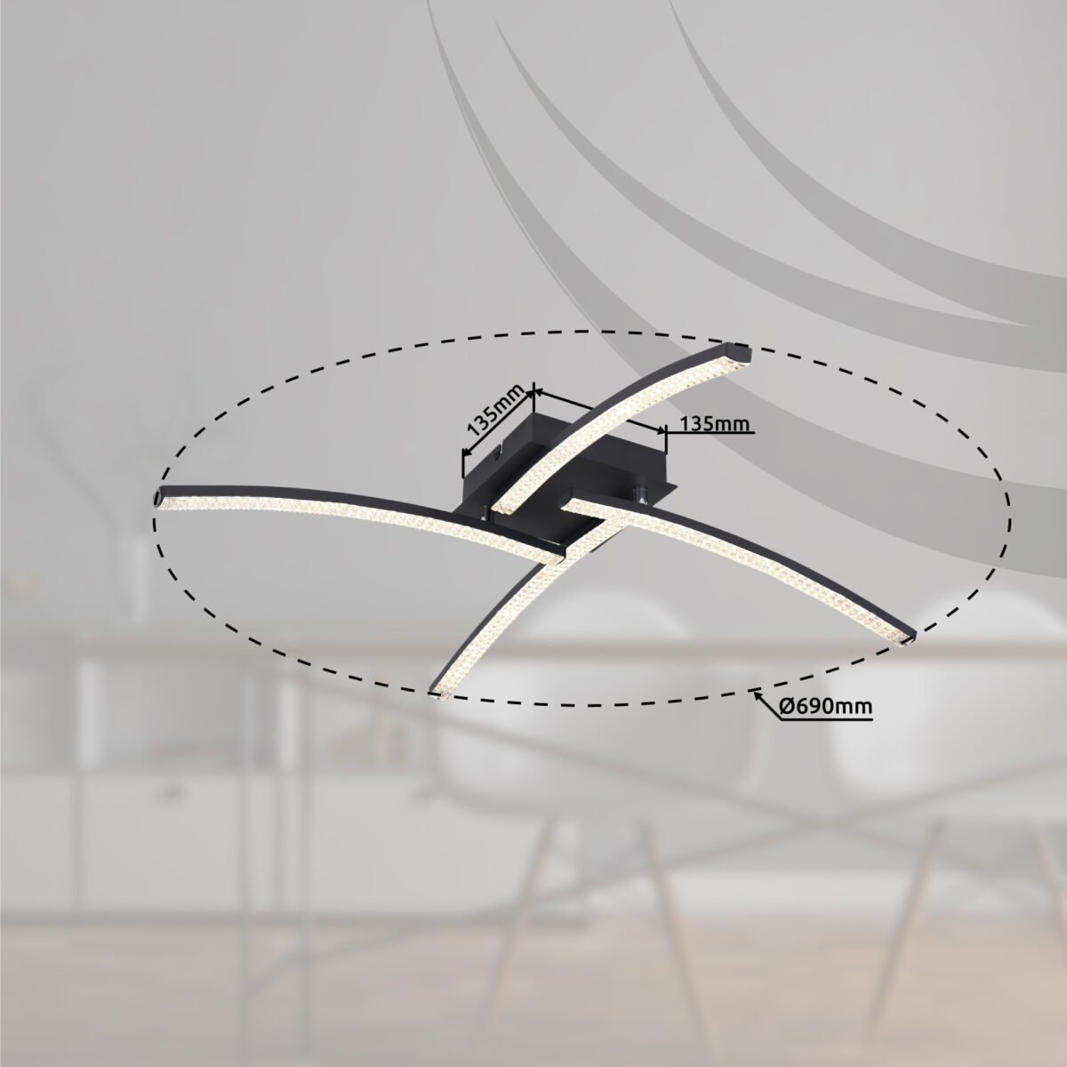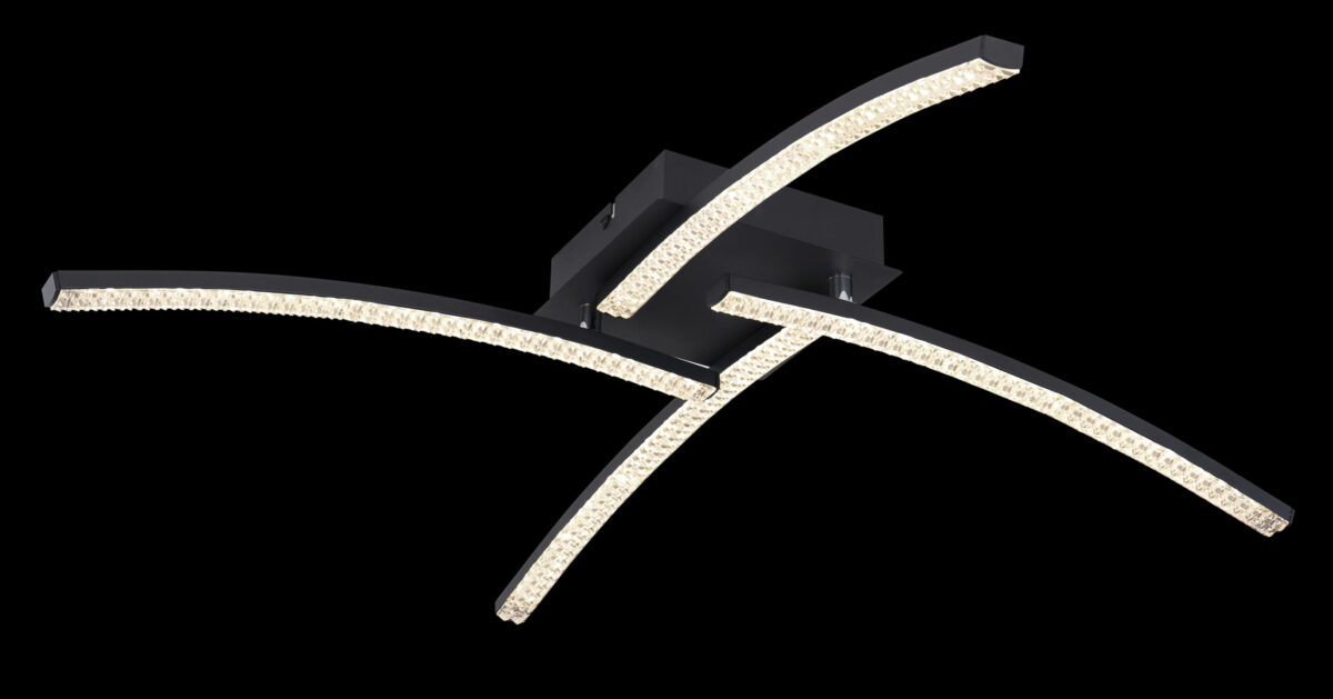 Ova moderna plafonska lampa iz serije Jules (69×69 cm) uvjerava svojim jednostavnim dizajnom od crno-mat metala. Sastoji se od četiri metalne šipke, koje su pričvršćene preklapajući na četvrtastu ploču i opremljene akrilom. Osim toga, metalne šipke imaju prekrasne akrilne kristale. Ispod akrila su uključene LED sijalice koje daju 1700 lumena jakog svetla. Osim toga, boja svjetla može se individualno podesiti u nekoliko nivoa (2700, 4000 i 6000 Kelvina) između tople bijele i hladno bijele. Uz dodatne modele iste serije, možete postaviti stilske akcente u svoj interijer i upotpuniti cjelokupnu sliku.