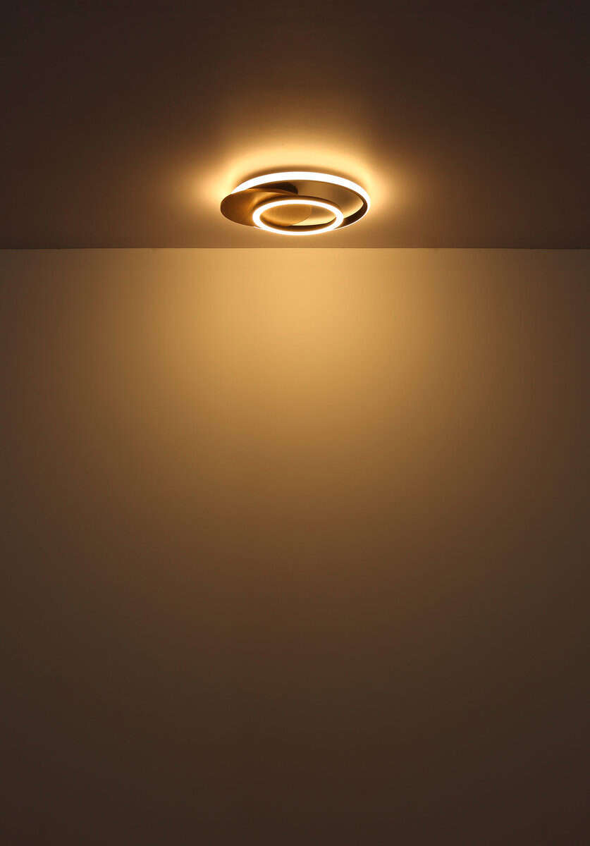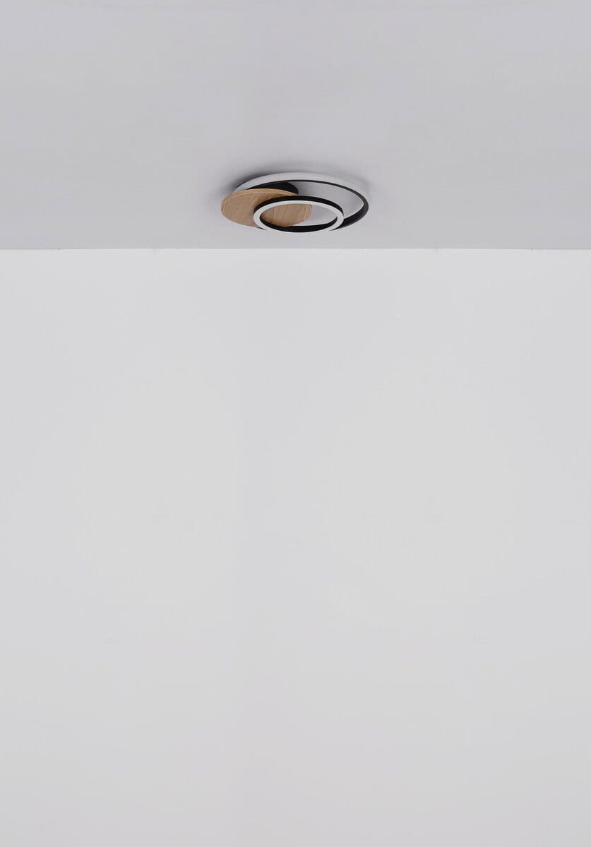 Otkrijte JULIO plafonsku lampu, inovativno rešenje za vašu sobu. Okrugli oblik ove lampe na vrhu je sa tri prstena koji se skladno uklapaju u oblik sjenila. Tijelo je izrađeno od MDF-a (vlaknasta ploča srednje gustine) sa drveno optičkom površinom u tamnoj boji. Sjenilo je izrađeno od plastike u crno-mat laku i obloženo je opal akrilnom oblogom. Svetiljka nudi toplo belo osvetljenje sa temperaturom boje od 3000 K, što je idealno za uređenje dnevnih soba, spavaćih soba i kancelarija. Njegove fleksibilne mogućnosti ugradnje i moderan dizajn čine ovu svjetiljku idealnom za osvjetljavanje prostorija u kojima se želi moderan i elegantno jednostavan izgled.