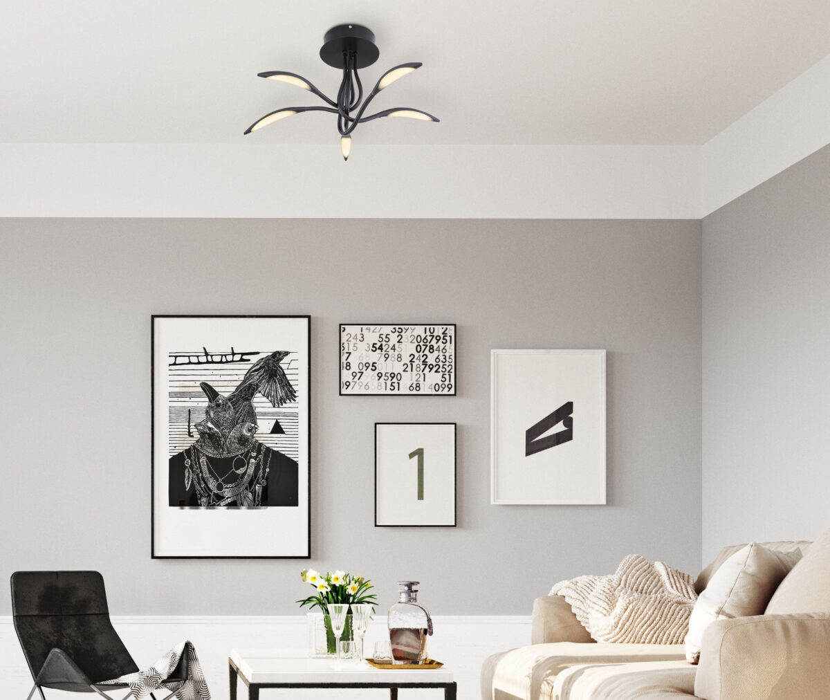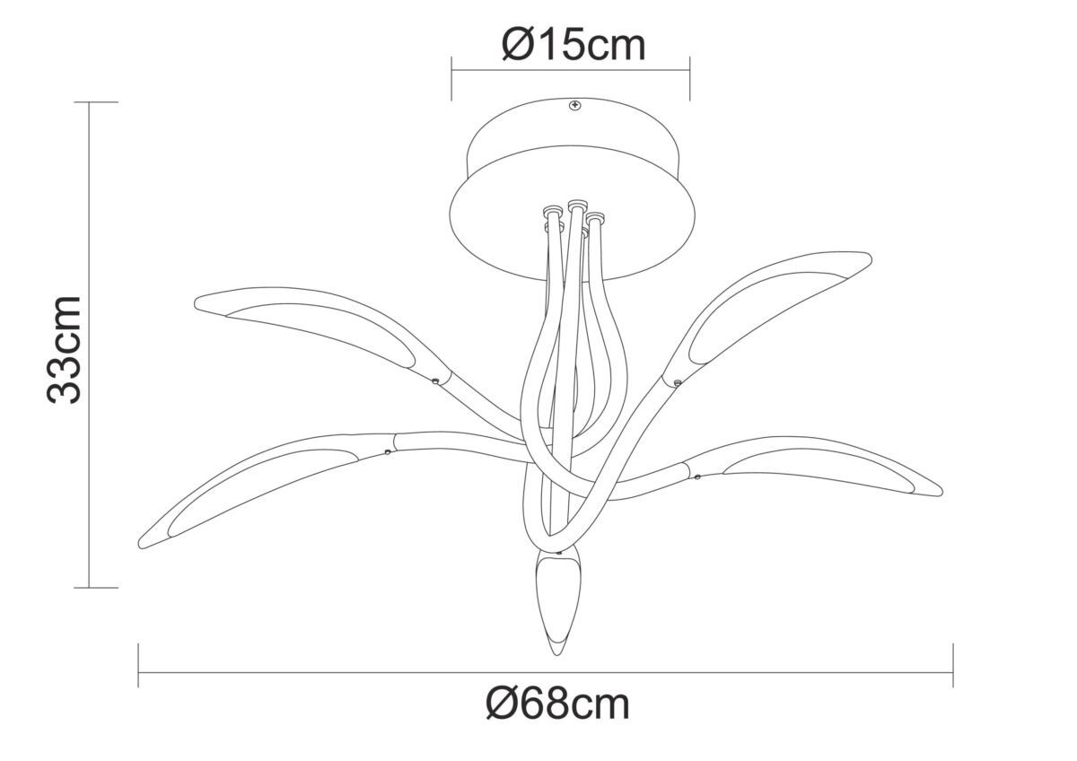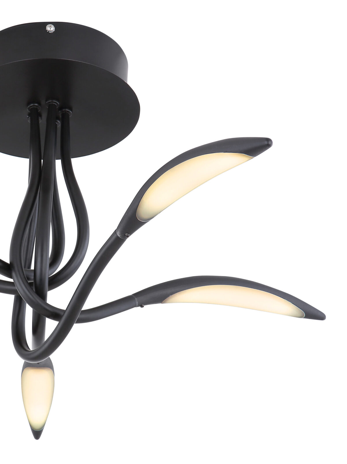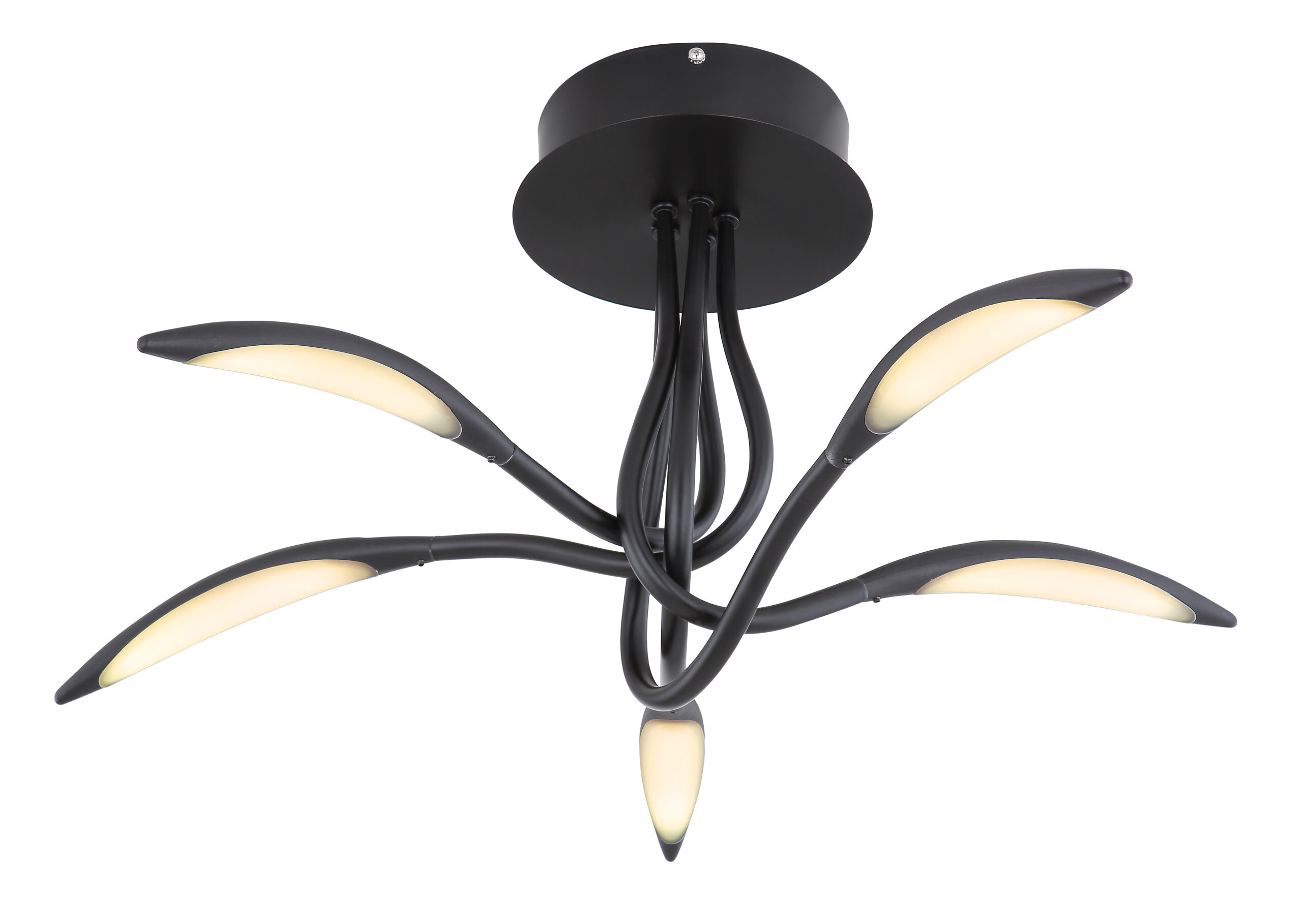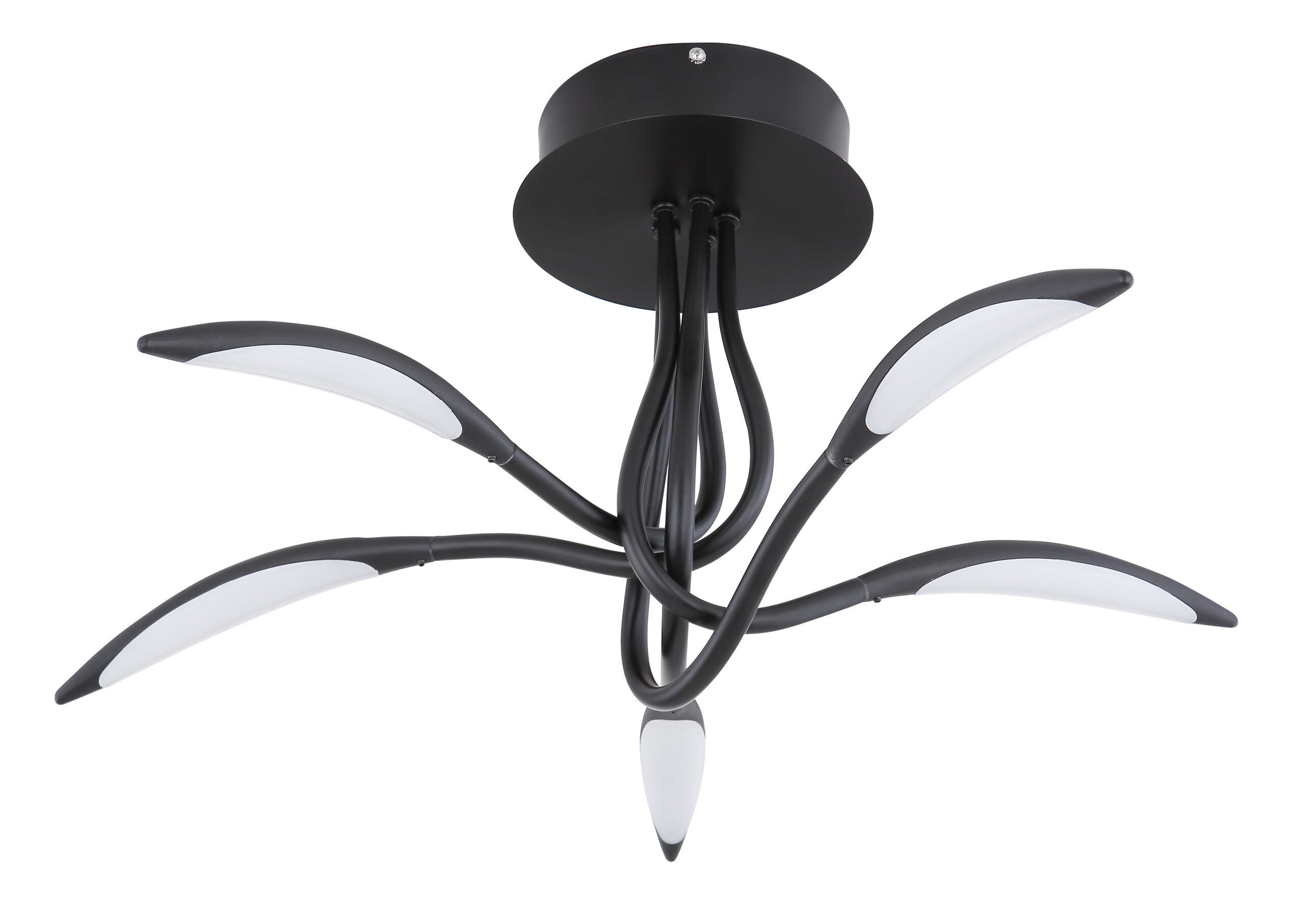 Ova elegantna plafonska lampa iz serije Kaela (ø 68 cm) impresionira svojim neobičnim dizajnom od crno-mat metala i opal akrila. Pet predivno zakrivljenih metalnih šipki na krajevima ima opalni akril, koji pokriva uključene LED sijalice. Pored toga, plafonska lampa obezbeđuje 940 lumena jakog svetla sa stilizovanom bojom svetla od 3000 Kelvina (toplo belo). Uz više artikala iz serije Kaela, možete upotpuniti cjelokupnu sliku vašeg interijera i pružiti atmosferski ambijent.