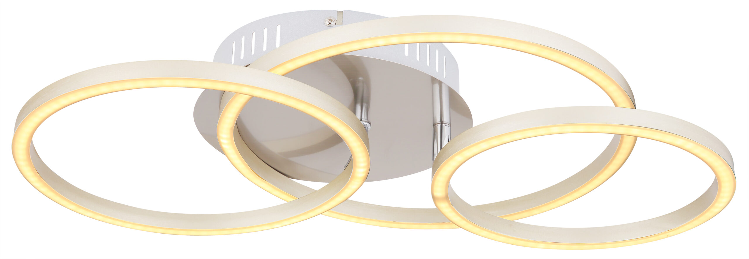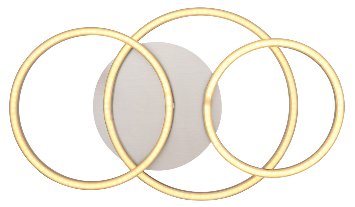 Za vaš dom koji oduzima dah: nikl mat LED plafonska lampa (Ø prstenova: 30cm, 25cm i 20.5cm) privlači pažnju svih svojim modernim, impozantnim dizajnom. Njegov zakrivljeni oblik čini stvarnu privlačnost za oči. Moderna plafonska lampa se isporučuje sa tri trajno ugrađene LED lampe. Zahvaljujući korištenoj LED tehnologiji, svjetiljka izuzetno štedi energiju i uvjerava malom proizvodnjom topline i dugim vijekom trajanja. Stvorite istinsku privlačnost u svoja četiri zida uz LED plafonsko svjetlo!