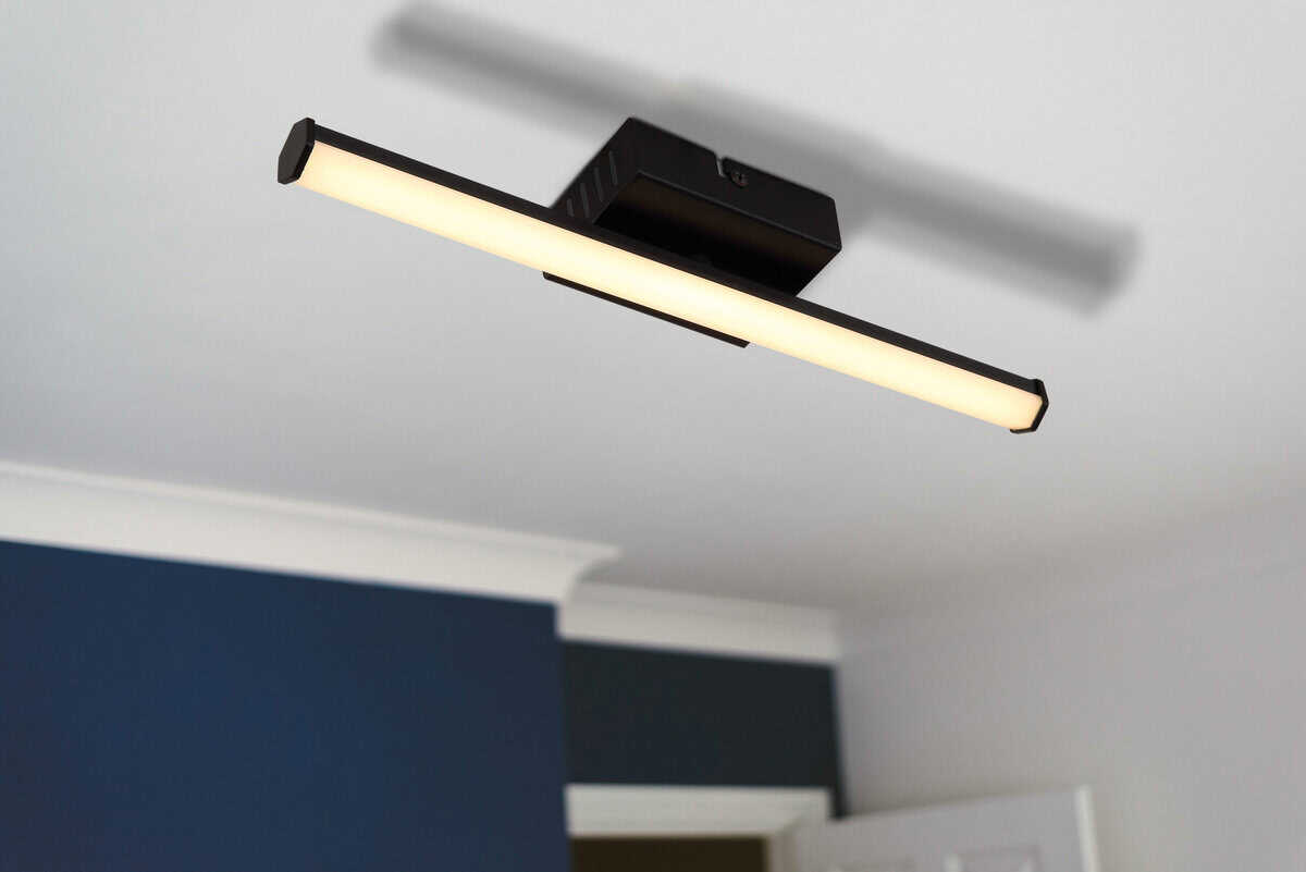 Plafonska lampa KIRINA impresionira svojim tankim, izduženim dizajnom i nudi elegantno rešenje za moderne prostore. Opremljena jednim šestougaonim profilom koji se može okretati, ova svjetiljka omogućava ciljano i fleksibilno poravnavanje svjetla. Tijelo od crne, mat plastike i sjenilo od crne i opal plastike osiguravaju moderan izgled i ravnomjernu raspodjelu svjetlosti. Sa dužinom od 342 mm i širinom od 70 mm, KIRINA plafonska lampa je idealna za male i srednje prostorije kao što su hodnici, spavaće sobe ili radni prostori. LED tehnologija daje jačinu lumena od 540 i temperaturu boje od 3000 K, stvarajući toplu, privlačnu atmosferu. Moderan dizajn i visoka funkcionalnost čine KIRINA savršenim izborom za elegantno i efikasno rasvjetno rješenje u vašem domu.