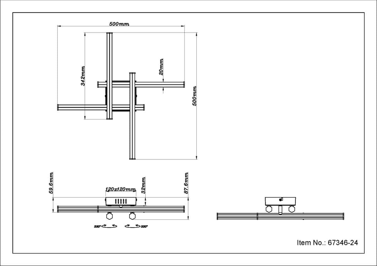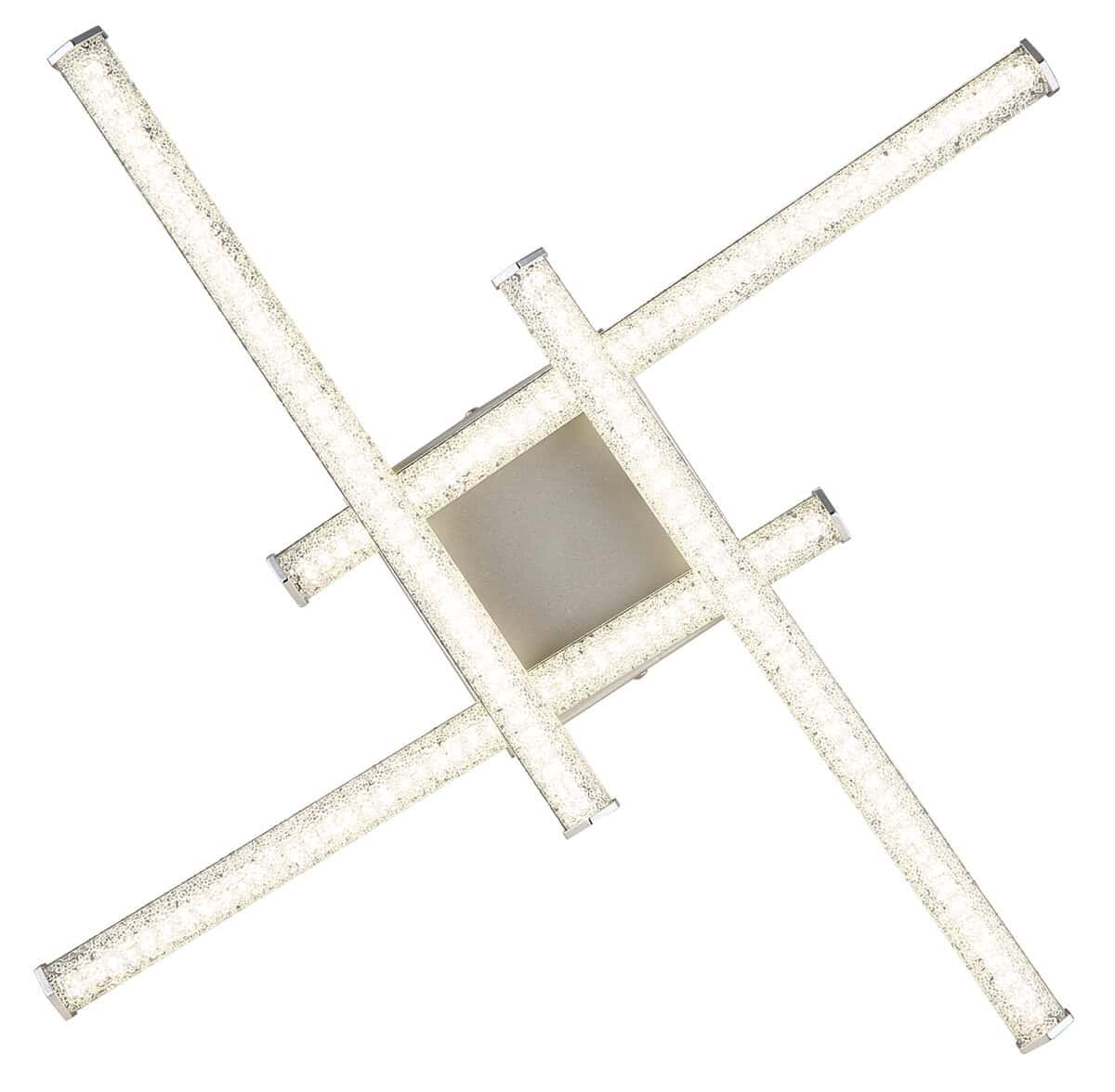 Plafonska lampa Kirina nudi moderan, kvadratni dizajn sa četiri rotirajuća šesterokutna profila. Kućište od nikl-mat plastike i hroma, kao i sjenilo od prozirne plastike i plastičnih kristala daju elegantno osvjetljenje. Sa svjetlosnom snagom od 1840 lumena i bojom svjetla od 4000 K, ova svjetiljka pruža jako i ujednačeno osvjetljenje. Savršeno za moderne prostore u potrazi za elegantnim i efektnim rasvjetnim rješenjem.