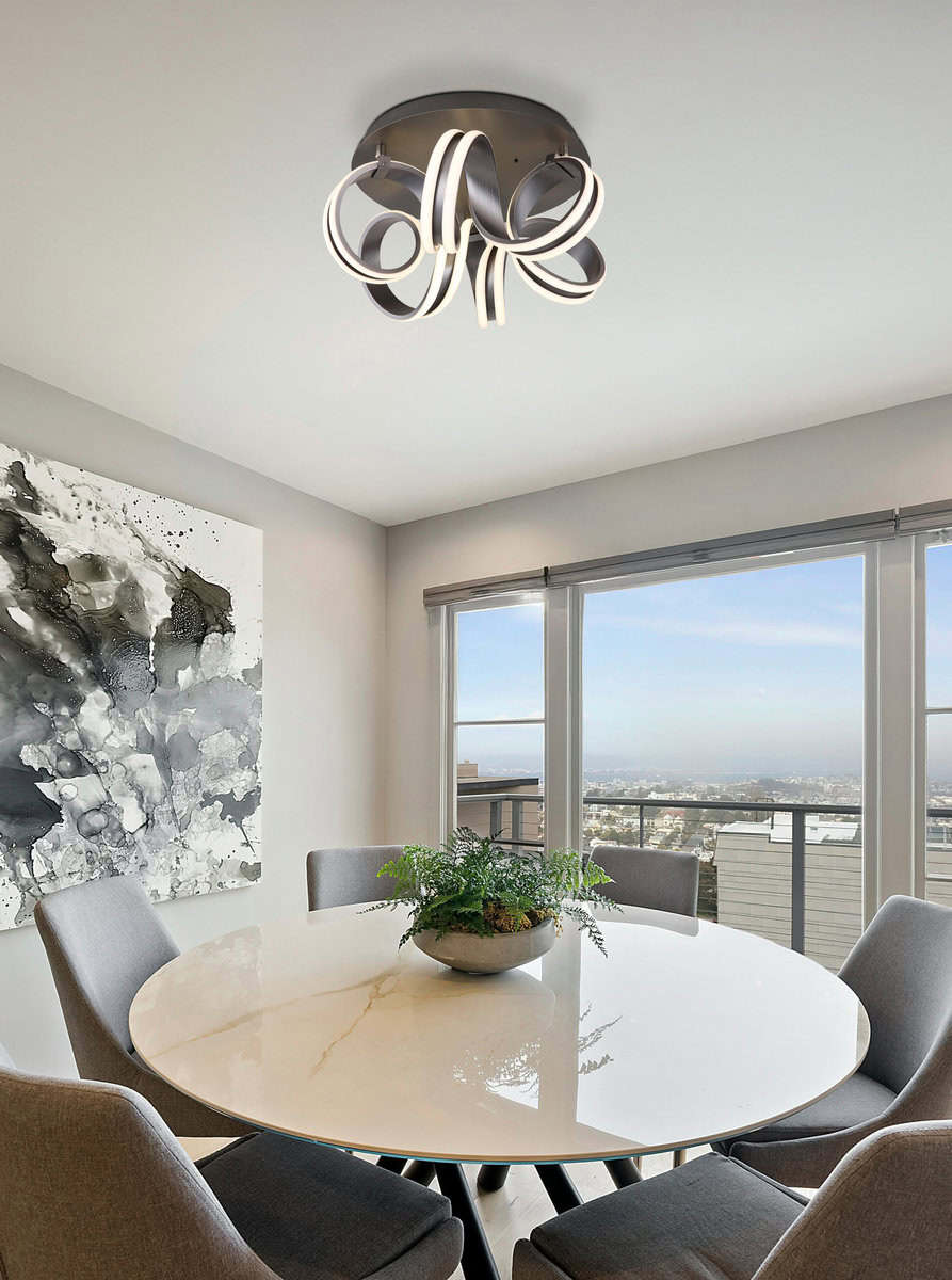 KUNI plafonska lampa kombinuje moderan dizajn sa impresivnom funkcionalnošću. Svojim okruglim, elegantnim dizajnom i elegantnim mašnama dodaje poseban štih svakoj prostoriji. Tamno sivo metalno kućište savršeno se uklapa u sivu aluminijsku nijansu i opal plastiku, koja osigurava ravnomjernu distribuciju svjetlosti. KUNI plafonska lampa je opremljena snažnom LED diodom koja daje lumenski izlaz od 1350 i omogućava fleksibilnu temperaturu boje od 2700 K do 6500 K. Zahvaljujući integriranom daljinskom upravljaču, možete kontinuirano prigušivati svjetlinu i fiksirati boje po želji . Funkcija praktične memorije pamti vaše željene postavke, dok noćno svjetlo pruža blago osvjetljenje noću. Sa prečnikom od 460 mm, KUNI se savršeno uklapa u širok spektar prostorija i pruža elegantnu i individualnu atmosferu osvetljenja.