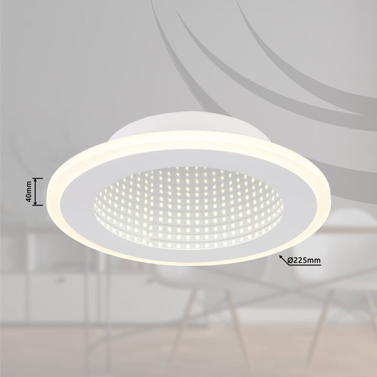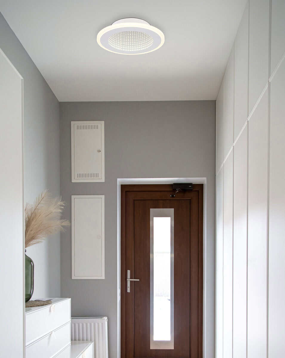 Okrugla plafonska lampa LAMELA nije samo funkcionalan izvor svetlosti, već i prava privlačnost u vašoj sobi. Svojim 3D efektom tunela stvara fascinantnu atmosferu i pruža moderan ambijent. Tijelo lampe je izrađeno od mat bijelog metala, što joj daje bezvremensku eleganciju. Kišobran je napravljen od zrcalne plastike i tako stvara impresivan 3D efekat tunela. Ovaj efekat plafonskoj lampi daje izuzetnu karizmu i čini je pravim privlačnim za oči. Plafonska lampa LAMELA ima prečnik od 225 mm i proizvodi jačinu lumena od 750. Svetlo ima neutralnu temperaturu boje od 4000K, što stvara udobno i svetlo osvetljenje. Sjenilo lampe je napravljeno od opal akrila, koji osigurava ravnomjernu raspodjelu svjetlosti bez odsjaja. Sa plafonskom lampom LAMELA oslanjate se na moderan i fascinantan element dizajna. Stvorite jedinstvenu atmosferu sa impresivnim 3D efektom tunela i uživajte u jasnom i ugodnom osvjetljenju u svojoj sobi.