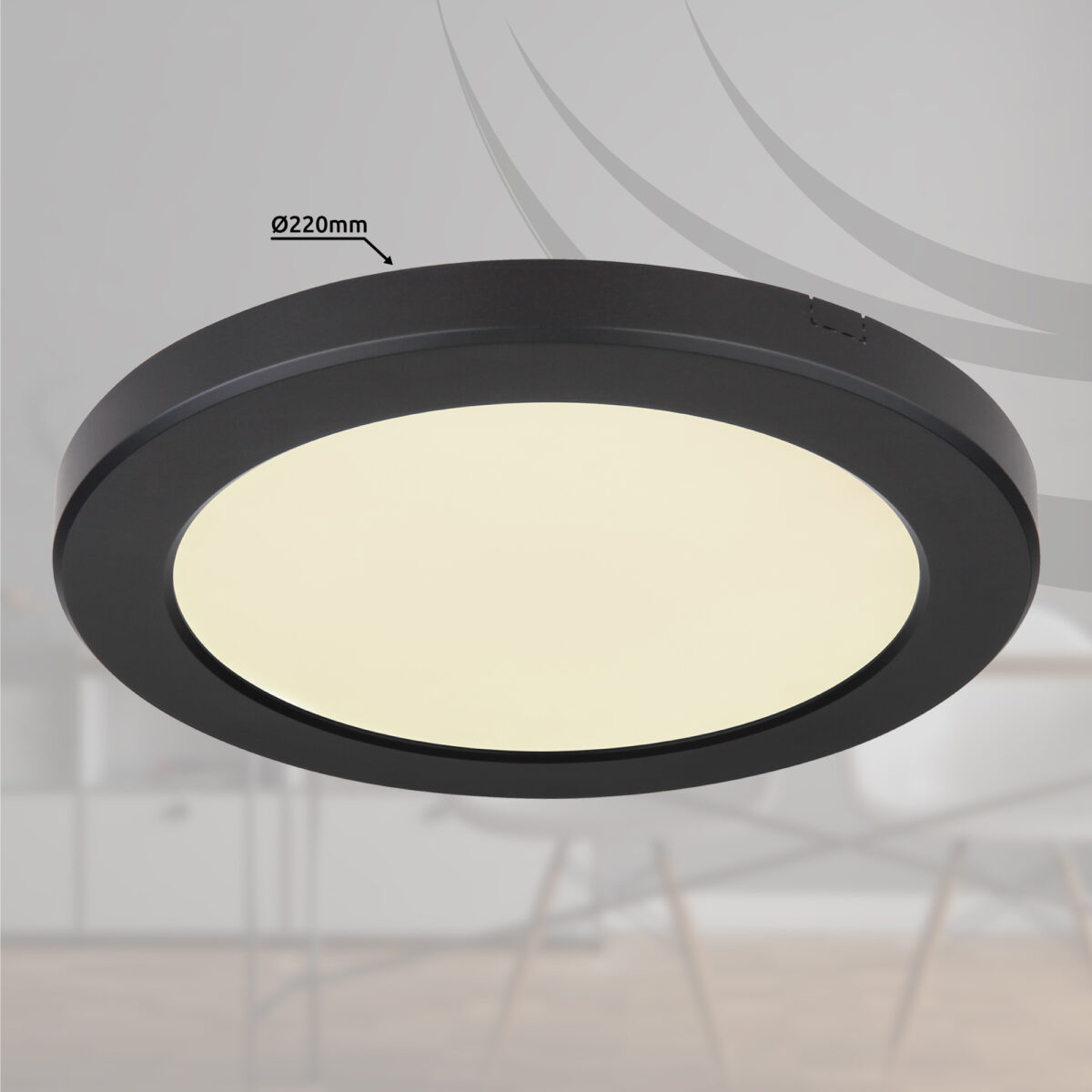 Ako tražite prvoklasnu i jednostavnu plafonsku lampu, naći ćete je u ovoj crnoj LED lampi. Njihov izgled je diskretan i jednostavan i stoga zaista može uprizoriti prostoriju u vašem domu. Svetiljka je prečnika 22 cm i ima integrisanu LED sijalicu od 18W. LED plafonska lampa daje ukupno 1500 lumena jakog svetla. Osim toga, boja svjetla se može fiksirati u tri faze po želji. (Topla bela 3000K – neutralna bela 4000K – hladna bela 6500K). Zahvaljujući maloj potrošnji energije, ova LED lampa štedi energiju, a samim tim i vrlo ekološki prihvatljiva.