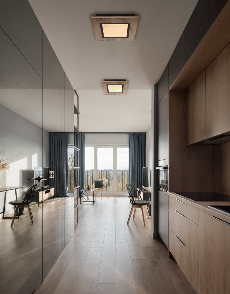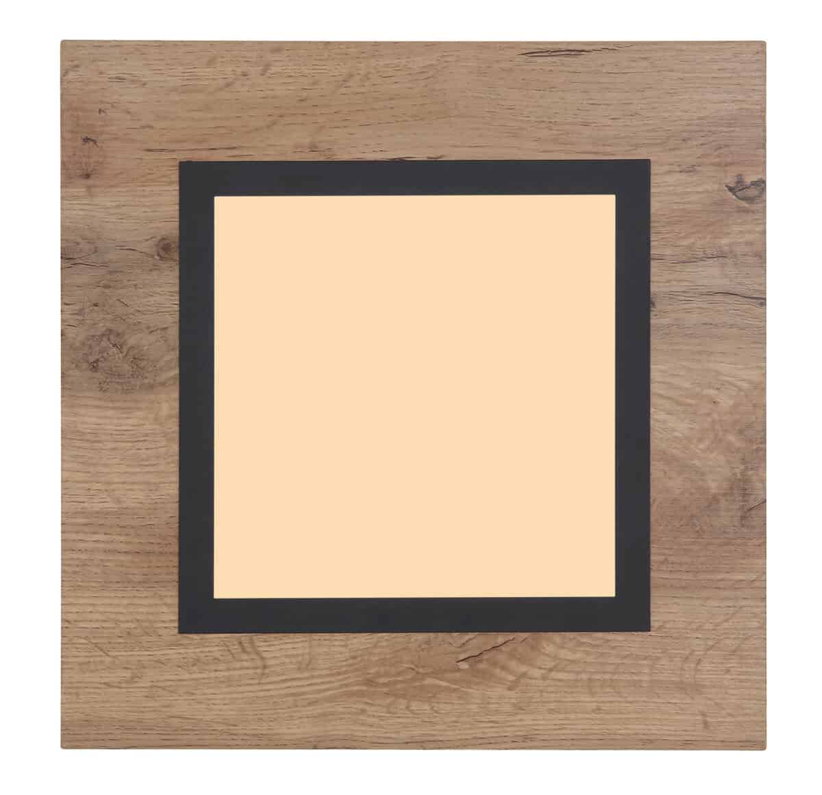 Oblikovana plafonska lampa serije LEA inspiriše svojim jednostavnim dizajnom. Na crnom mat plafonskom dodatku nalazi se kvadratni MDF okvir u izgledu drveta (30 x 30 cm) sa plastičnim poklopcem od opal. Uključeni LED panel pruža toplo bijelo svjetlo od 3000 Kelvina i na taj način osigurava ugodnu atmosferu.