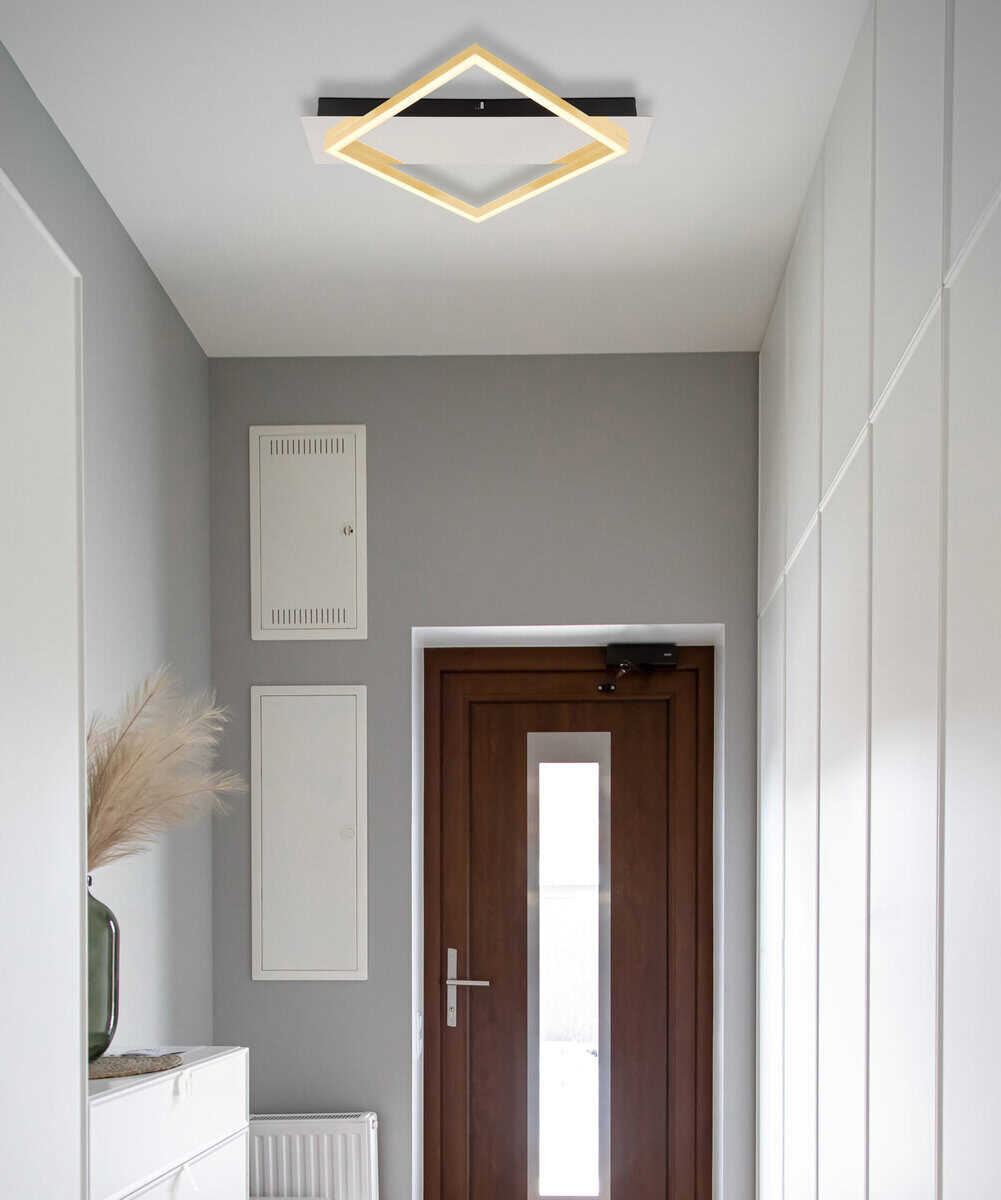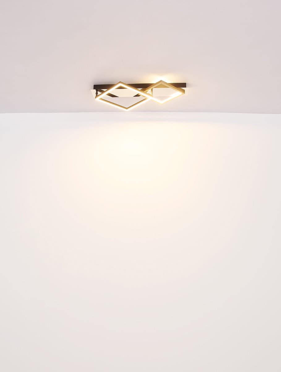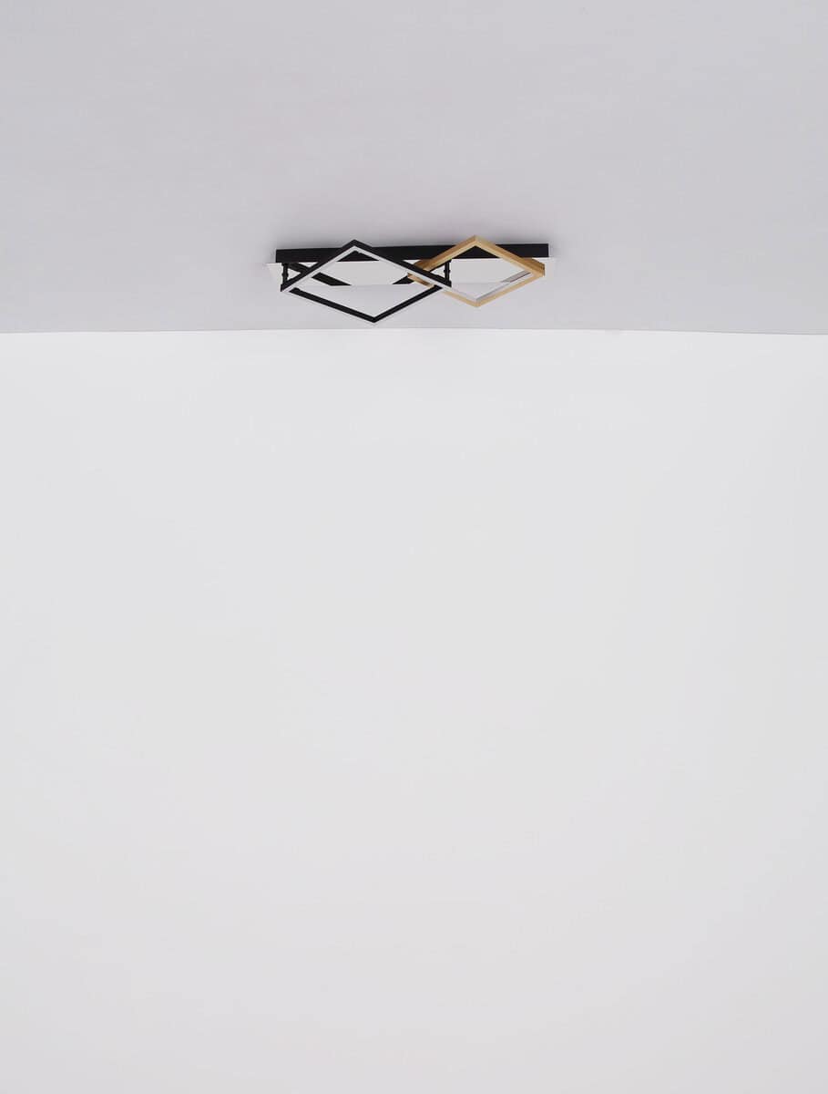 Plafonska lampa je izrađena od hromiranog metala, crnog mat lakiranog metala, brušenog aluminijuma u boji zlata i opal plastike. Dimenzije su 395x350x50mm. Svetiljka je opremljena LED modulom snage 12W i naponom od 230V. Ima svjetlosnu snagu od 1350lm i svjetlosnu efikasnost od 550lm sa temperaturom boje od 3000K. Ova plafonska lampa je prava privlačnost za oči i biće vrhunac u svakoj prostoriji. Sa svojim modernim dizajnom i visokokvalitetnom izradom, pravi je dragulj. Uvjerite se sami!