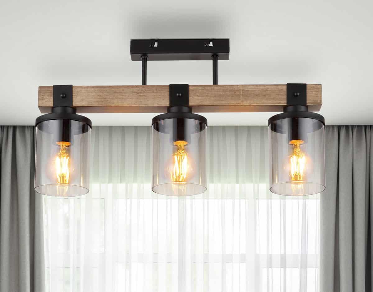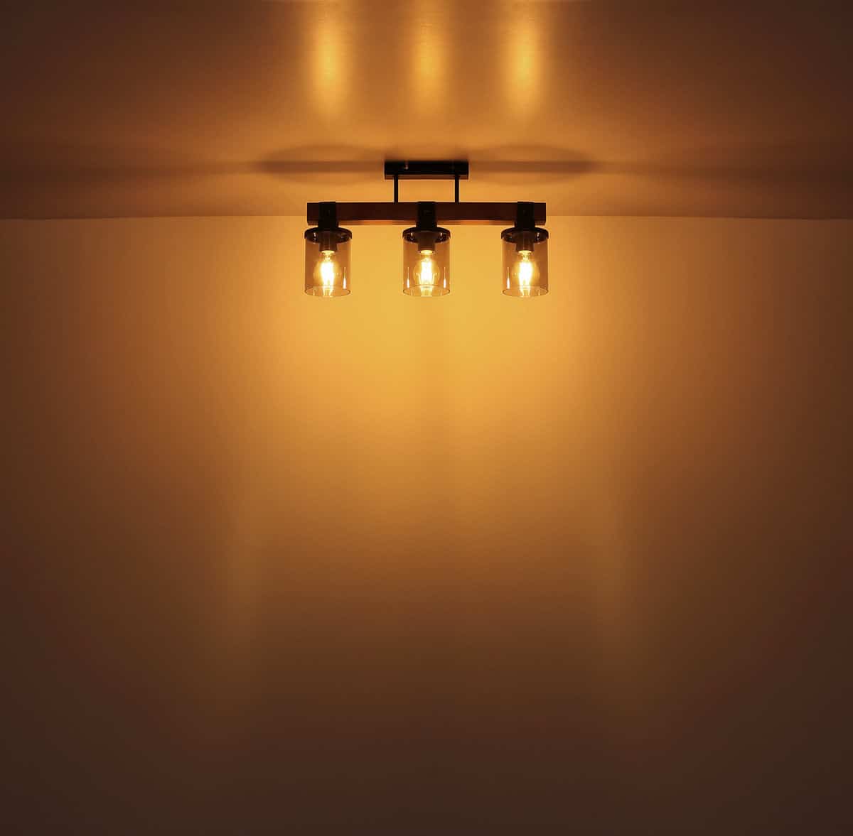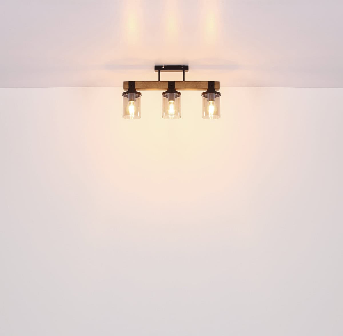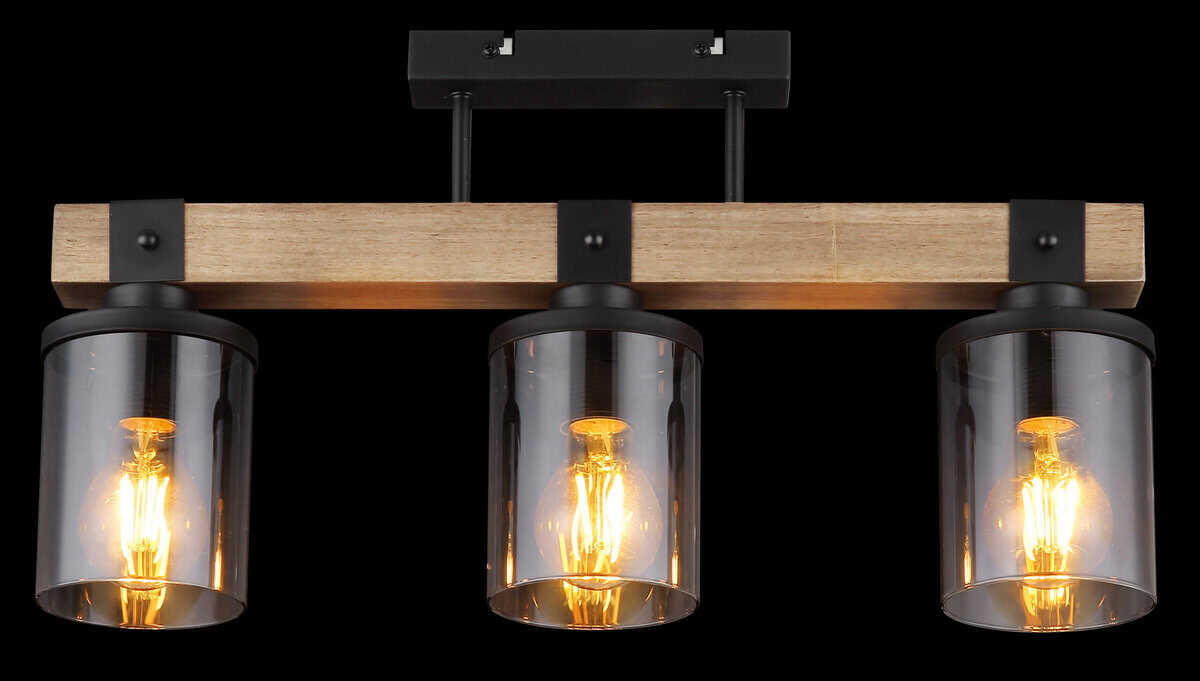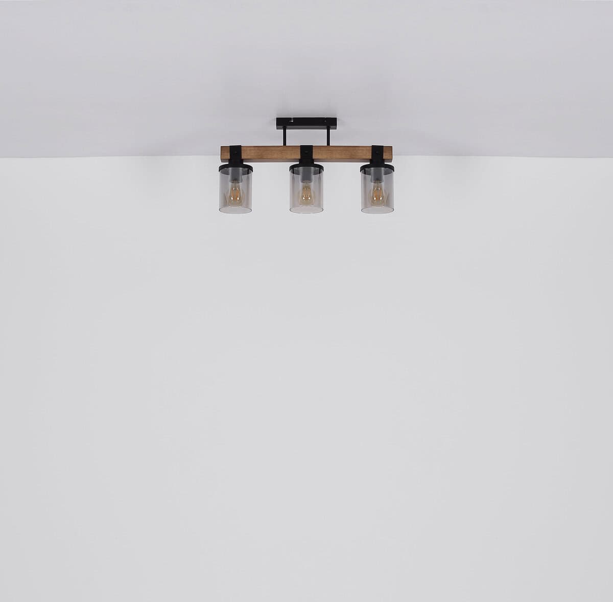 Ova predivna plafonska lampa inspiriše sjajnim dizajnom. Dvije crne metalne šipke izlaze iz uskog plafonskog priključka i formiraju 52 cm dugo drveno deblo. Na drvenom okviru nalaze se tri E27 utičnice, svaka sa sjenilom u boji dima (Ø10cm) u obliku cilindra. Zahvaljujući slobodnom izboru izvora svjetlosti, možete sami odrediti boju svjetla ili svjetlinu do maksimalne snage od 60 vati. Postavite nove akcente u svoje prostorije.