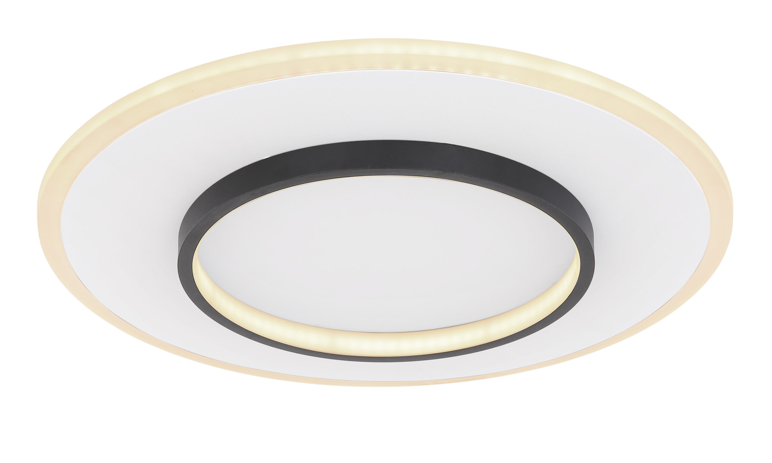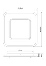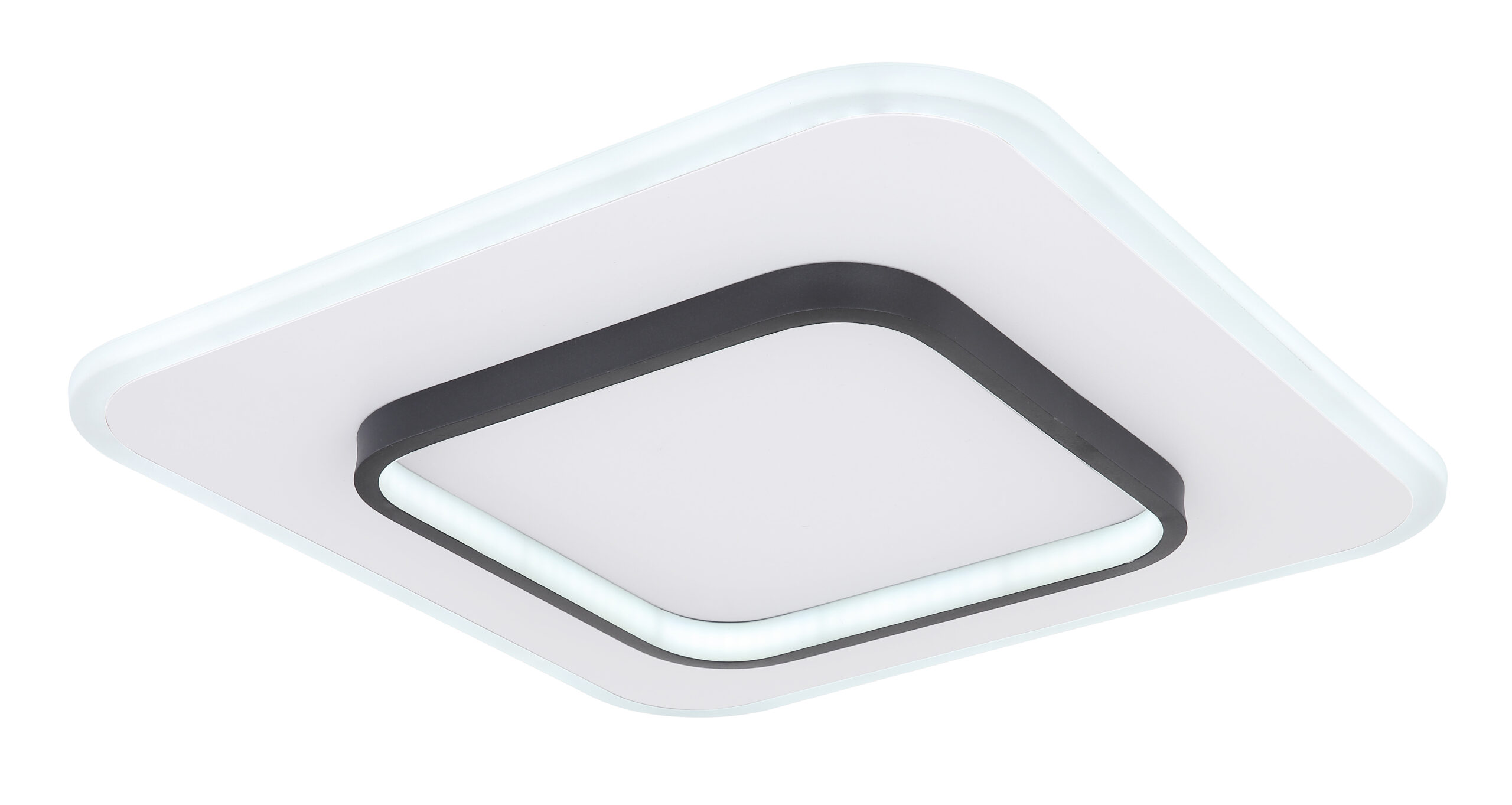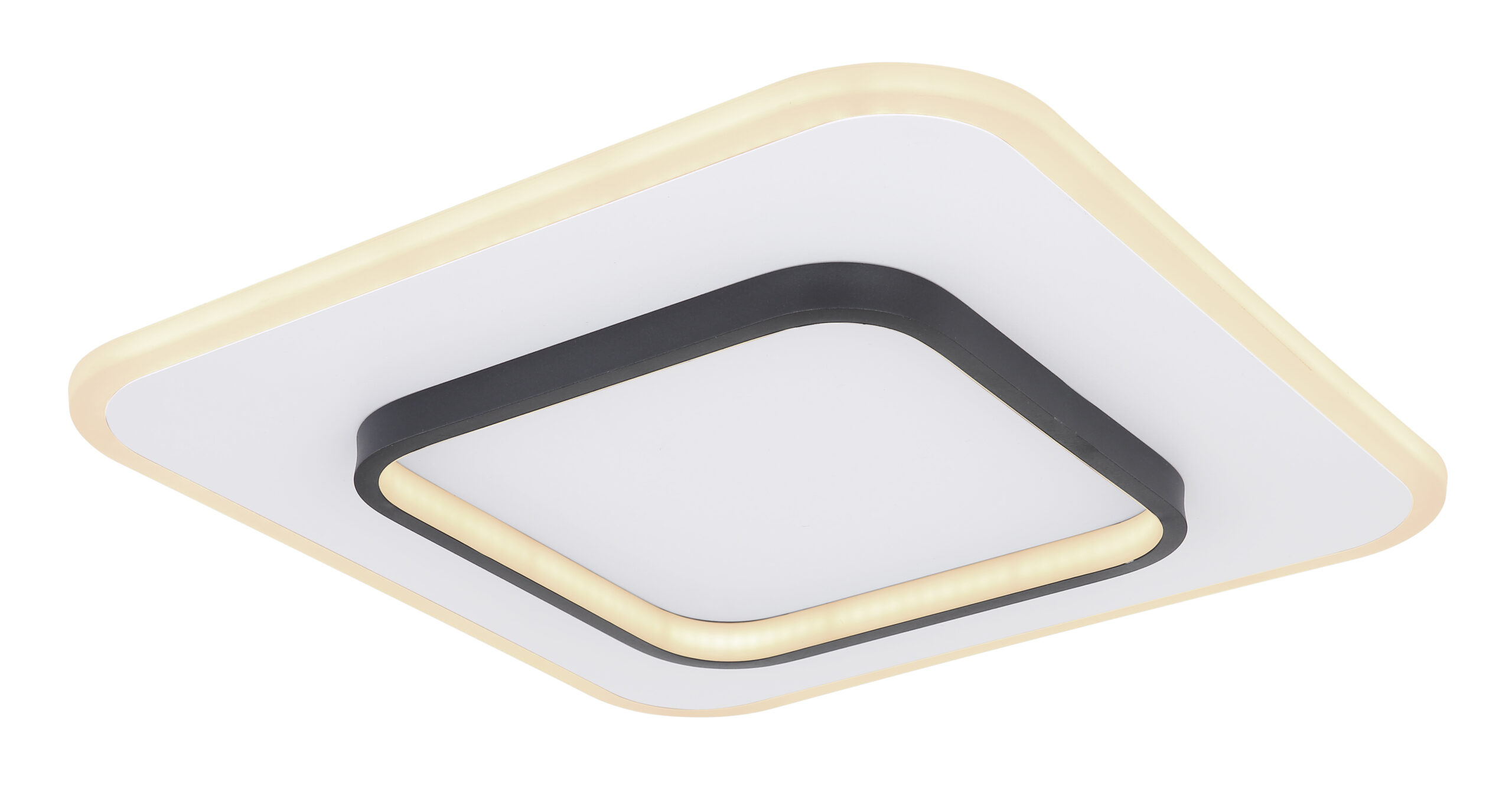Ova kvadratna plafonska lampa iz serije Lima (45,8×45,8 cm) uvjerava svojim jednostavnim dizajnom od bijelog metala i opalnog akrila. Četvrtasti crni prsten u sredini plafonske lampe je još jedna karakteristika, koja ga čini predivnim za kombinovanje. LED sijalice pružaju 2500 lumena jakog svjetla. Osim toga, priloženi daljinski upravljač ne nudi samo mogućnost da prigušite svjetlo, već i da prilagodite boju svjetla u nekoliko koraka između tople bijele (3000 Kelvina) i hladno bijele (6000 Kelvina) prema vašim željama. Sa ovom plafonskom lampom možete stvoriti moderan ambijent u svom enterijeru.