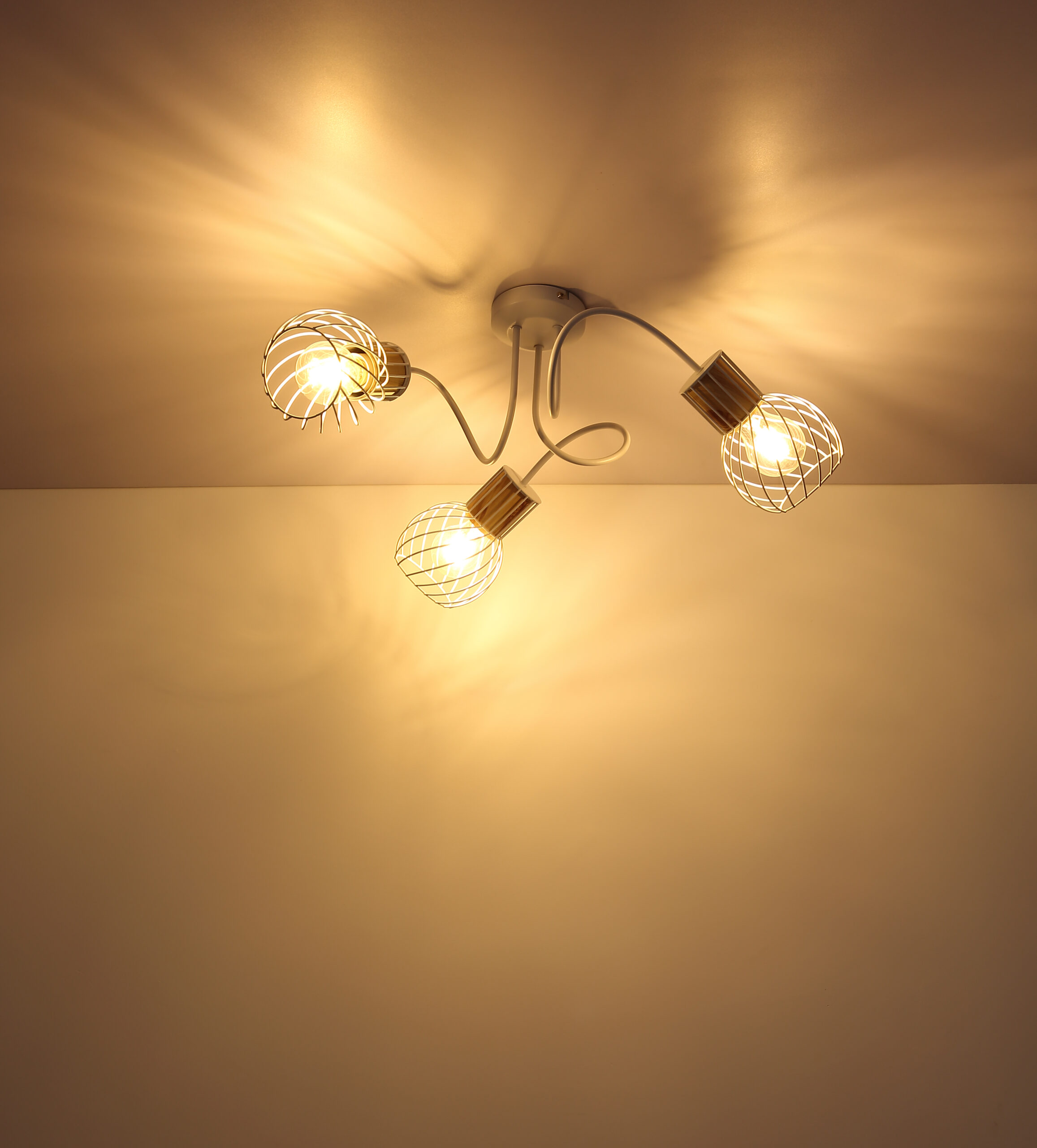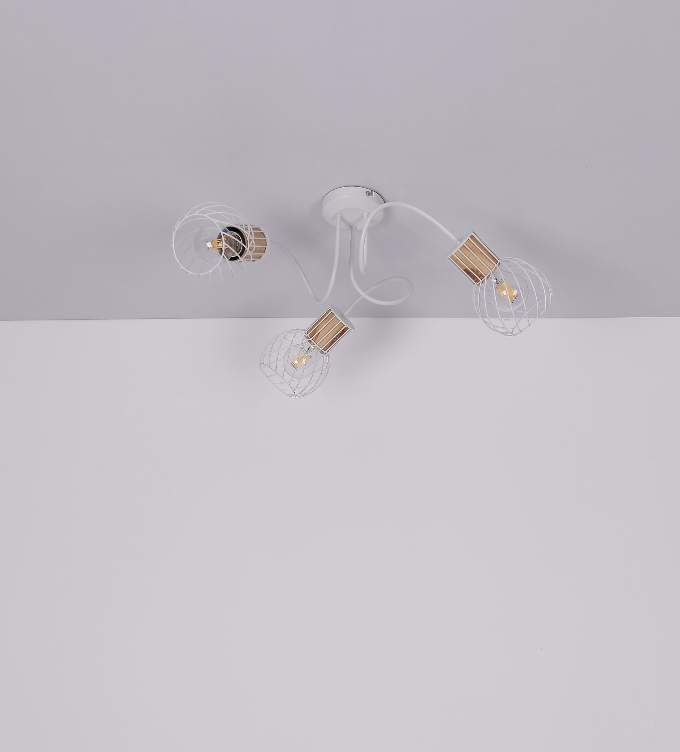 Reflektor (Ø60cm) serije Luise impresionira kombinacijom modernih elemenata i retro izgleda. Artikal je očuvan u bijelom i drvenom izgledu, a nijansa se sastoji od zakrivljene žičane mreže. 3 ugrađena E27 grla su dizajnirana do maksimalno 40W i omogućavaju i sijalice sa mogućnošću zatamnjivanja i bez zatamnjivanja, kao i zamjenu sijalica.
