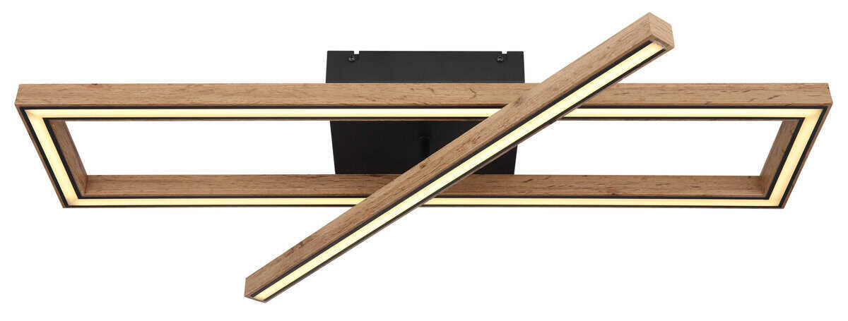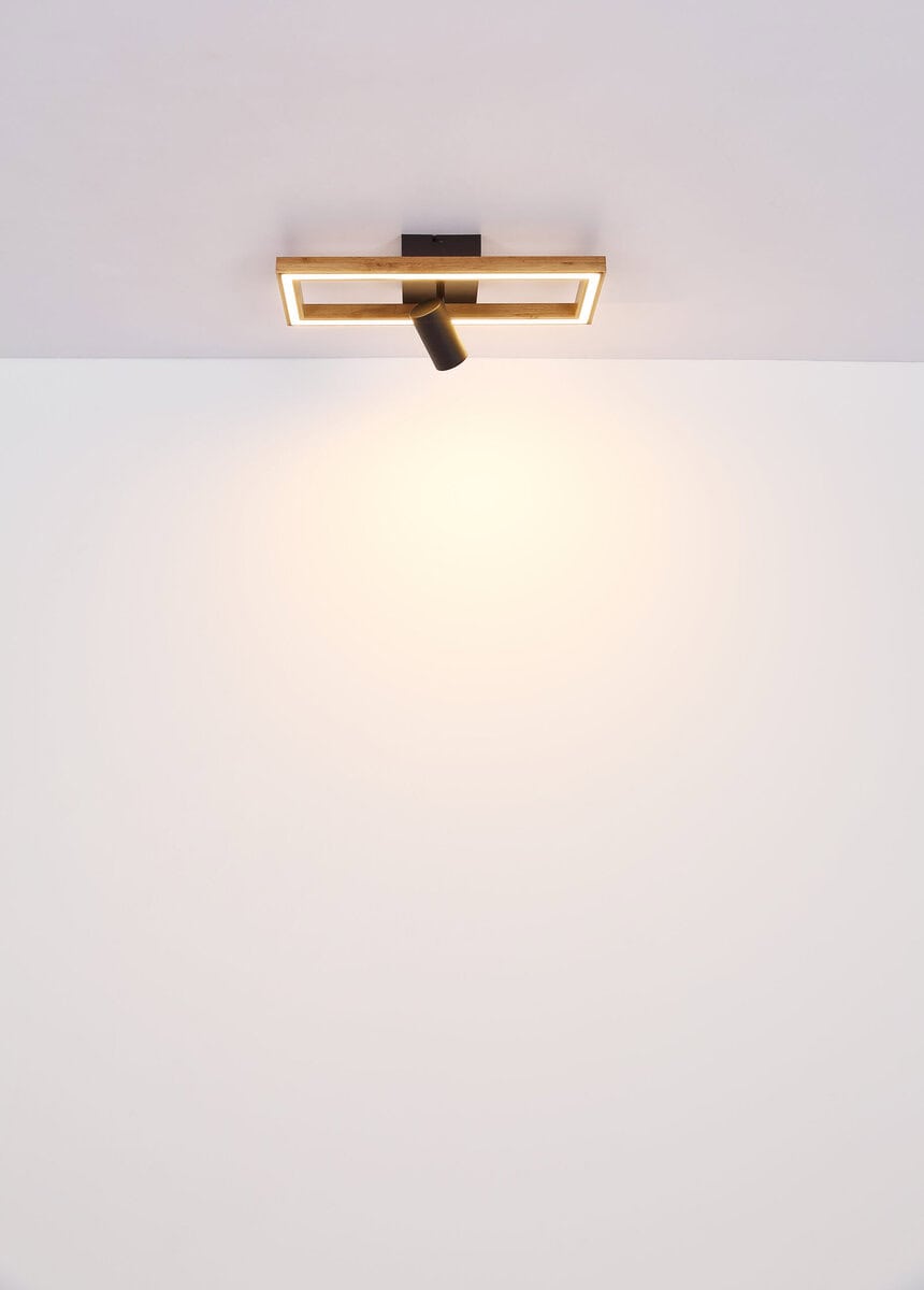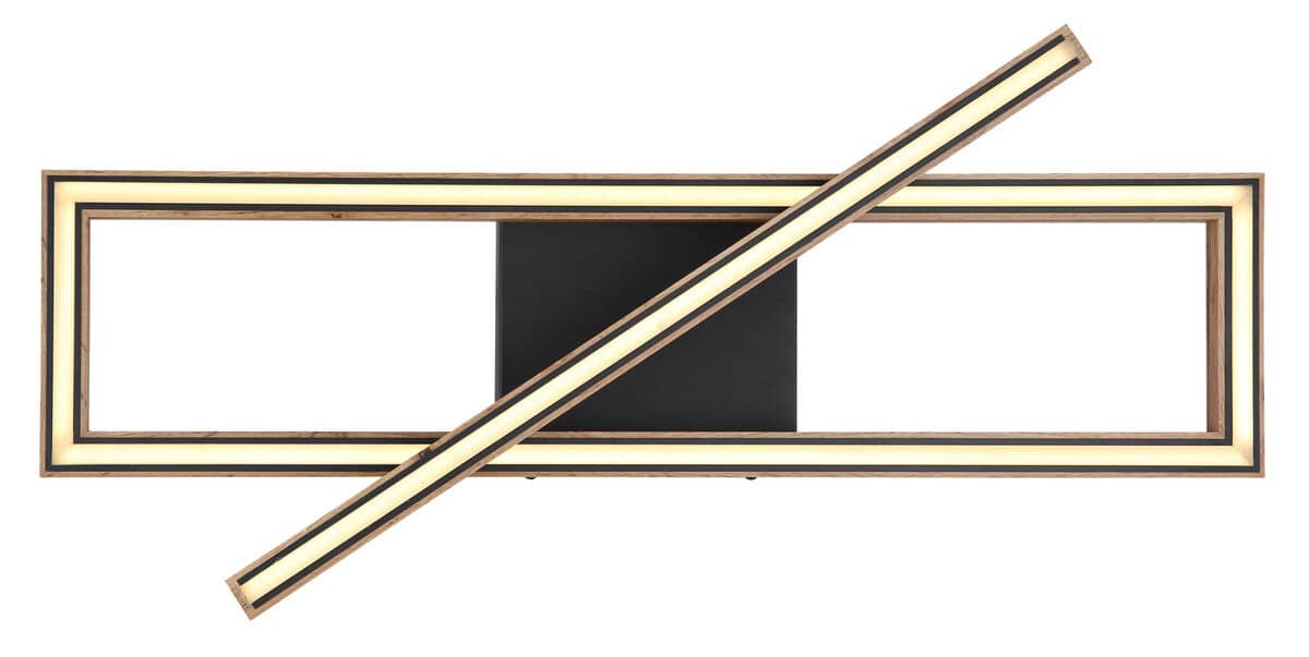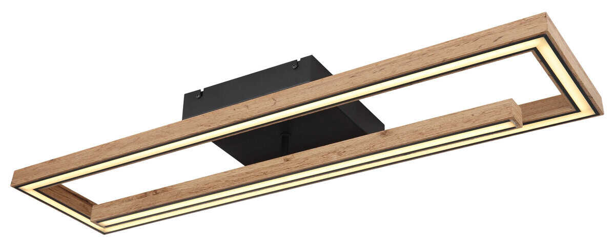 Plafonska lampa serije MANDERA ima crni mat metalni okvir i MDF okvir u izgledu tamnog drveta kao i opal plastičnu sjenilo. Zidni prekidač se može koristiti za prebacivanje između nekoliko faza, pri čemu je dostupna memorijska funkcija. Svetiljka se može rotirati i okretati i može se osvetliti u tri stepena: nivo 1 sa pravougaonim MDF ramom, nivo 2 sa LED šipkom i nivo 3 sa oba zajedno. Dimenzije su DxŠxV 800x200x90mm. Lampa sadrži LED snage 36W na 230V, izvor svjetlosti sa izvorom od 4000lm i svjetlosnu snagu od 2000lm pri temperaturi boje od 3000K.