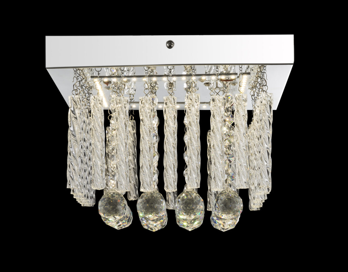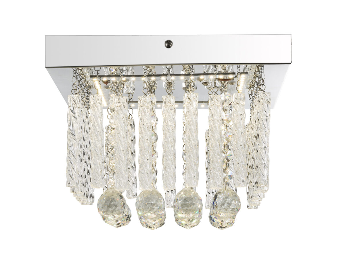 Ovu sjajnu kvadratnu plafonsku lampu u hromu, iz serije Mathilda, odlikuje elegantan dizajn, kao i visoka kvaliteta izrade. Prilikom izrade ove plafonske lampe odabrano je hromirano sjenilo za bazu, a viseće staklene šipke i kristali upotpunjuju cjelokupnu sliku. Dodatna prednost ove lampe, veličine 25 cm, je njena energetska efikasnost. Boja svjetla od 4000K percipira se kao ugodna boja između tople i neutralne bijele. Ovaj artikal se također može odlično kombinirati s drugim proizvodima iz iste serije.