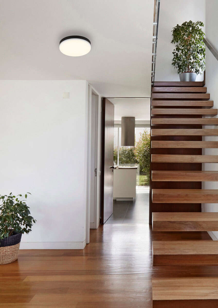 Stropna lampa MATTHEW je uzoran predstavnik moderne, minimalističke dizajnerske arhitekture. Njegov ravan i okrugli oblik savršeno se uklapa u arhitekturu svake prostorije. Tijelo od crno lakirane plastike i sjenilo od opal plastike stvaraju skladnu kompoziciju koja je elegantno grupirana oko kontrolne ploče. Sa snagom od 800 lumena i temperaturom boje od 4000K, stropna lampa MATTHEW idealna je za osvjetljavanje dnevnih soba, ureda ili radnih prostora. Njegova kompaktna veličina od ø 220 mm čini ga popularnim izborom čak i u malim prostorima.