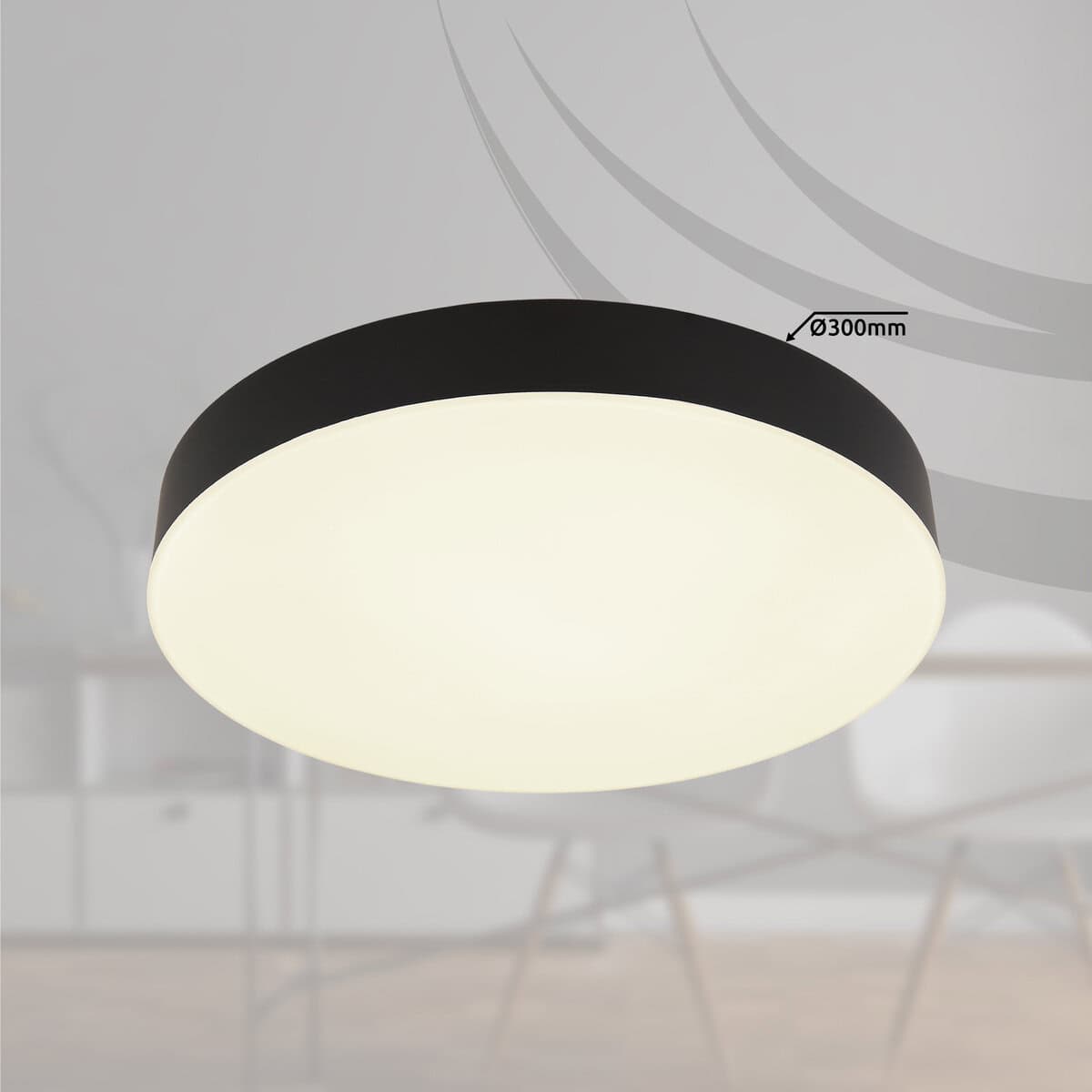Plafonska lampa CEILING LAMP PLASTIC BLACK MATT kombinuje moderan dizajn i praktičnu funkcionalnost. Svojim ravnim i okruglim izgledom neprimjetno se uklapa u svaku prostoriju. Tijelo izrađeno od mat crno-bijele plastike, kao i opal bijeli sjenilo osiguravaju ugodnu distribuciju svjetlosti. Na stražnjoj strani lampe nalazi se izmjenjivač slavine koji vam omogućava da birate između 3 različita nivoa Kelvina. Boje se mogu popraviti, tako da možete postaviti idealno osvjetljenje za svaku situaciju. Sa prečnikom od 300 mm, snagom od 24 W i svetlosnim tokom od 2150 lumena, ova plafonska lampa obezbeđuje jako i efikasno osvetljenje. Podesivi CCT od 3000K do 6500K vam omogućava da podesite svjetlo prema vašim ličnim preferencijama. Unesite moderno i raznovrsno svjetlo u svoj dom sa PLAFONICOM PLASTIC BLACK MATT.