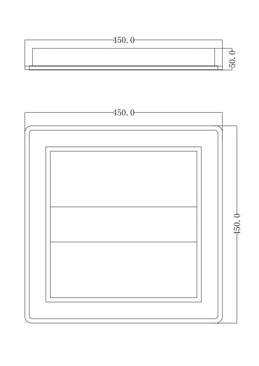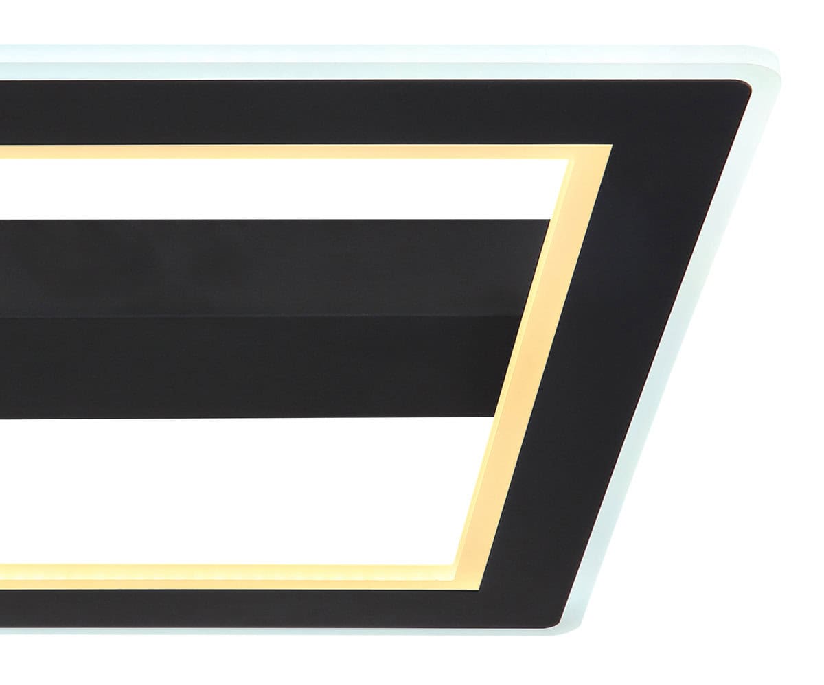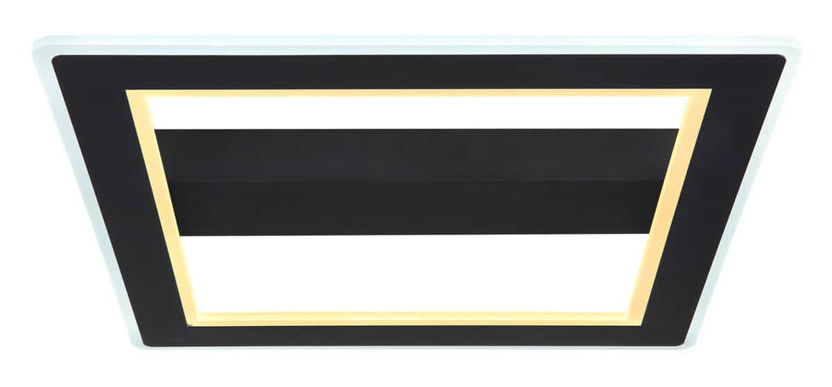 Ova elegantna plafonska lampa impresionira svojim modernim dizajnom. Ova lampa 45x45cm sastoji se od kvadratnog crnog mat okvira sa integrisanim LED pločama, koji je pričvršćen na crno pravougaono postolje na plafonu.