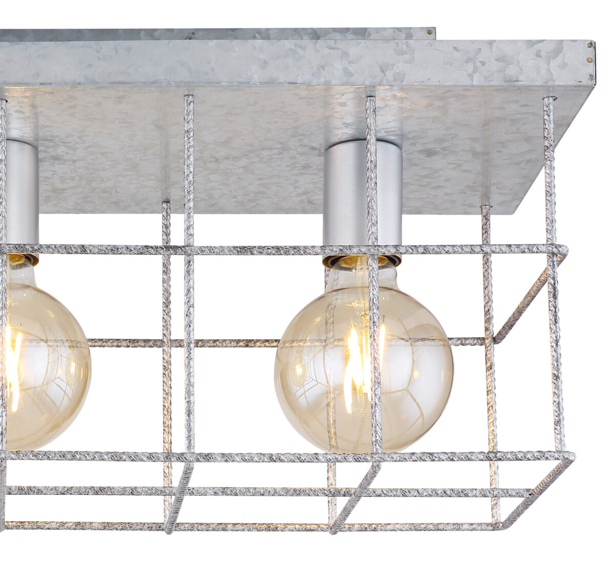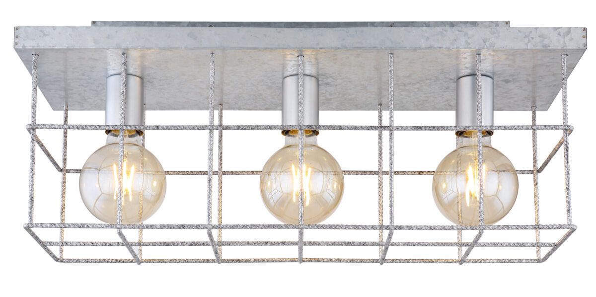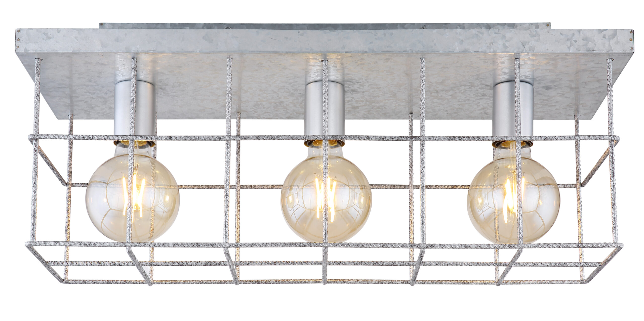 Ova plafonska lampa iz Merril serije (60×20 cm) uvjerava svojim elegantnim dizajnom od metala srebrne boje. Plafonska lampa od 25,8 cm sastoji se od pravougaone metalne ploče na koju je pričvršćena srebrna metalna rešetka. Ovo uokviruje tri utičnice E27, koje se mogu opremiti odgovarajućim lampama po vašem izboru. Ovo vam daje priliku da individualno odredite boju svjetla i svjetlinu. Uz više artikala iz iste serije, možete upotpuniti cjelokupnu sliku vašeg interijera.
