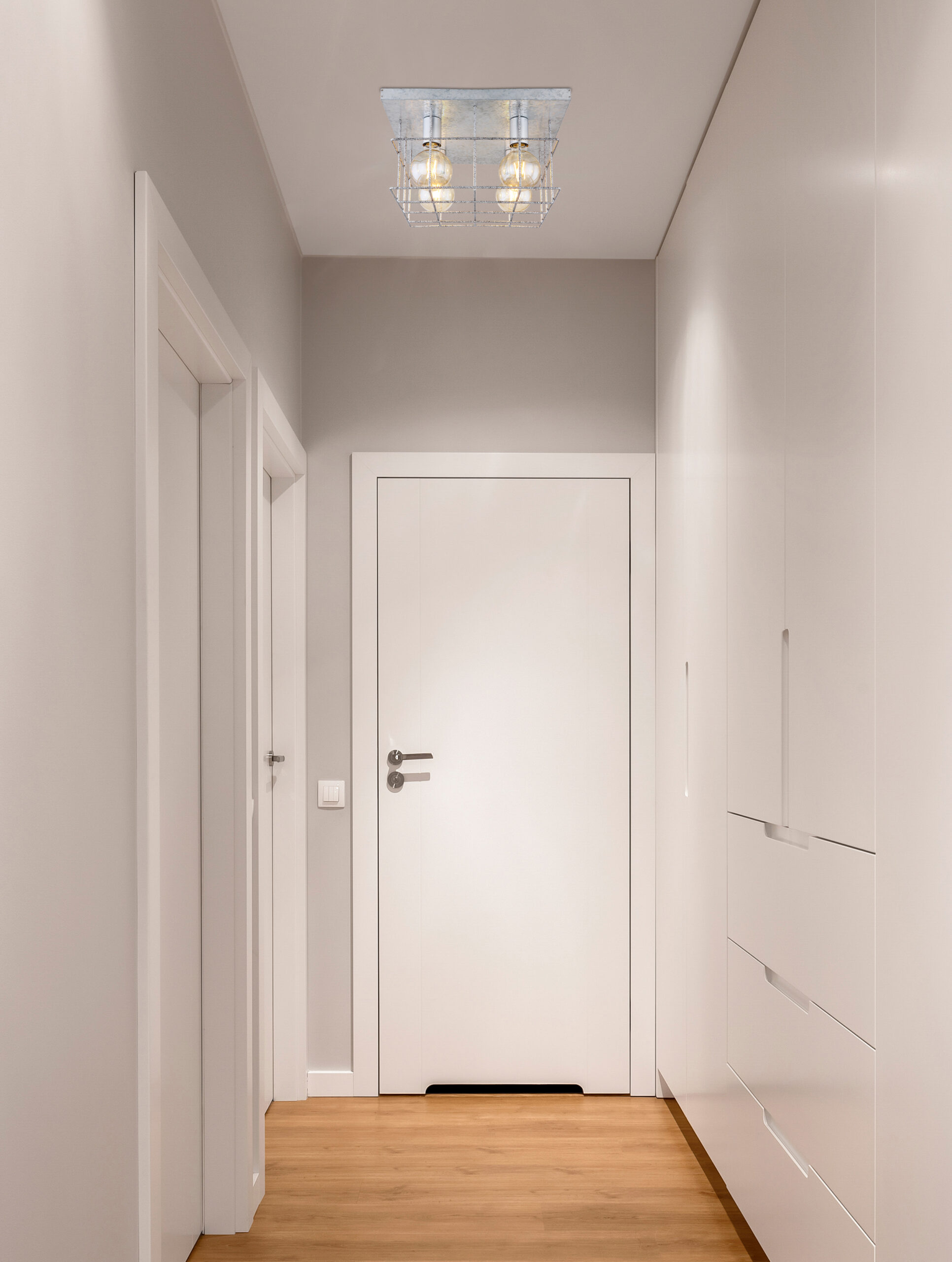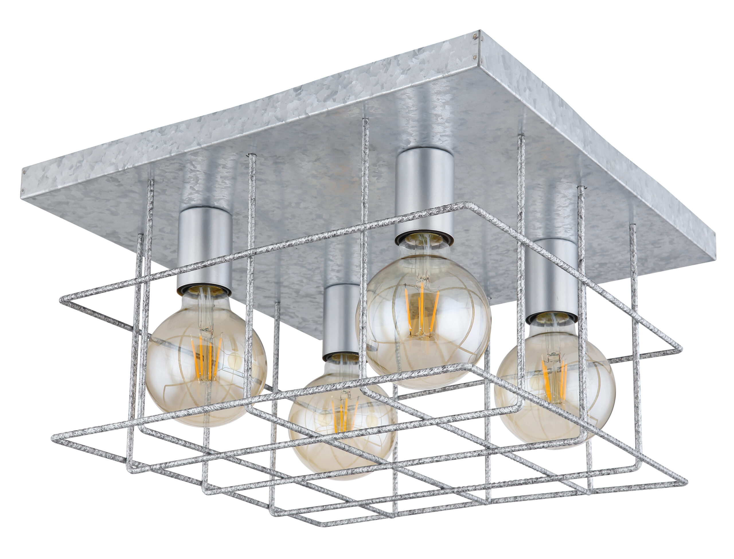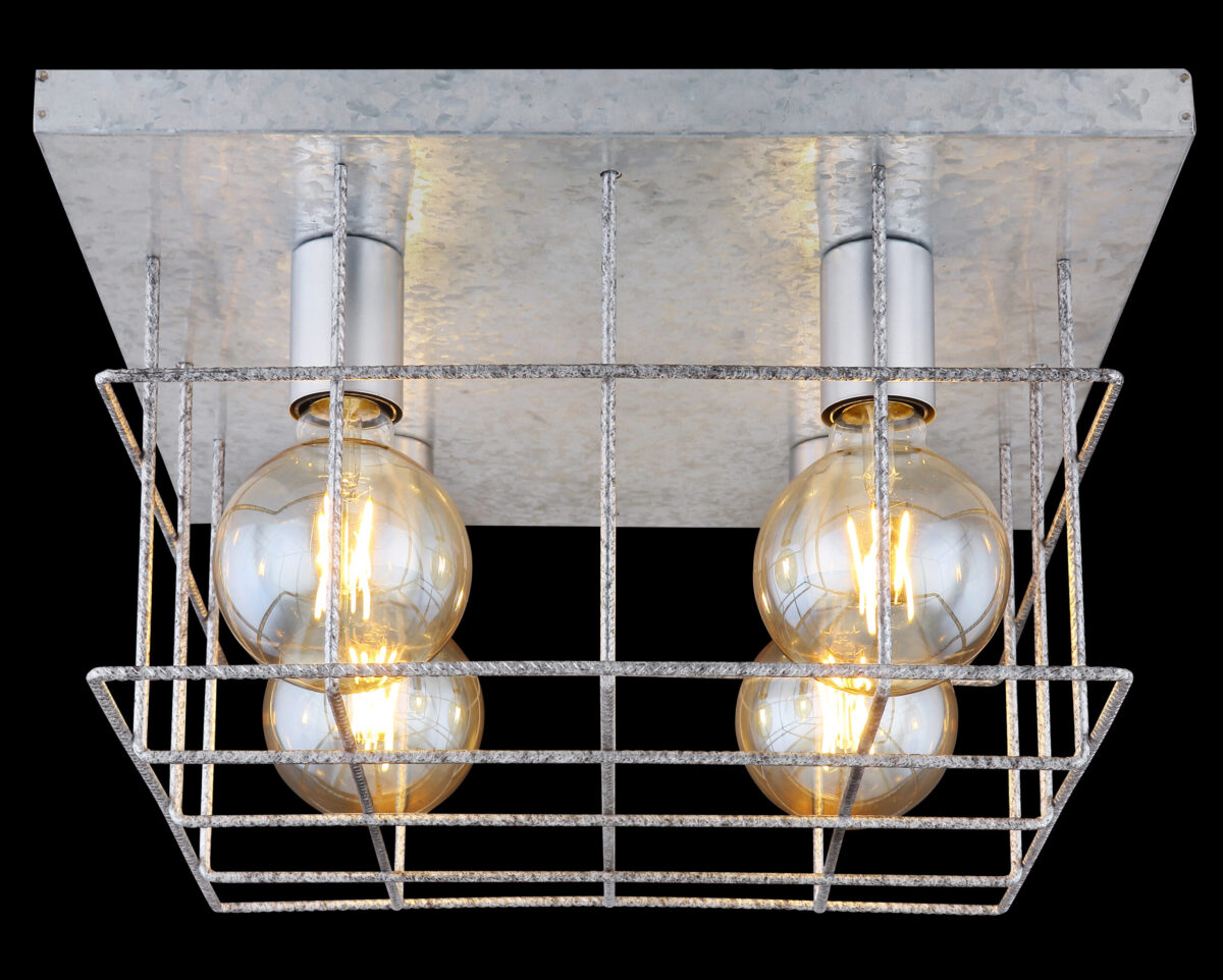 Ova kvadratna plafonska lampa iz serije Merril (40×40 cm) uvjerava svojim elegantnim dizajnom od metala srebrne boje. Plafonska lampa od 26 cm sastoji se od metalne ploče na koju je pričvršćena srebrna metalna rešetka. Ovo pokriva četiri E27 utičnice, koje se mogu opremiti odgovarajućim lampama po vašem izboru, dajući vam mogućnost da individualno odredite boju svjetla i svjetlinu. Uz više artikala iz iste serije, možete upotpuniti cjelokupnu sliku vašeg interijera.