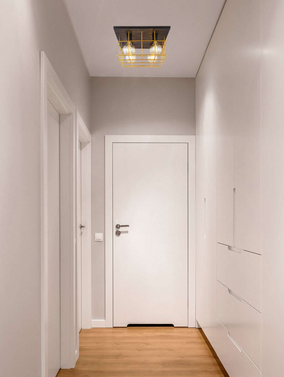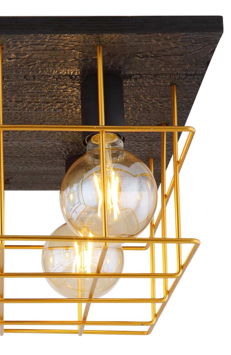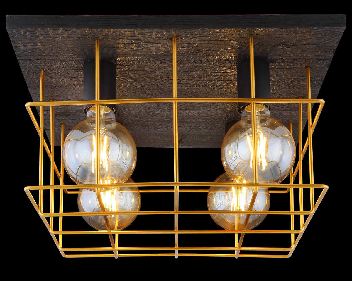 Ova kvadratna plafonska lampa iz serije Merril (40×40 cm) uvjerava svojim elegantnim dizajnom od drveta i metala zlatne boje. Plafonska lampa od 26 cm sastoji se od crne drvene ploče na koju je pričvršćena zlatna metalna rešetka. Ovo pokriva četiri E27 utičnice, koje se mogu opremiti odgovarajućim lampama po vašem izboru, dajući vam mogućnost da individualno odredite boju svjetla i svjetlinu. Uz više artikala iz iste serije, možete upotpuniti cjelokupnu sliku vašeg interijera.