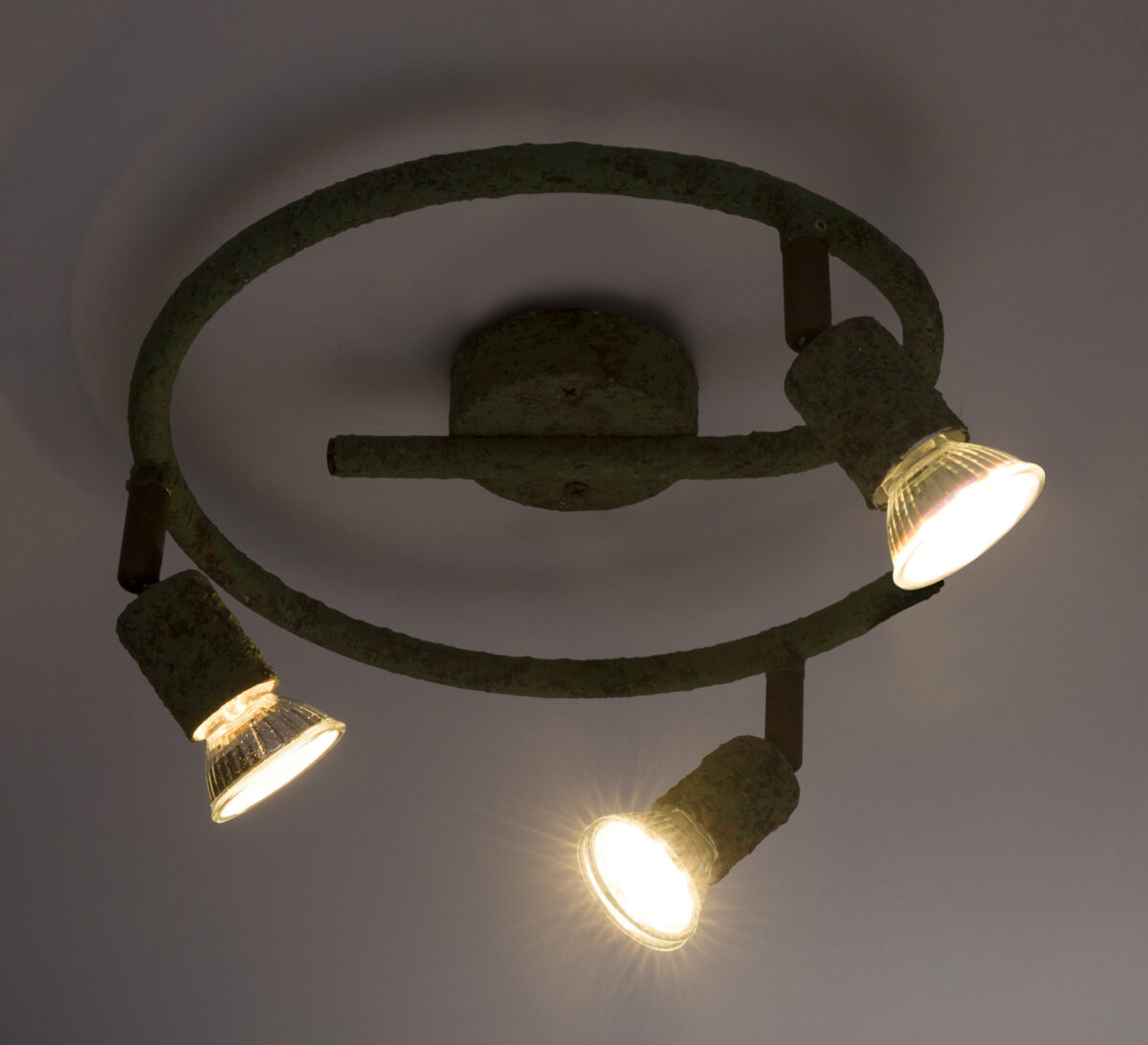 Plafonski reflektor serije Olana jasno se ističe svojim individualnim dizajnom. Napravljen od zelenog metala boje hrđe, ovaj reflektor daje vašim prostorijama poseban štih. Tri pokretne tačke, pričvršćene za čvrstu ruku u obliku slova e, svaka imaju 3W GU10 LED sijalicu, koje zajedno daju 750 lumena jakog svetla sa prijatnom toplom belom svetlošću od 3000K. Sa ostalim reflektorima iste serije modela možete upotpuniti sliku u svom prostoru.